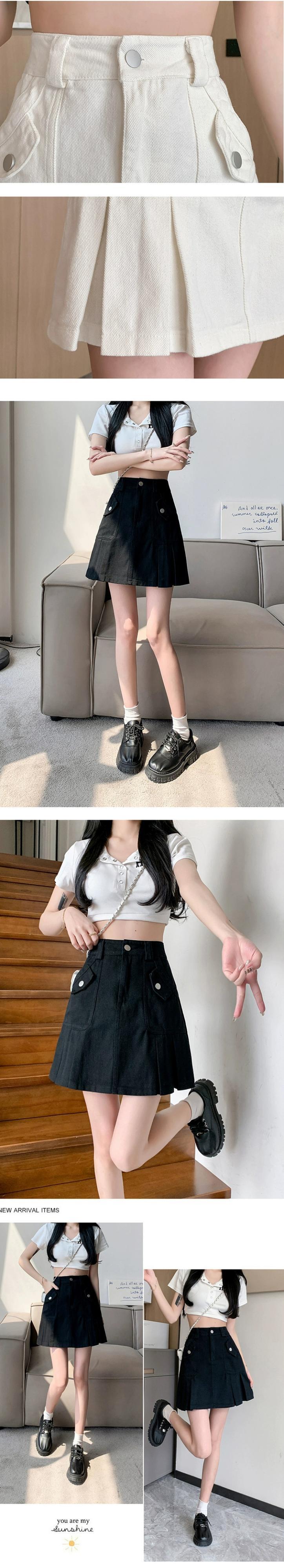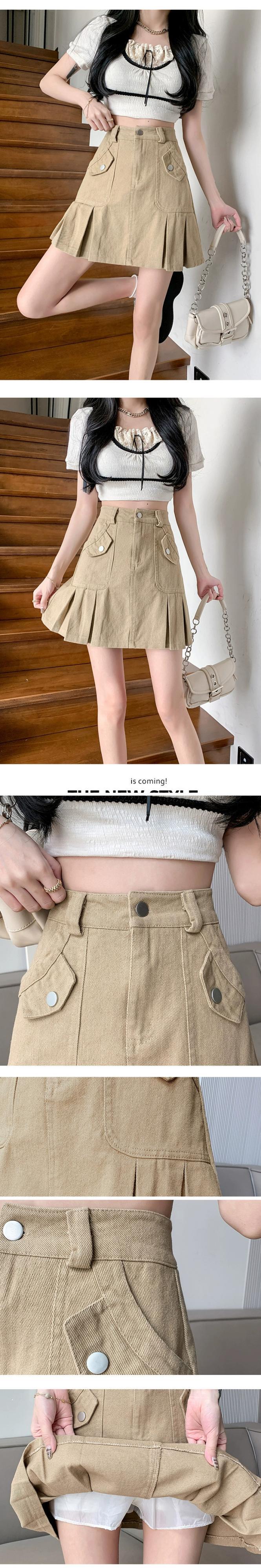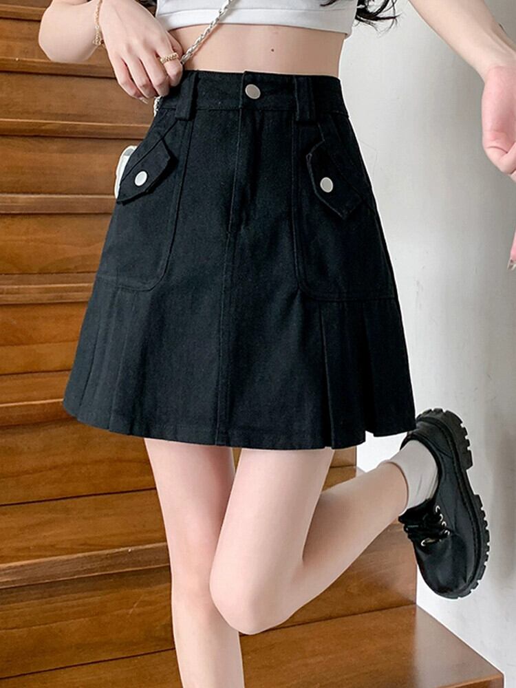 ホワイトデニムスカートレディース夏ハイウエストバッグヒップスカートデザインは薄くて万能なAラインプリーツショートスカートに見えます ハイウェスト サマー 夏物 746003727079728 | framboise21