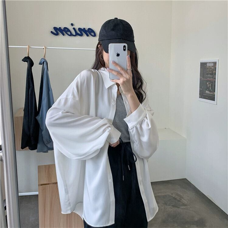 薄いシフォンシャツジャケット女性の夏のデザインセンス緩い怠惰なアウターウェアドレープアイスシルク長袖日焼け止めシャツ ロング サマー 夏物 7460099283835799 | framboise21