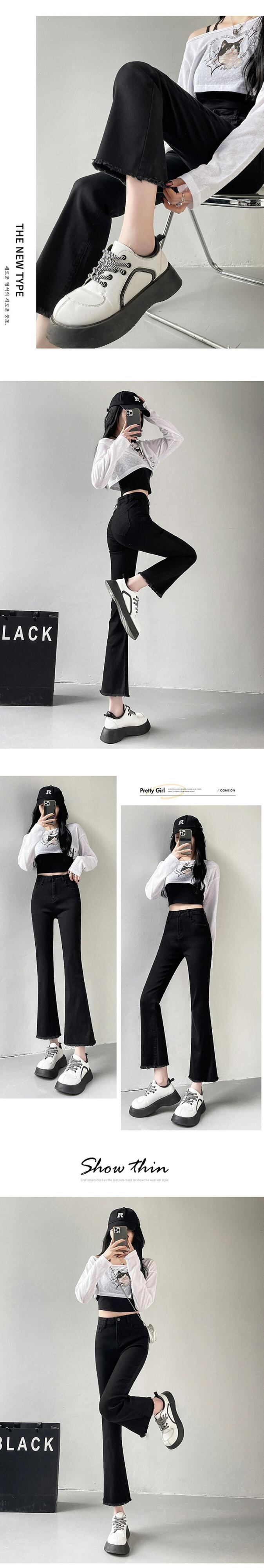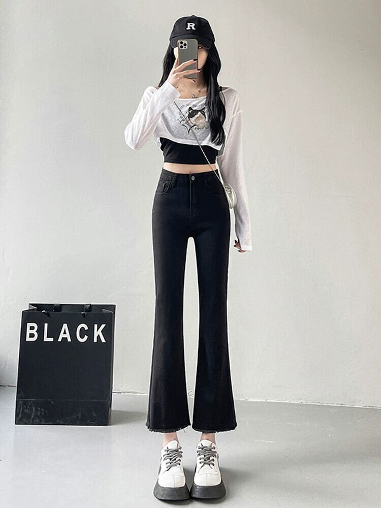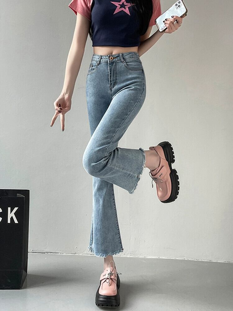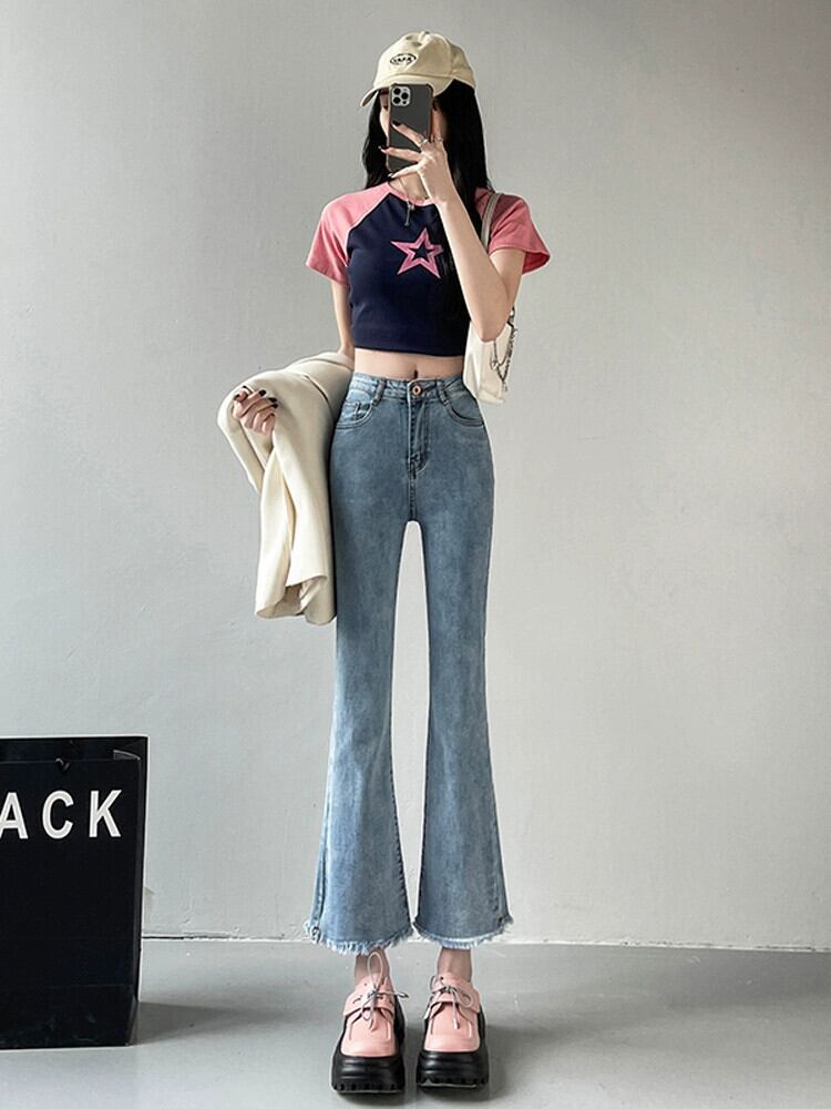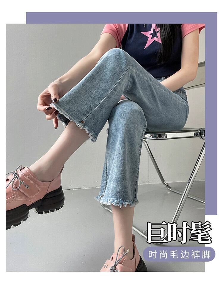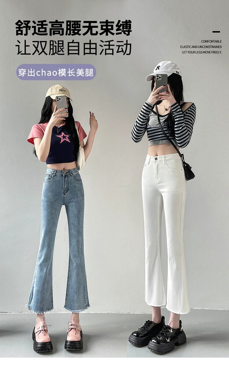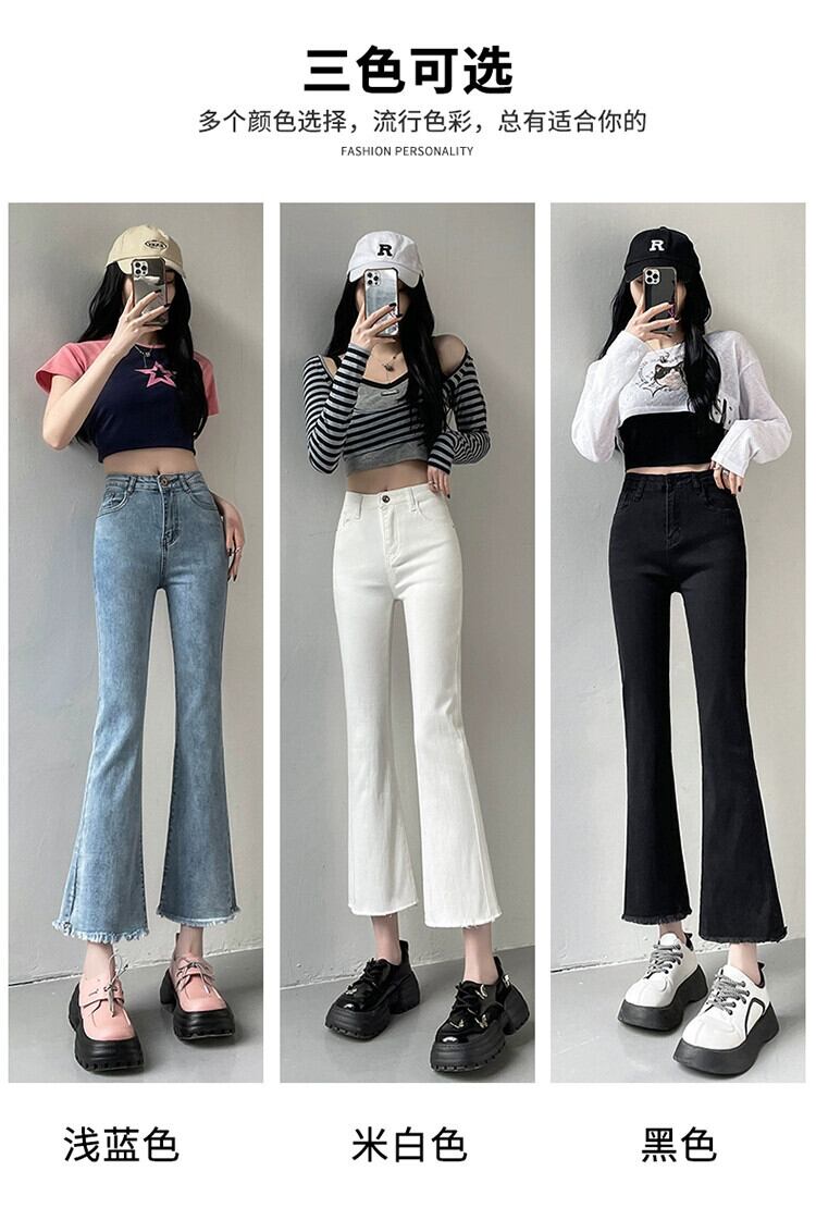 ローエッジ フレア ジーンズ レディース 夏 小さい 150 センチメートル高 9 ポイント パンツ スリム弾性馬蹄パンツ レッド エラスティック 伸縮 サマー 夏物 7460058305621731 | framboise21