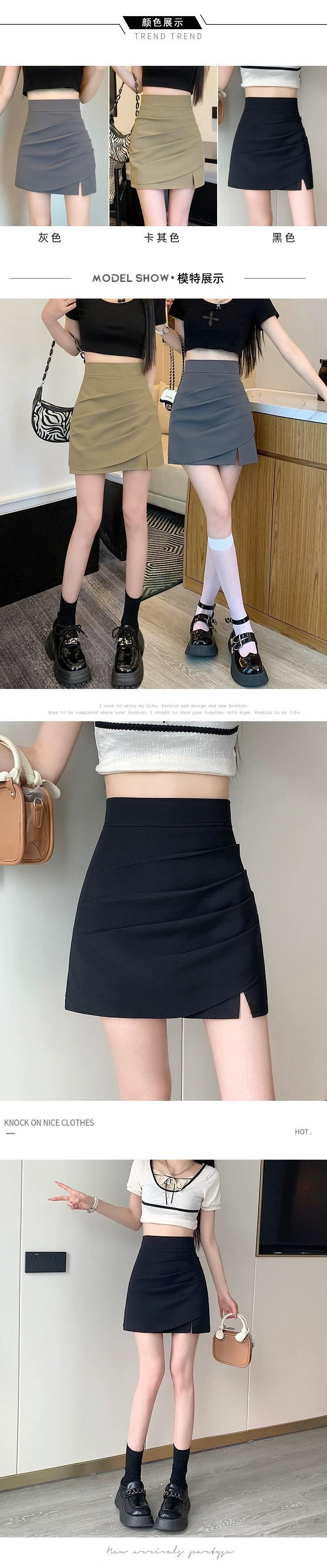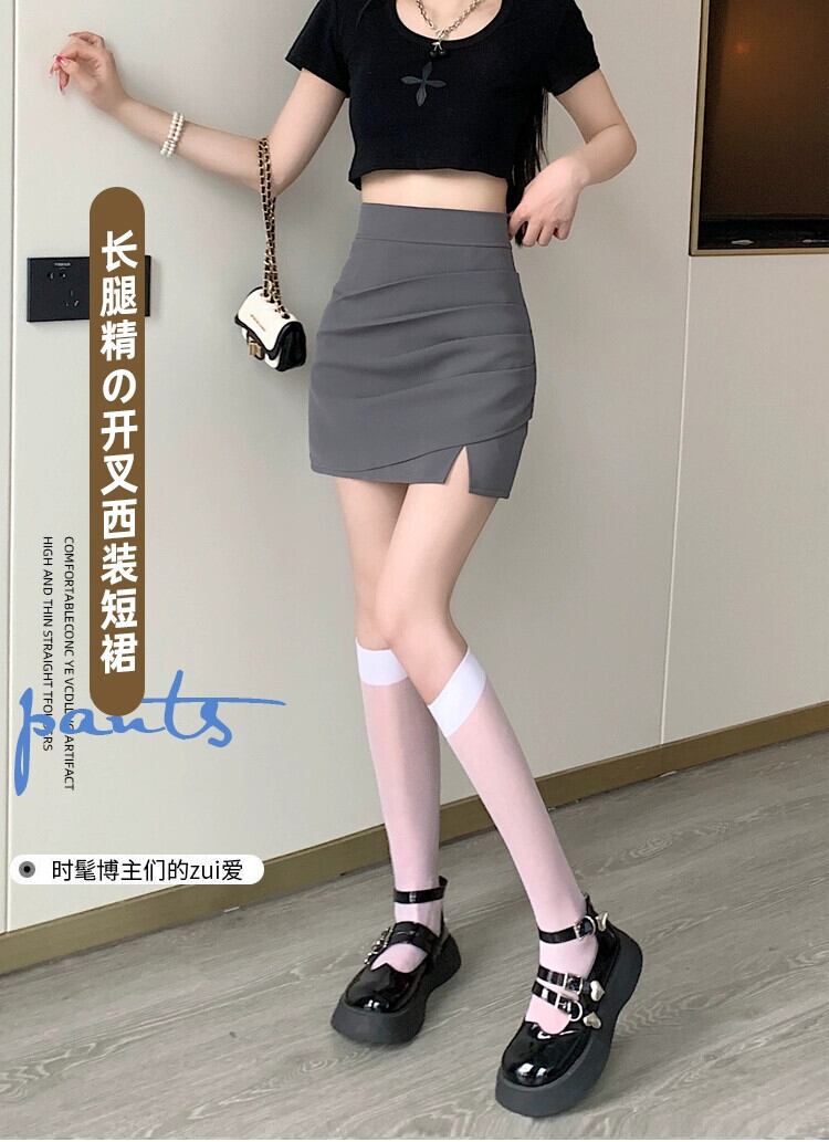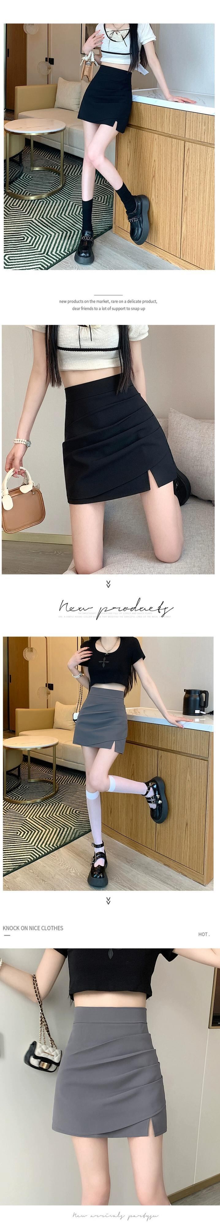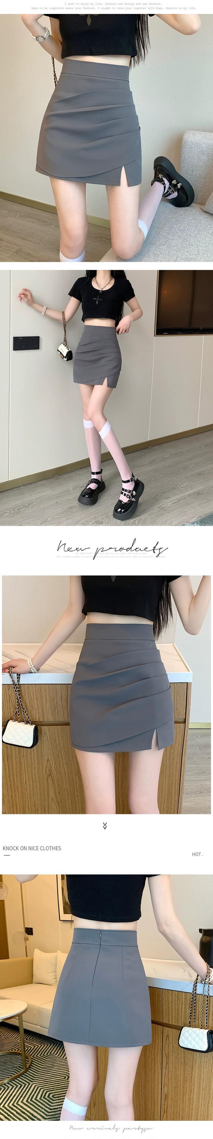 不規則なスリットパッケージヒップスカート女性の夏のデザイン感小さくて薄いオールマッチハイウエストAラインショートスカートグレー ハイウェスト サマー 夏物 7460024261899081 | framboise21