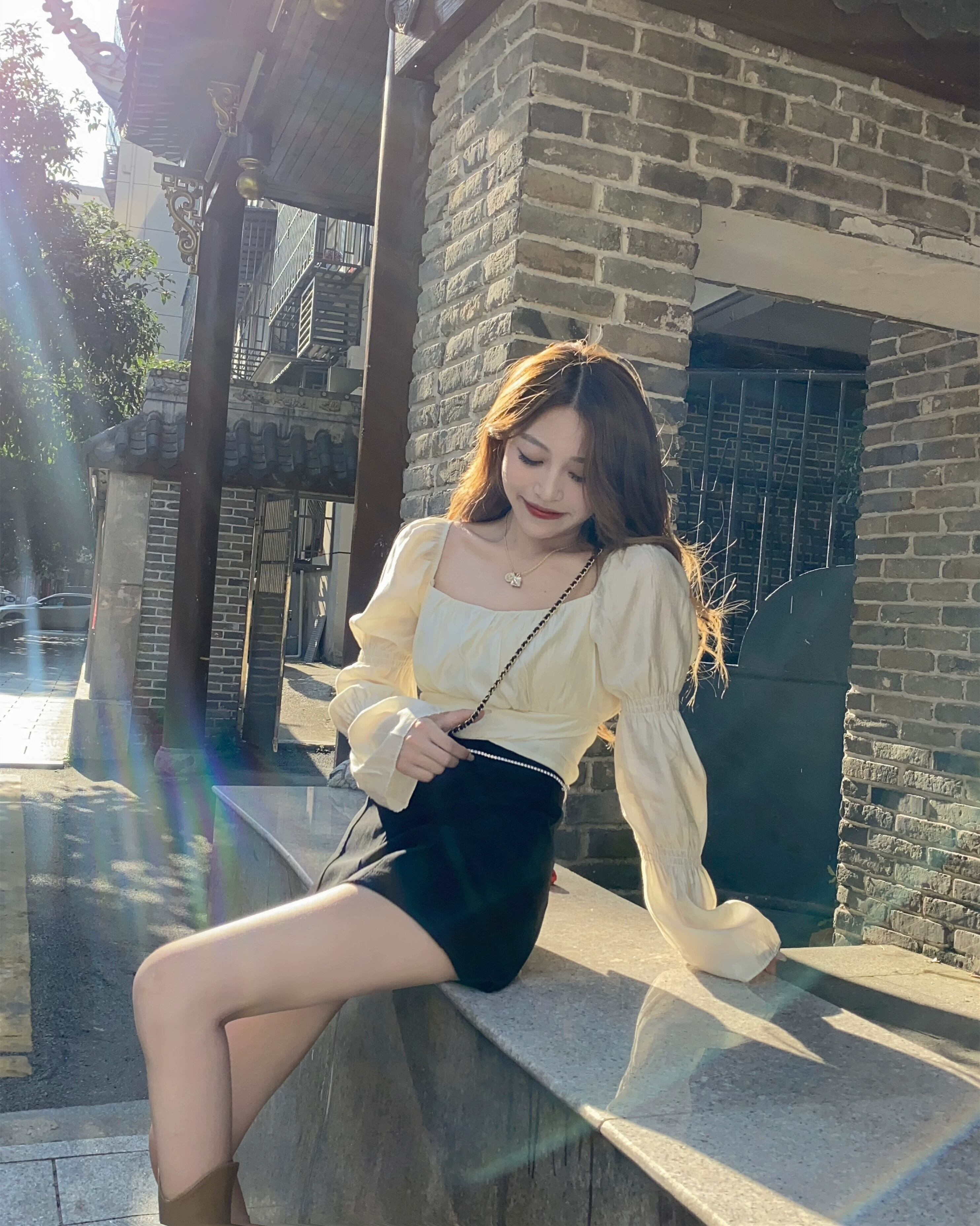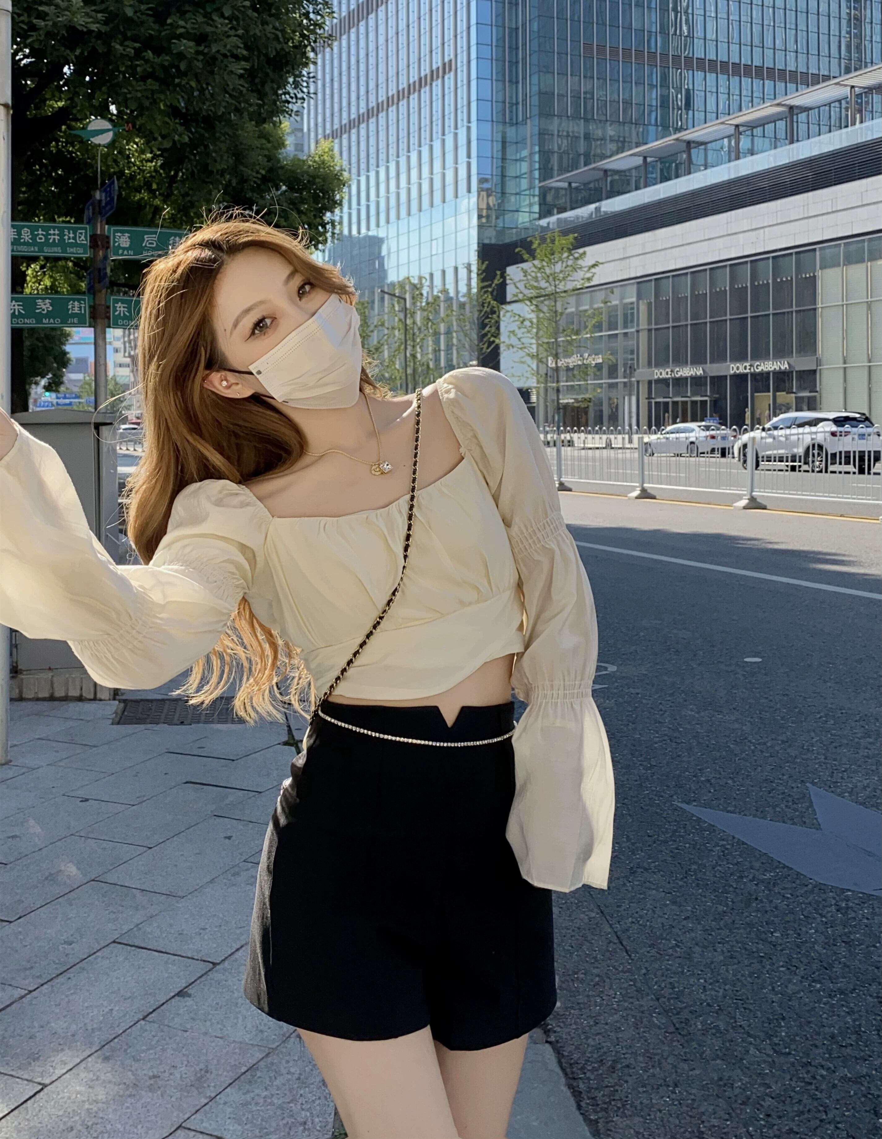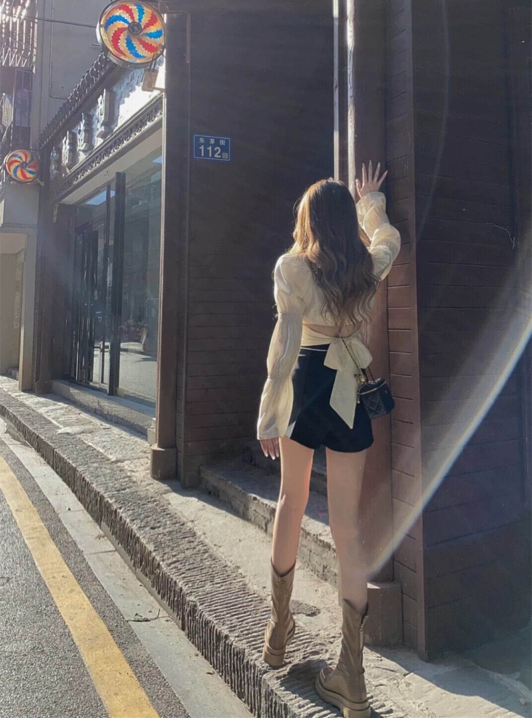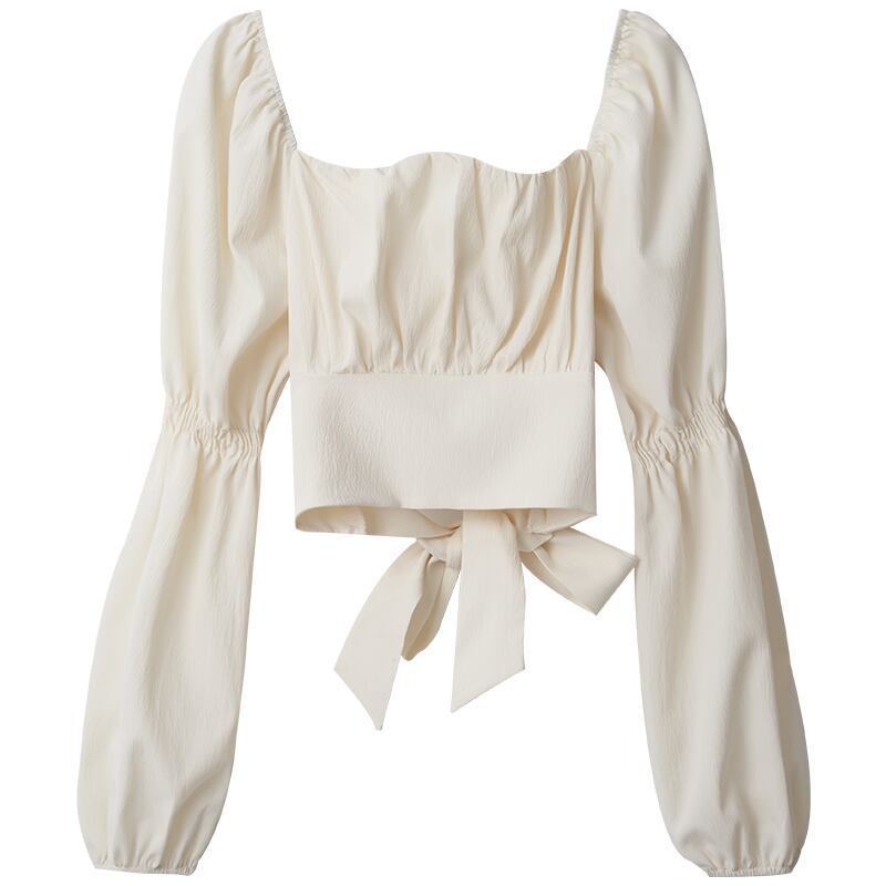 レースアップウエストちょう結びシャツレディース春秋シックなデザイン感ニッチハイウエストショートベルスリーブトップス ハイウェスト リボン スプリング 春物 オータム 秋物 7460082644829130 | framboise21