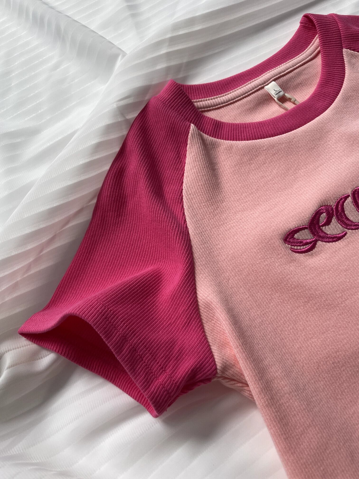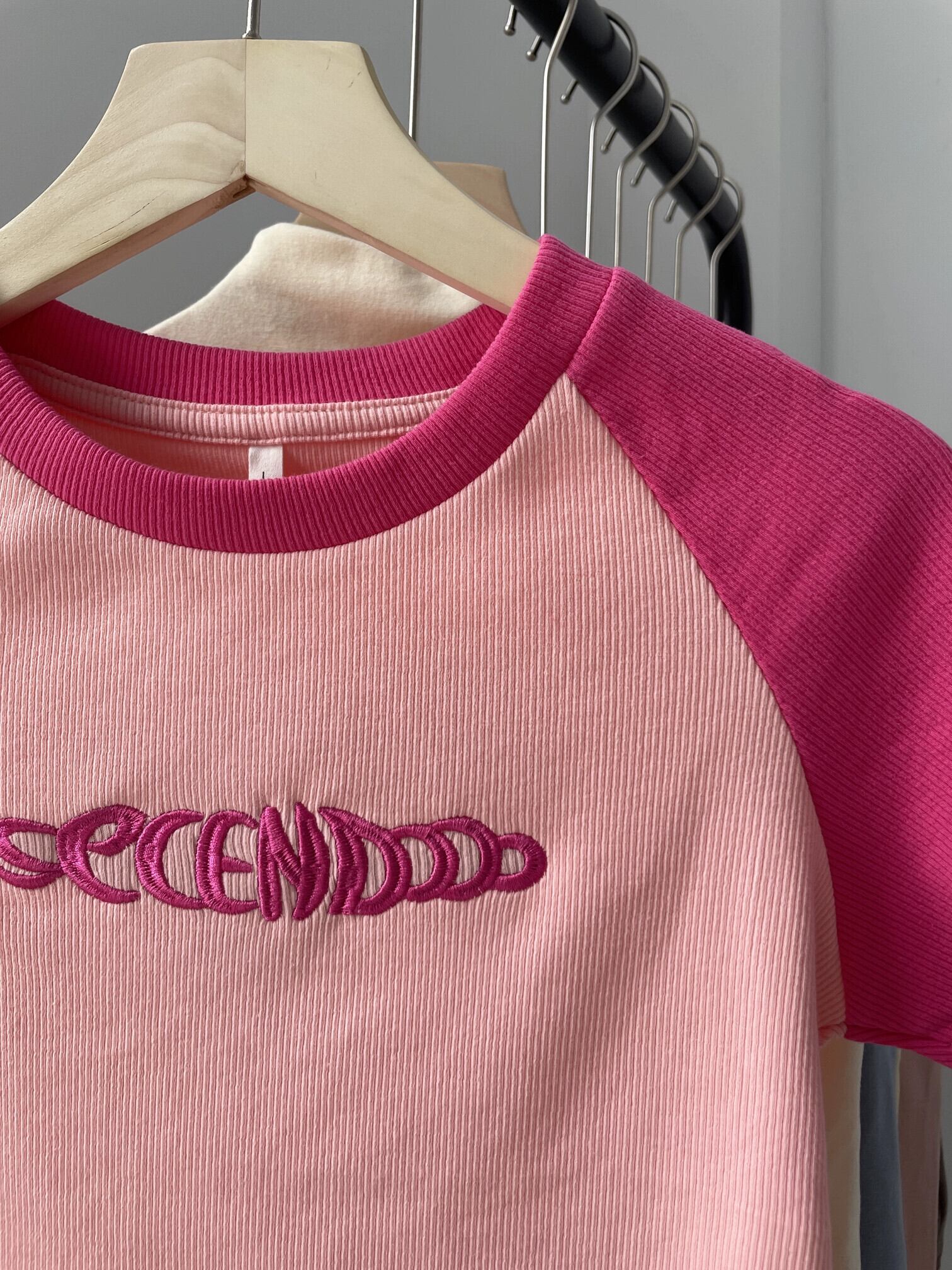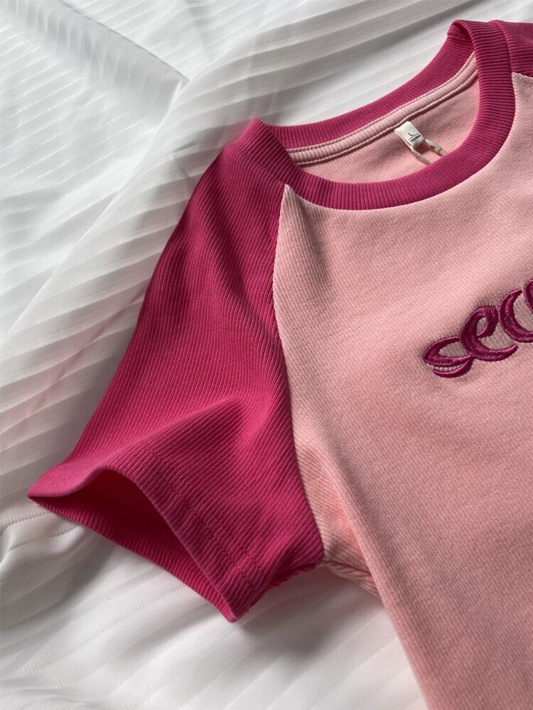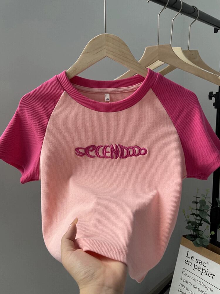 フロントショルダー ラグランショルダー 半袖 Tシャツ レディース 夏 デザイン 修身感 スリム ハイウエスト ショート ローズレッド ラウンドネック トップス イン ハイウェスト サマー 夏物 Oネック 7460046999668873 | framboise21