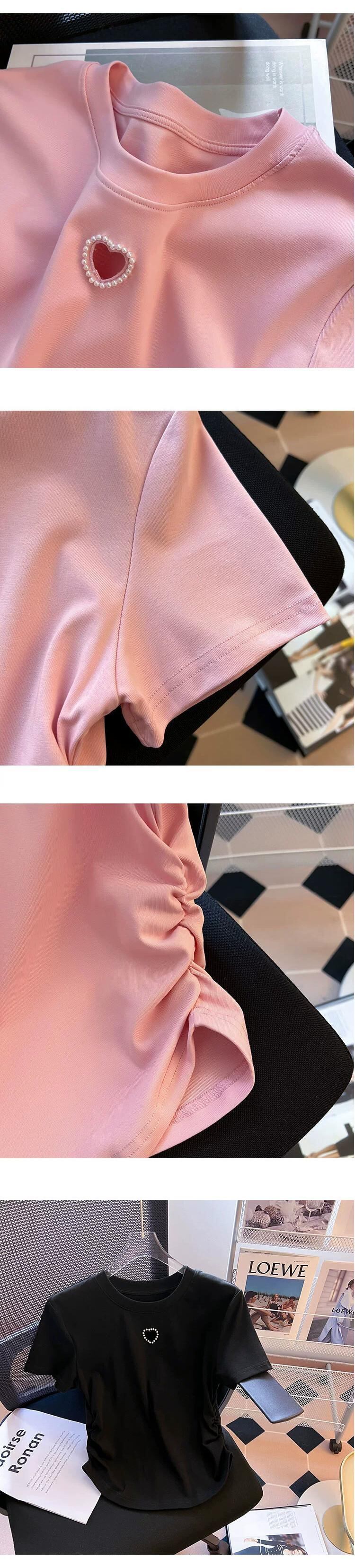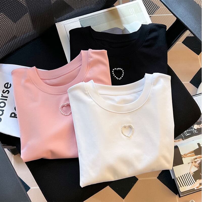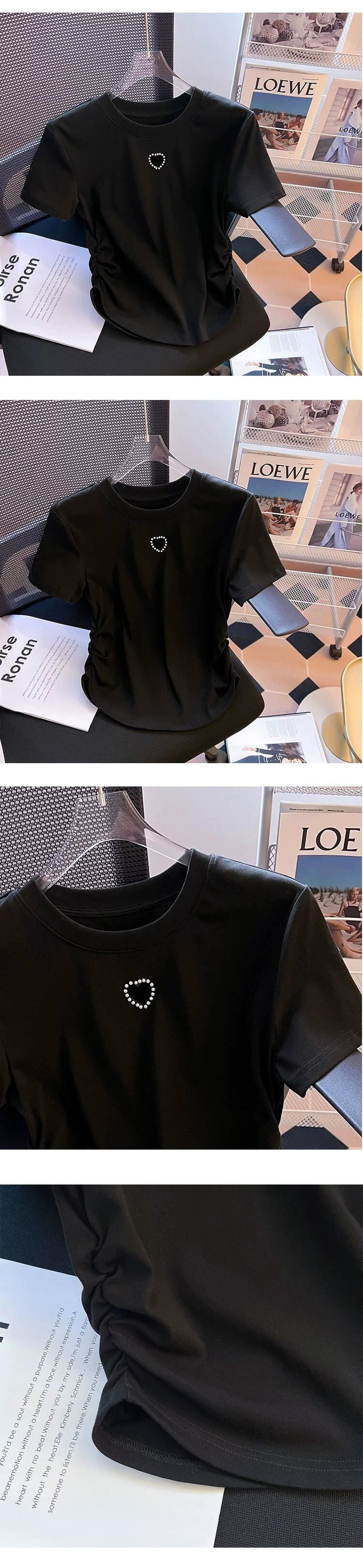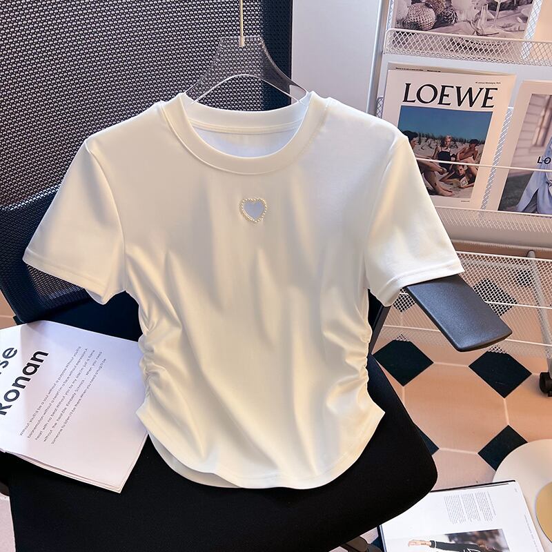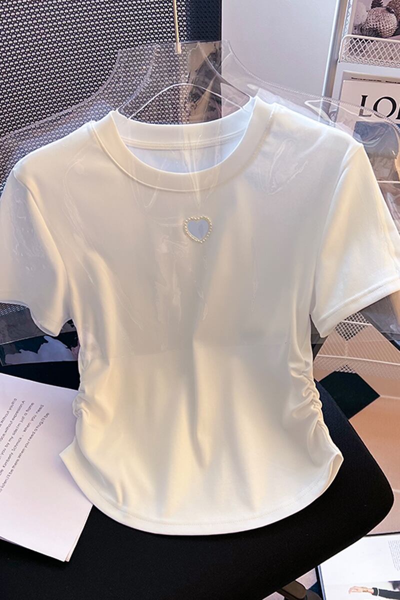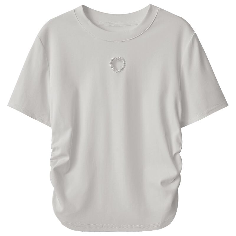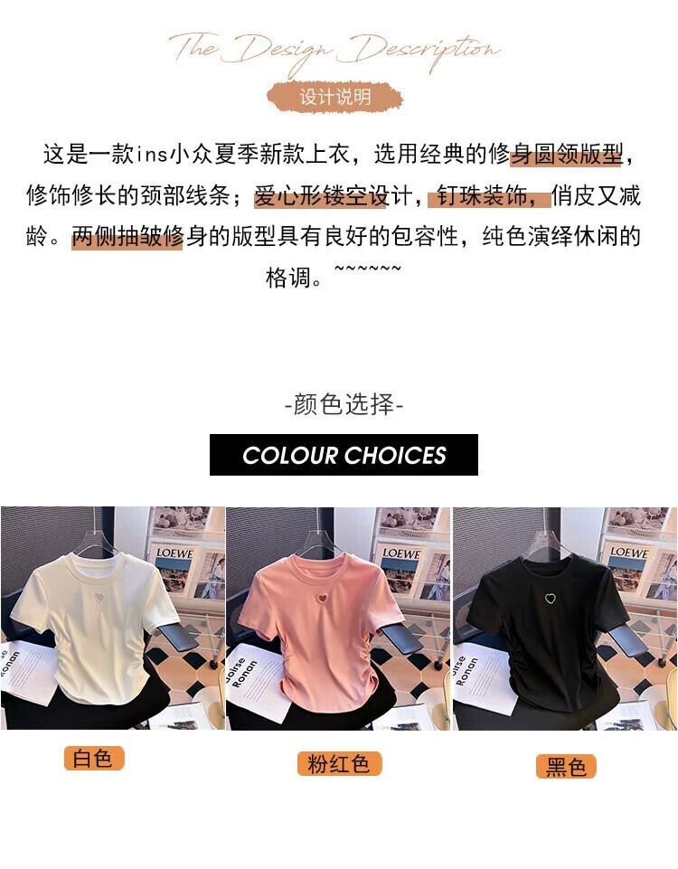 イレギュラーシャーリングショート半袖Tシャツレディース夏デザイン自己修養感オールマッチ中空愛ラウンドネックトップスホワイト サマー 夏物 Oネック 7460030334400842 | framboise21