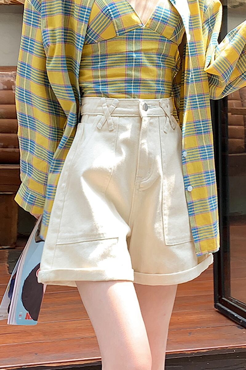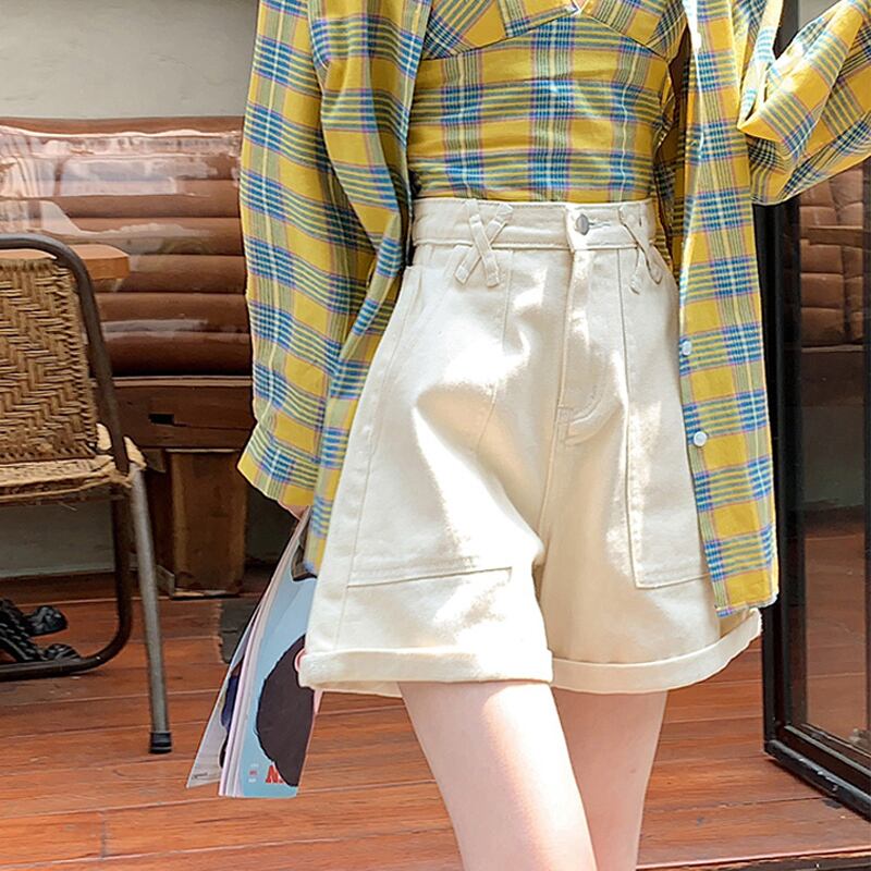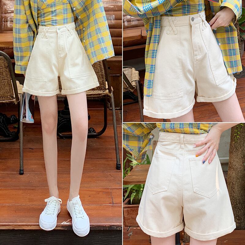 ホワイトカーリーデニムショートパンツレディース夏新作ネットレッドルーズアウターオールマッチハイウエストワイドレッグパンツパンツトレンディ ハイウェスト サマー 夏物 ショーツ ブルマー 7460049102545428 | framboise21