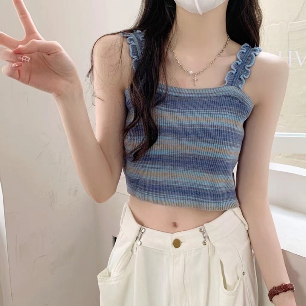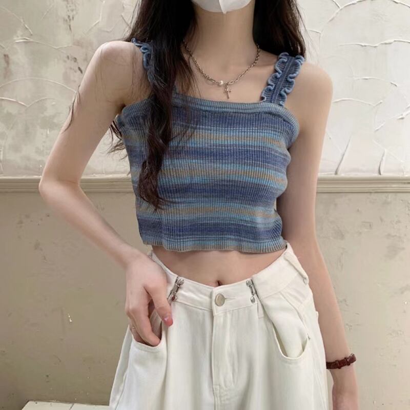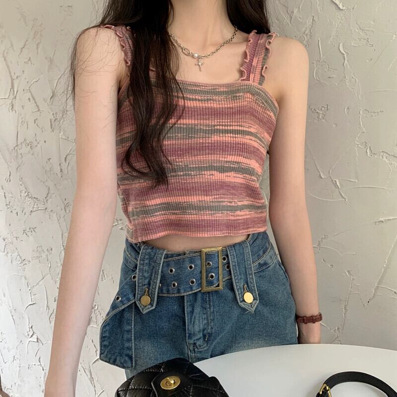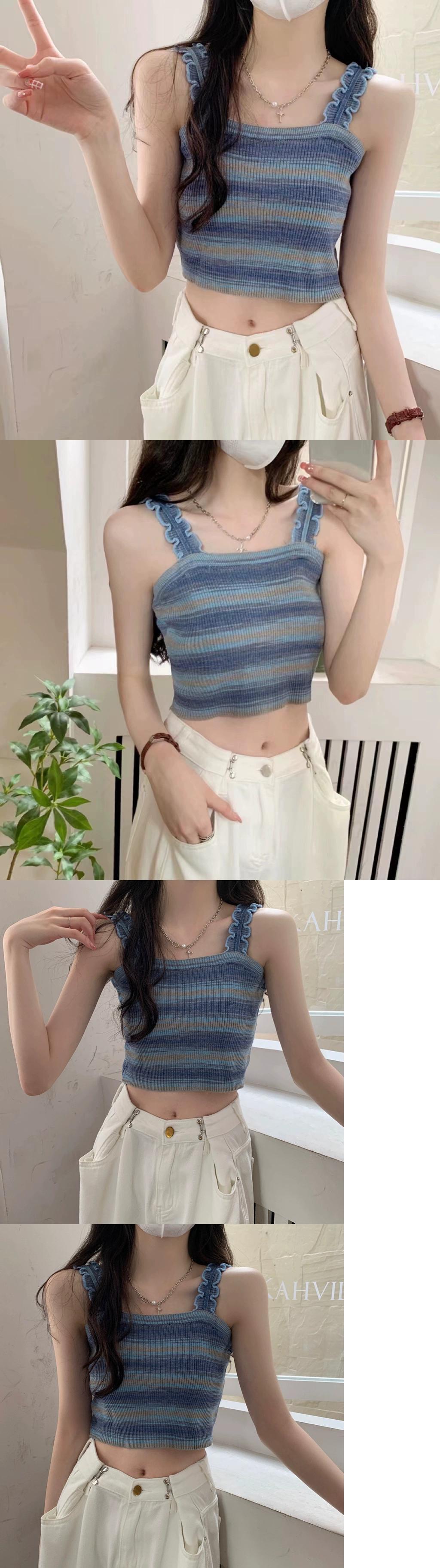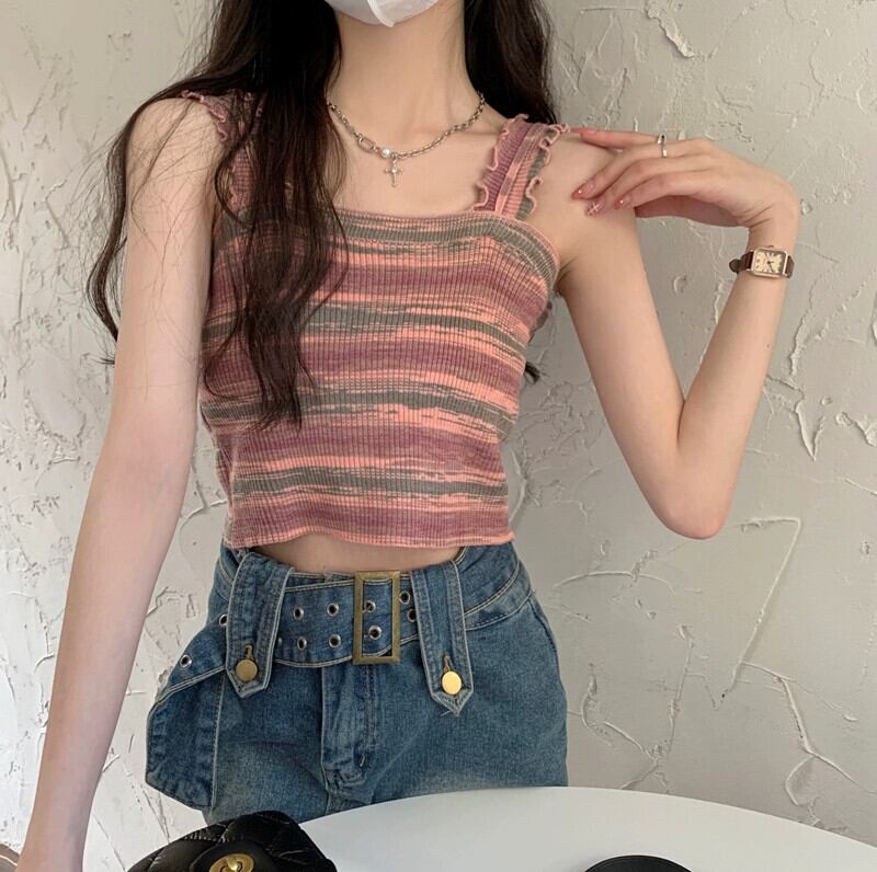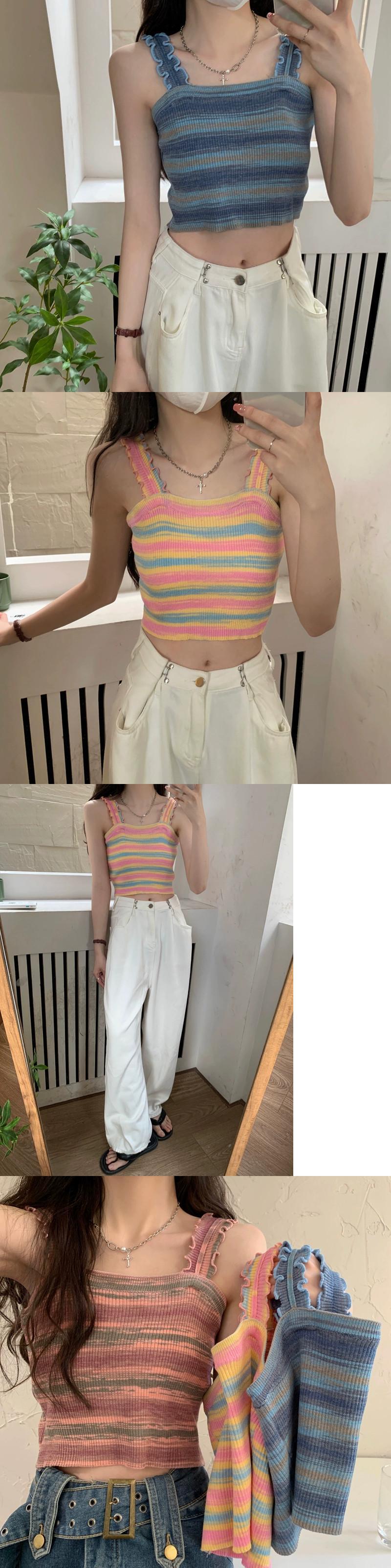 BM レインボースリング レディース 夏 フレンチ ニット ストライプ ベスト シーサイド 美しい背中と外側に着用できるスパイシーなショート ノースリーブ トップ 半袖 ハーフスリーブ サマー 夏物 7460042812343534 | framboise21