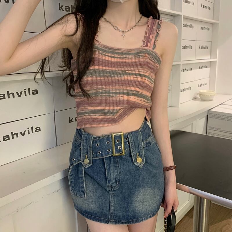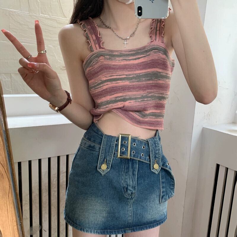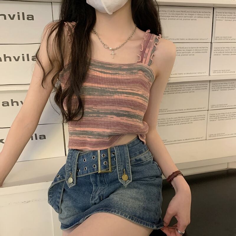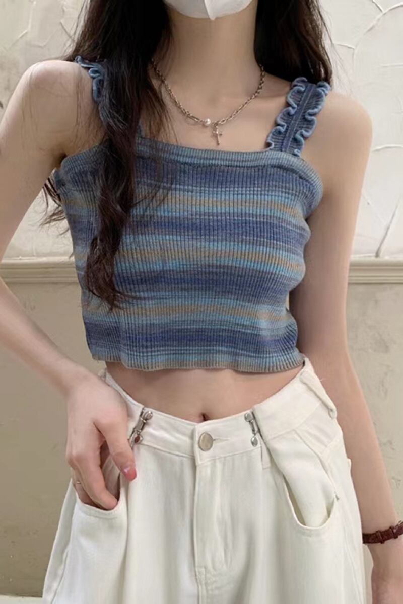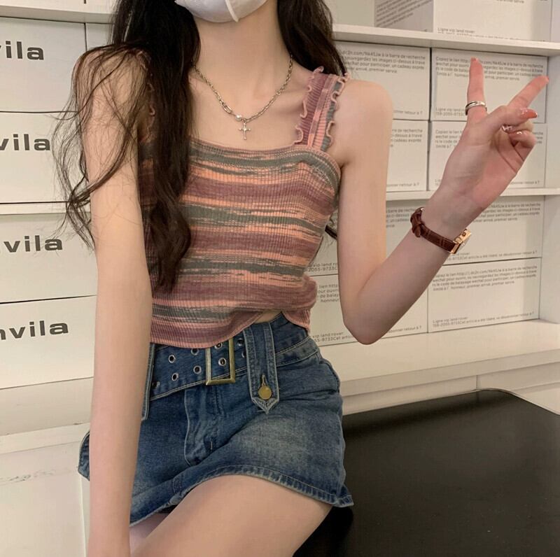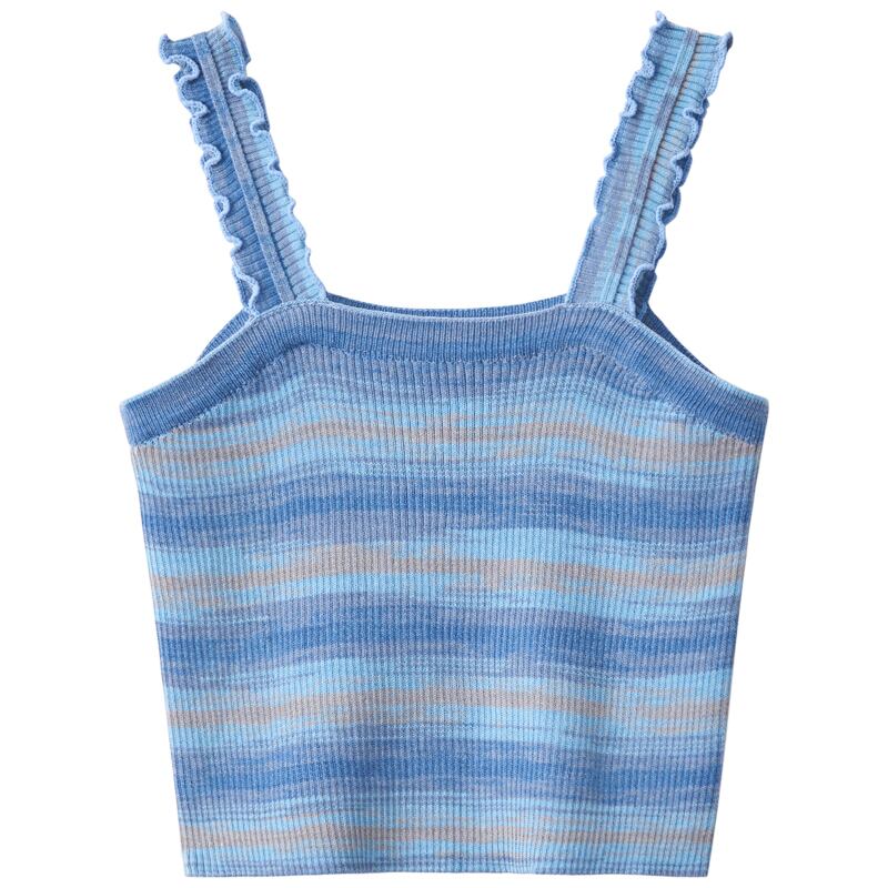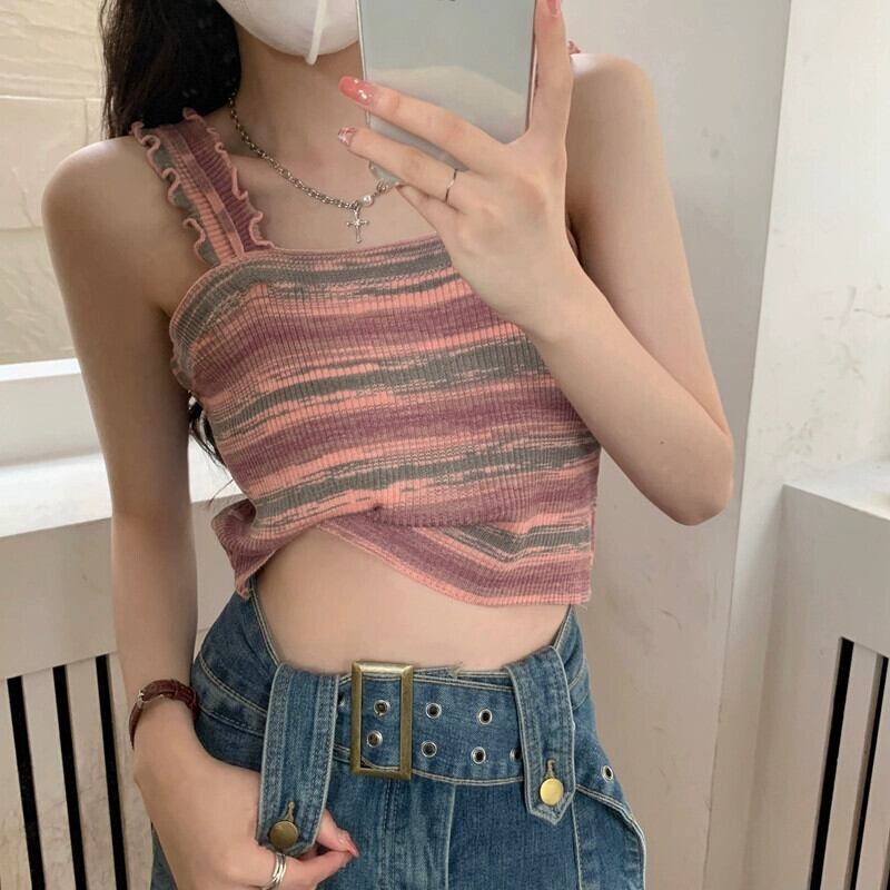 BM レインボースリング レディース 夏 フレンチ ニット ストライプ ベスト シーサイド 美しい背中と外側に着用できるスパイシーなショート ノースリーブ トップ 半袖 ハーフスリーブ サマー 夏物 7460042812343534 | framboise21