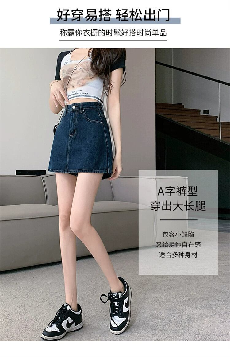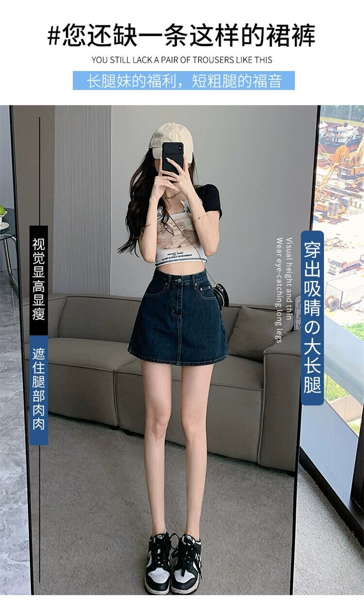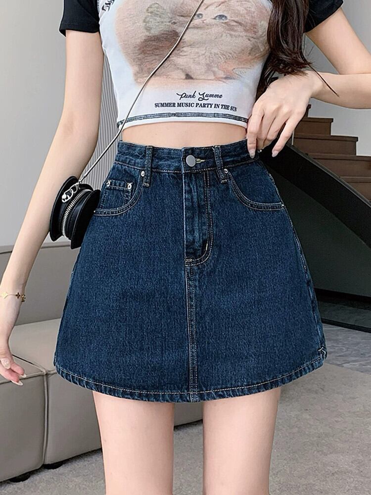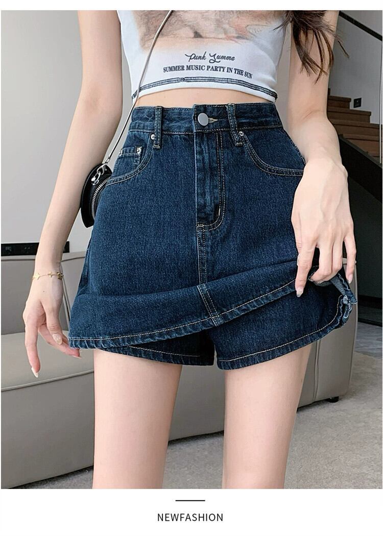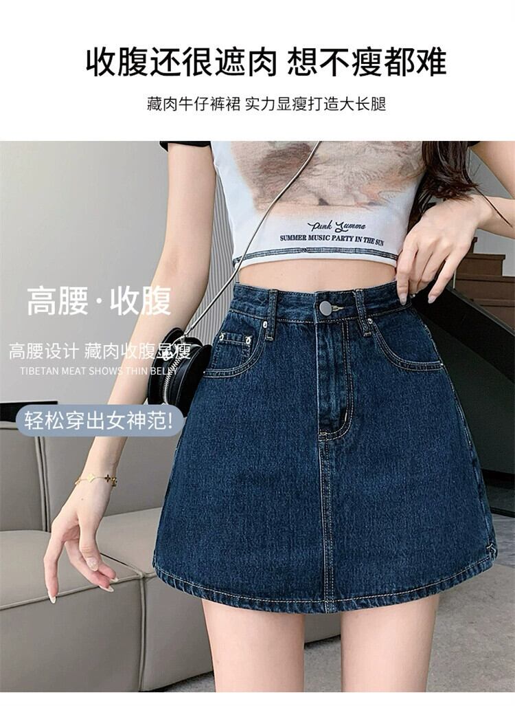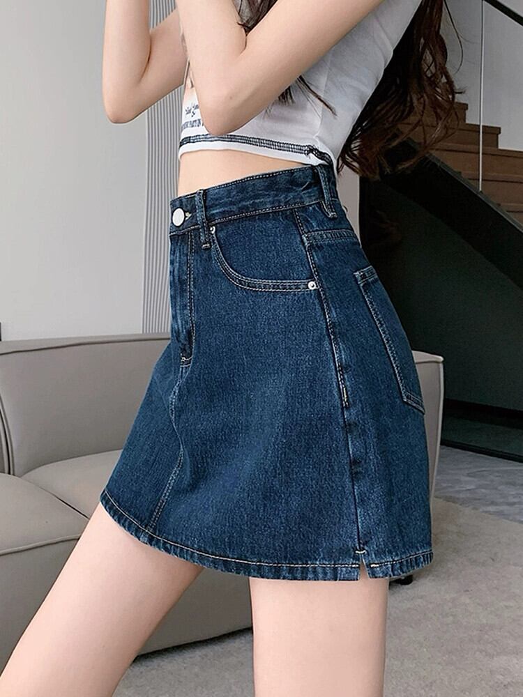 ダークブルーデニムスカートレディースサマーバッグヒップハーフスカートパンツ見た目は薄くて万能な小さなハイウエストAラインショートスカート ハイウェスト 夏物 7460048701089037 | framboise21