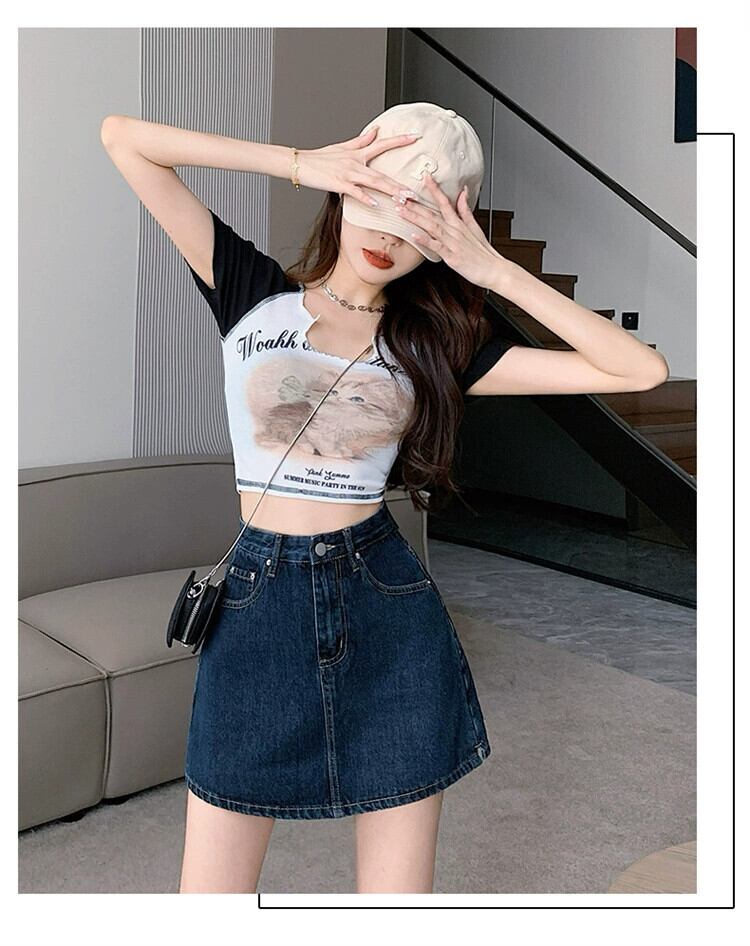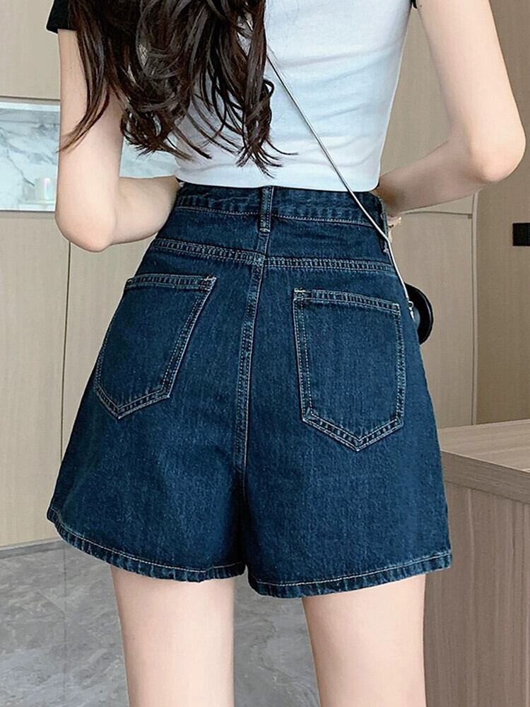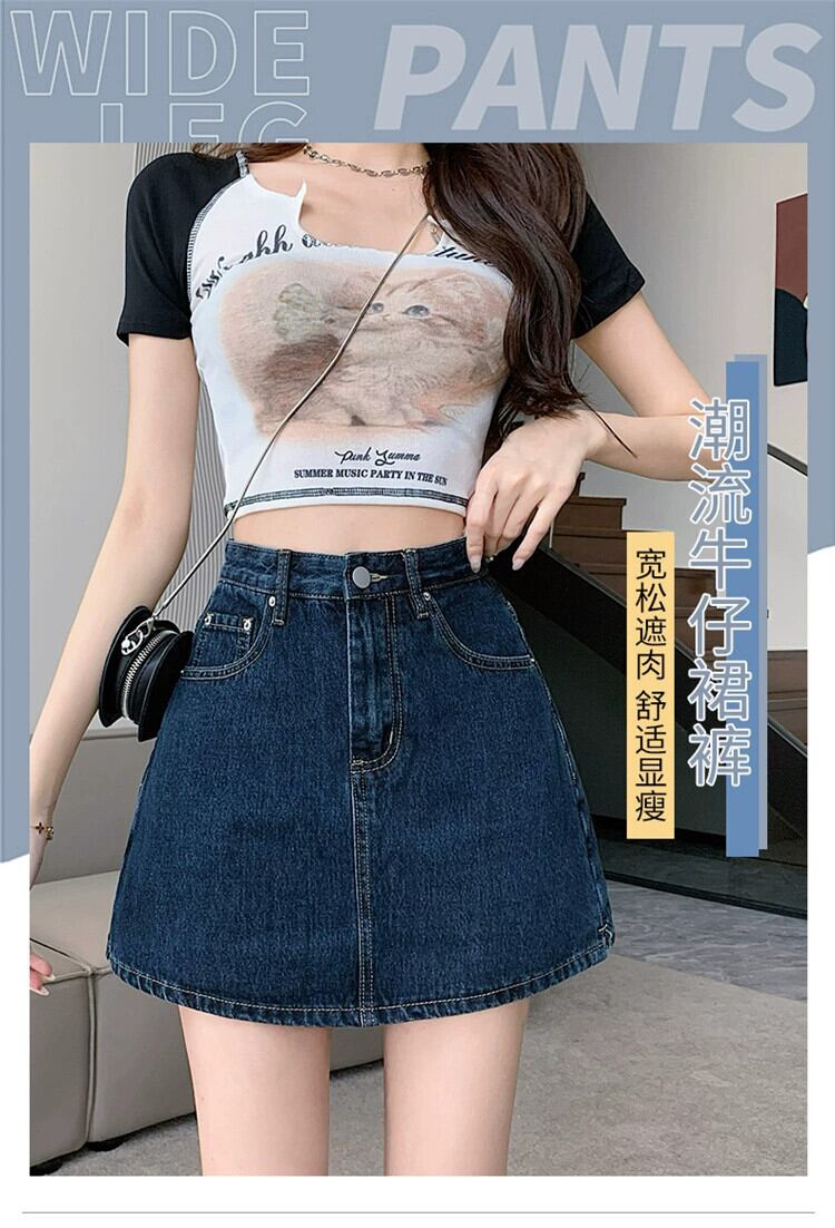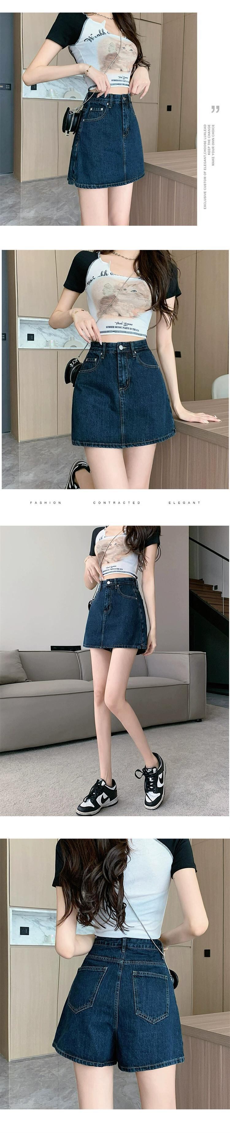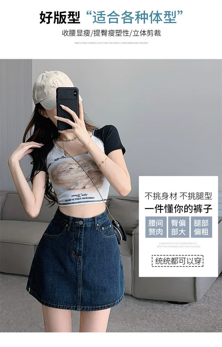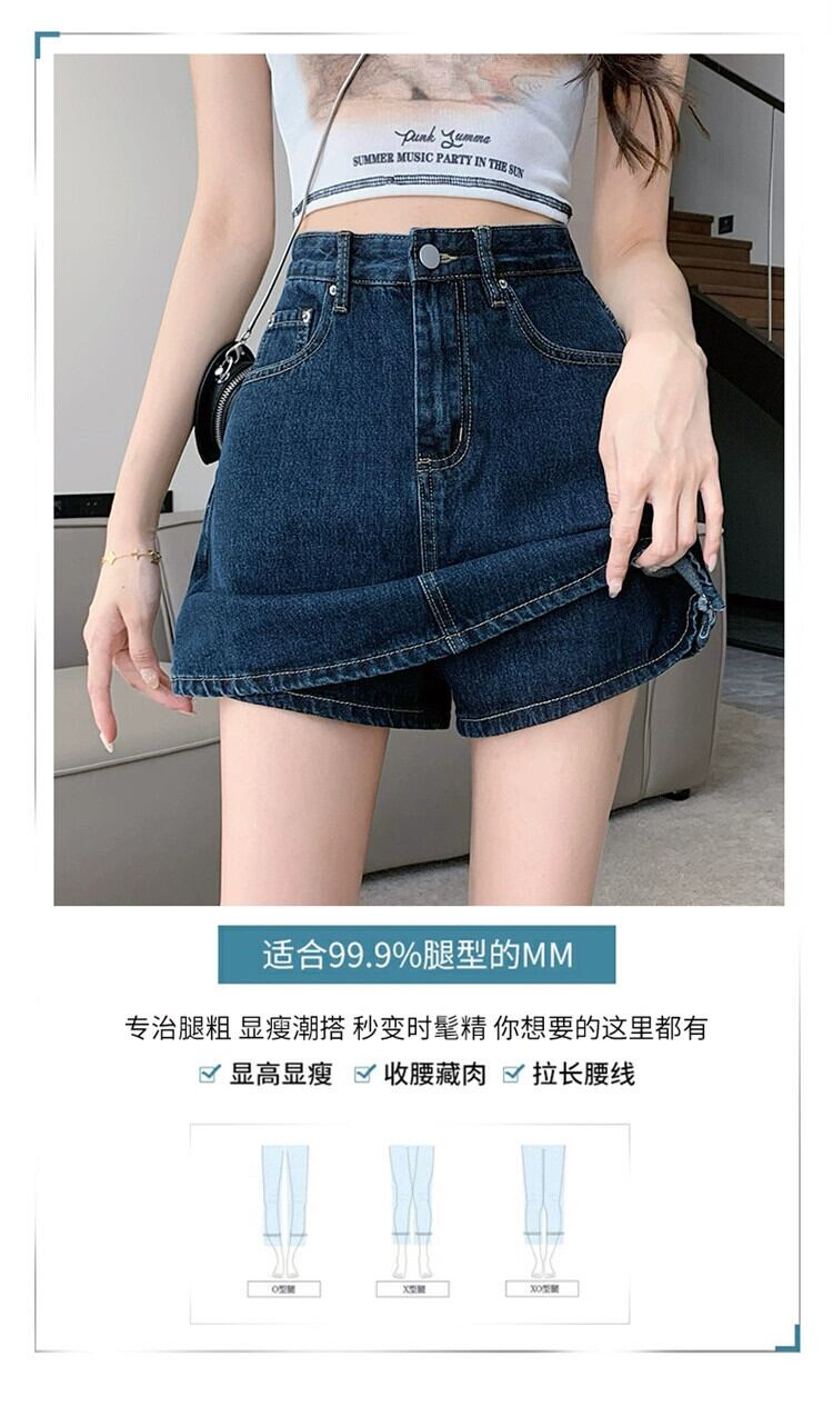ダークブルーデニムスカートレディースサマーバッグヒップハーフスカートパンツ見た目は薄くて万能な小さなハイウエストAラインショートスカート ハイウェスト 夏物 7460048701089037 | framboise21