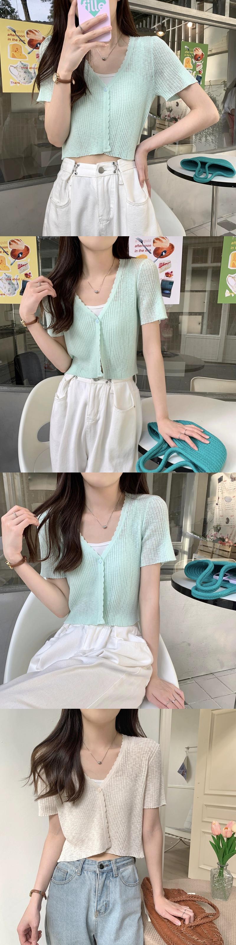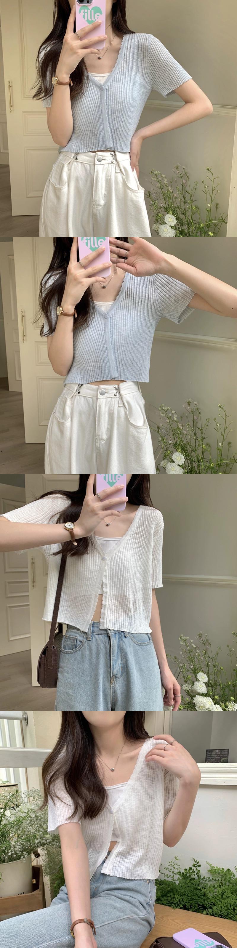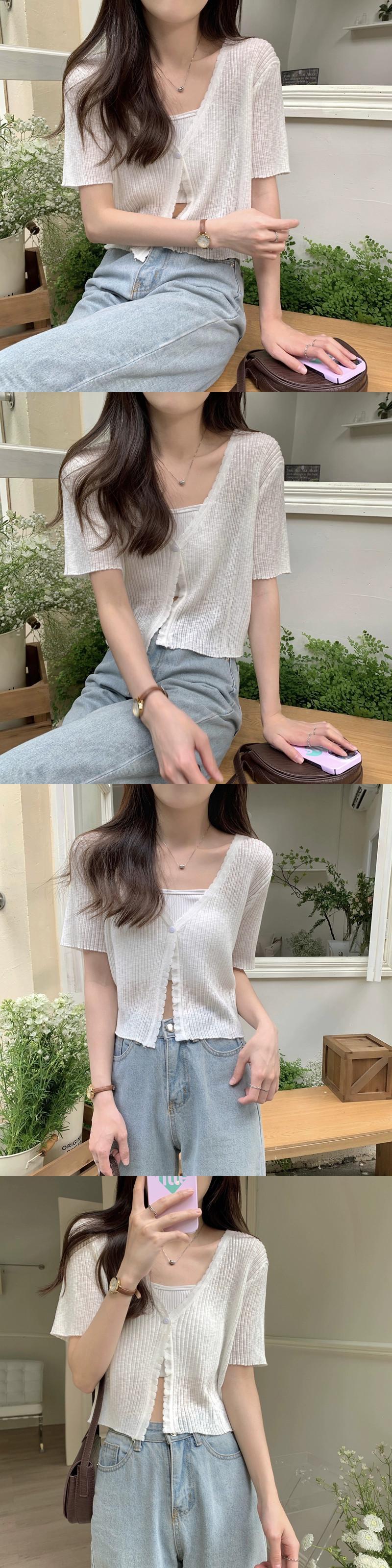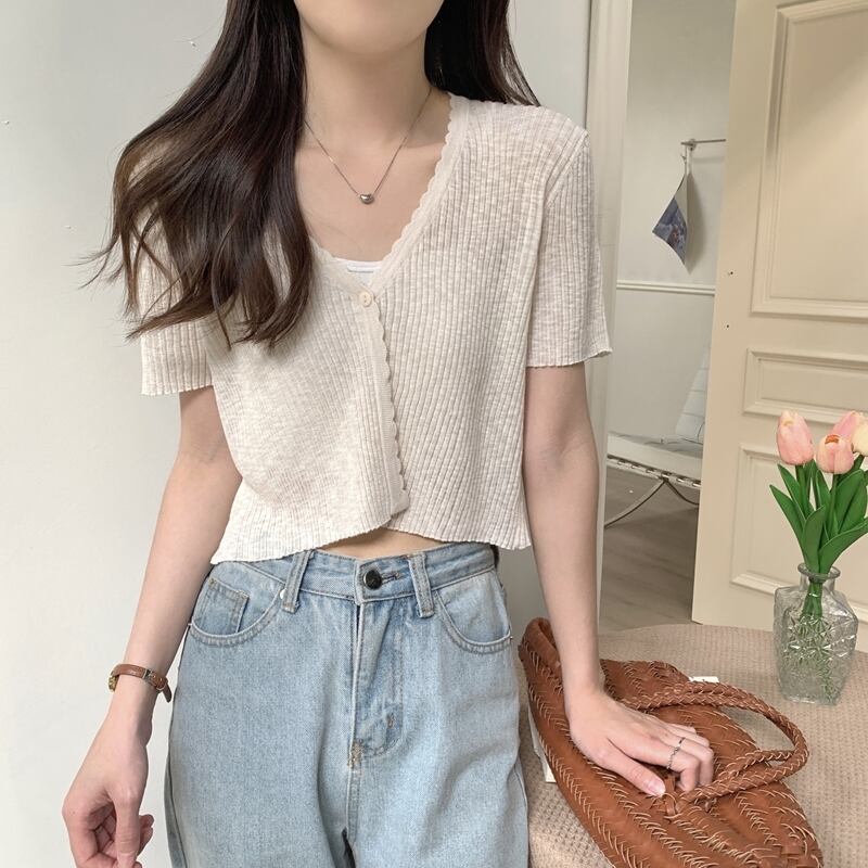 アイスシルクニット半袖カーディガン薄いセクション女性の夏の短いセクション小さなショールサスペンダー付きアインスタイル V ネックトップホワイト ショート サマー 夏物 Vネック 7460065800045901 | framboise21
