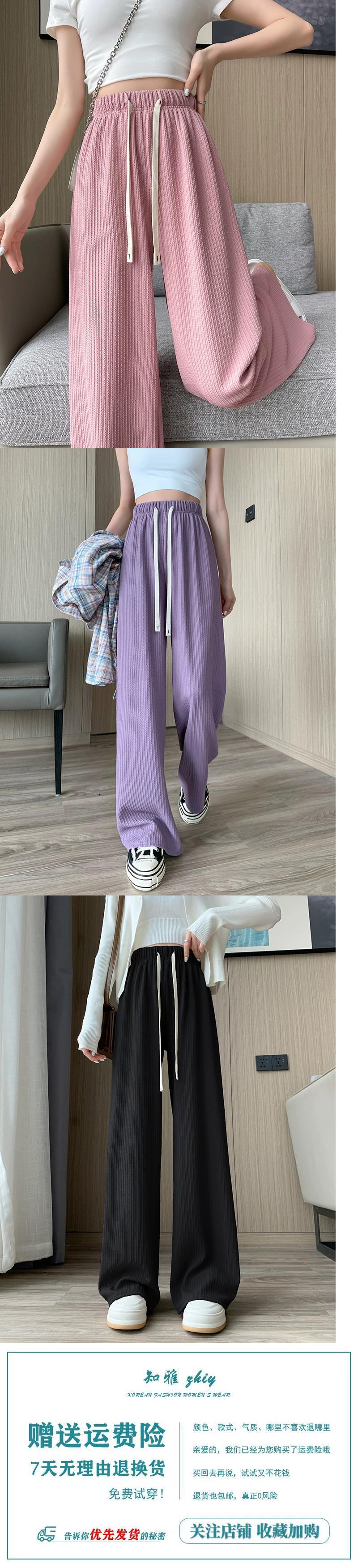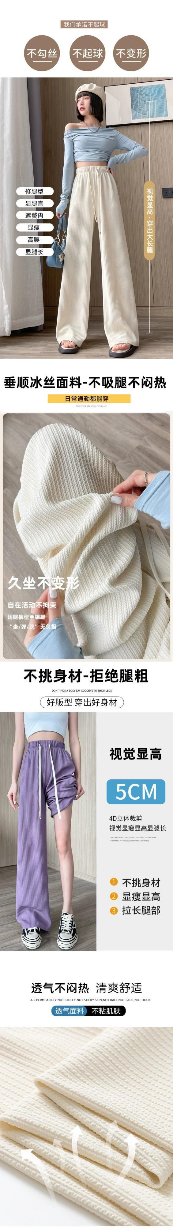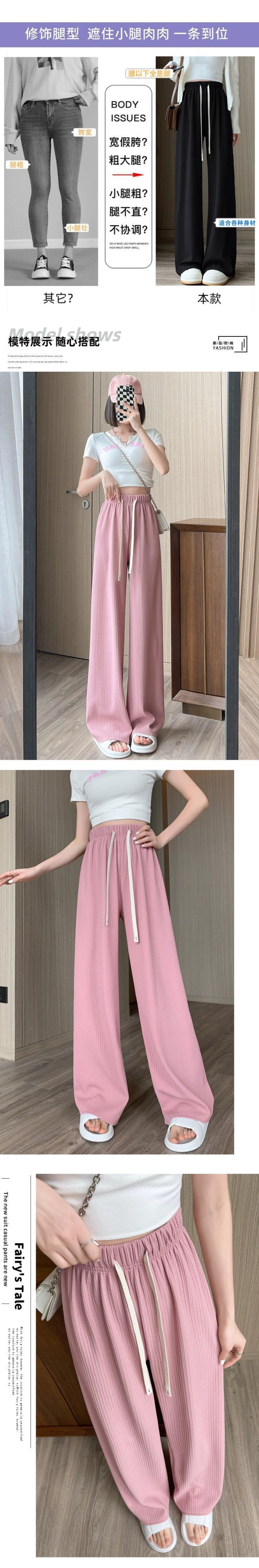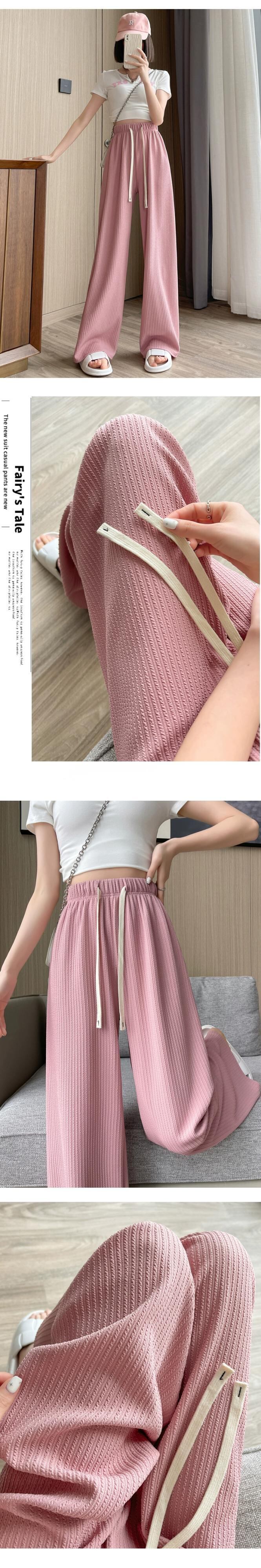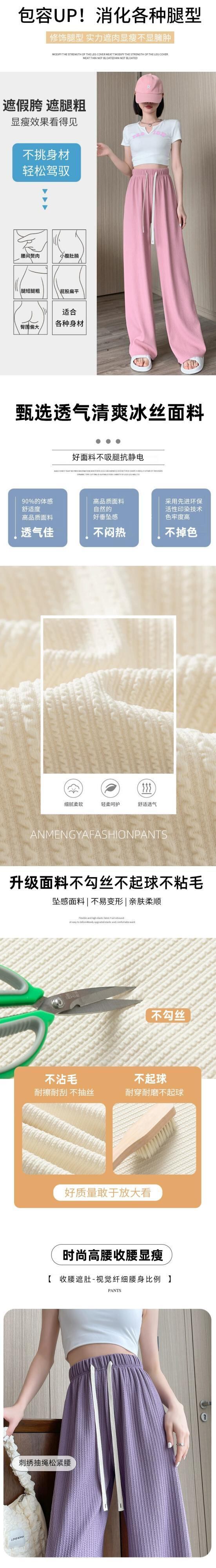 薄氷シルクワイドレッグパンツレディース夏ルーズカジュアルオールマッチテクスチャパンツドレープハイウエストストレートレッグモップパンツ ハイウェスト サマー 夏物 7460025875748374 | framboise21