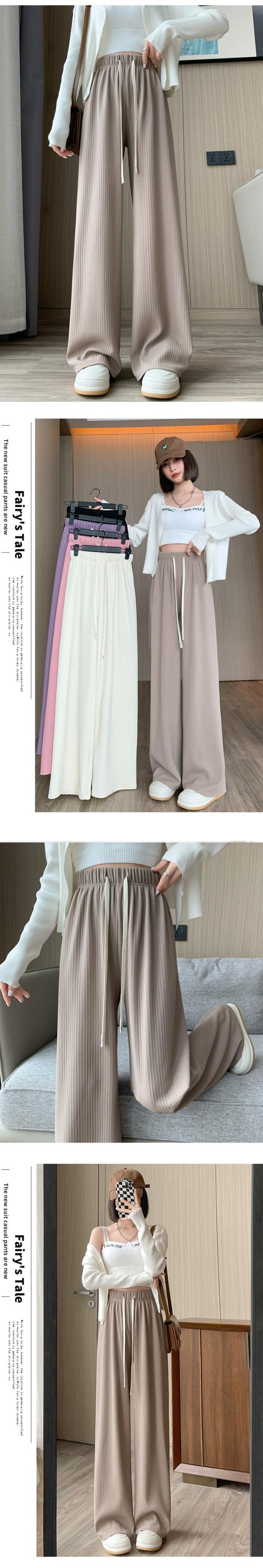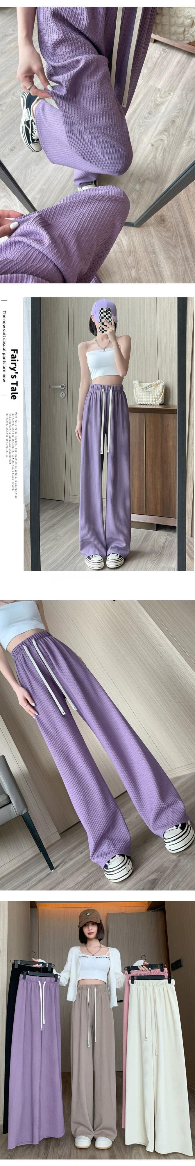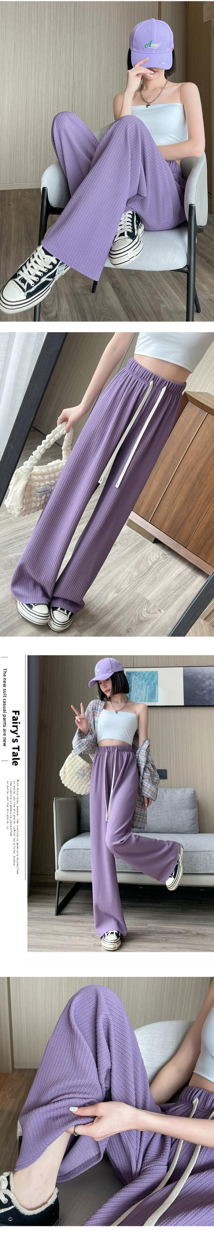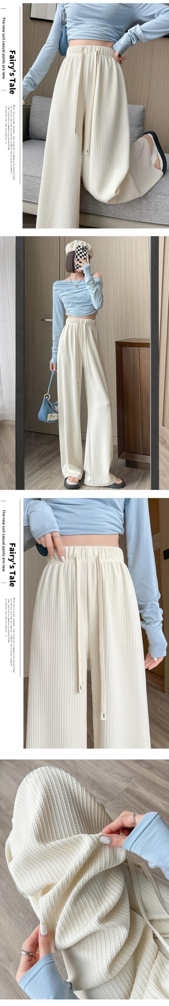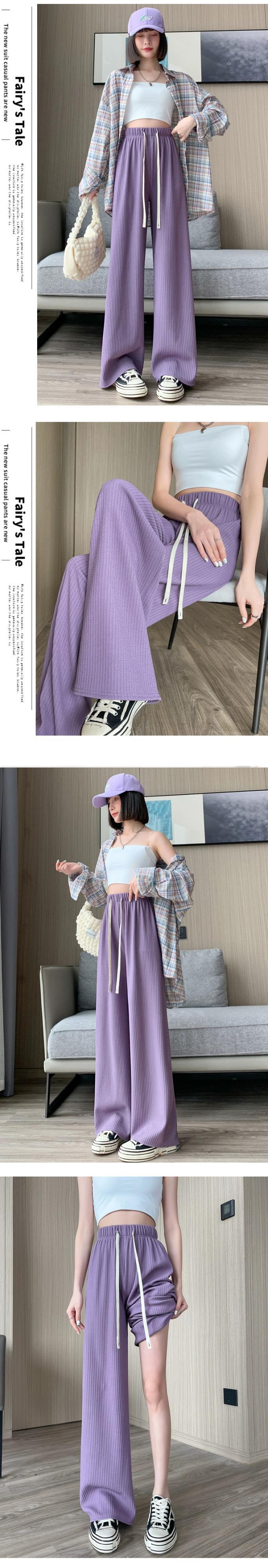 薄氷シルクワイドレッグパンツレディース夏ルーズカジュアルオールマッチテクスチャパンツドレープハイウエストストレートレッグモップパンツ ハイウェスト サマー 夏物 7460025875748374 | framboise21