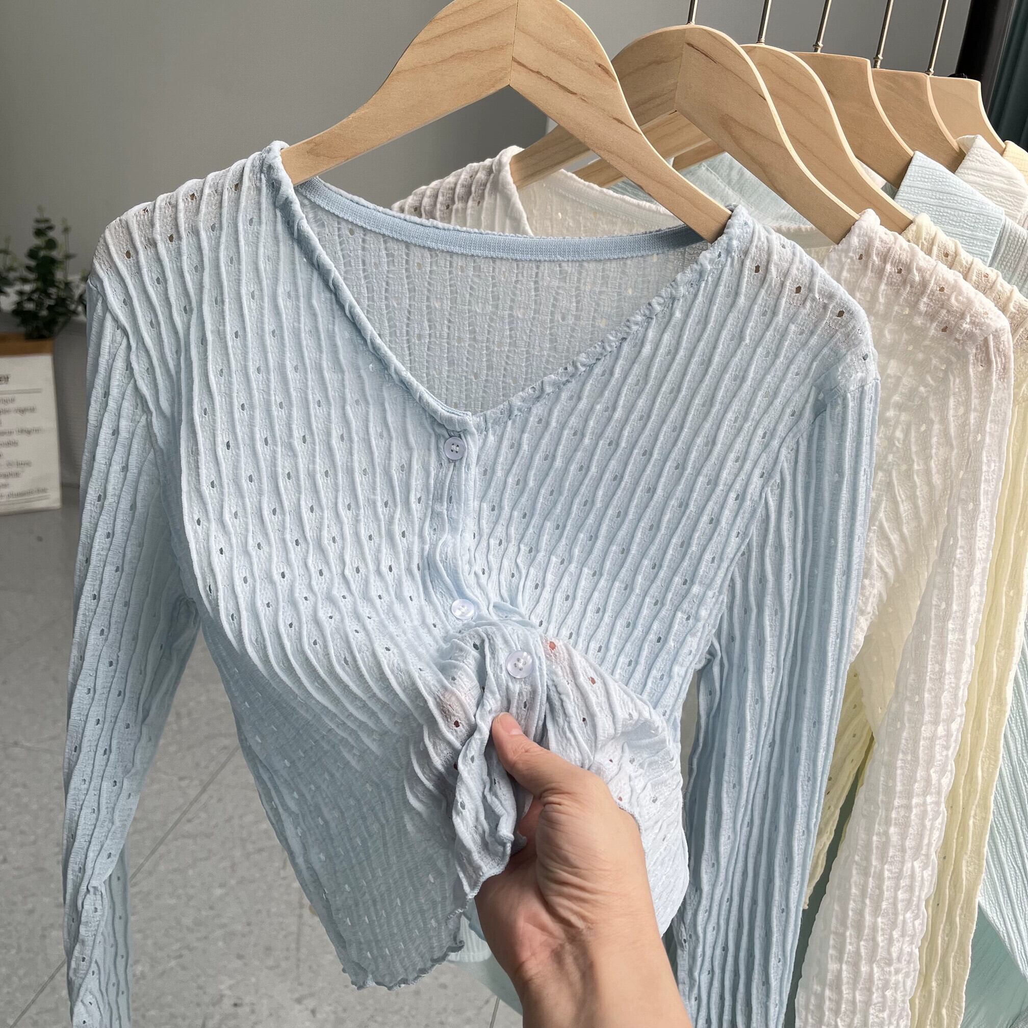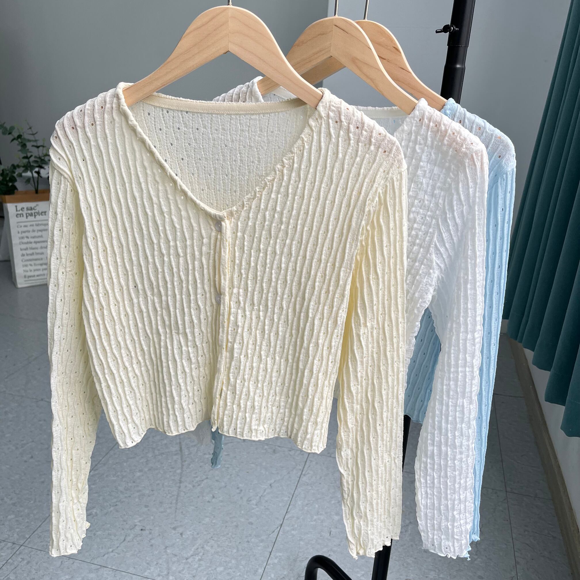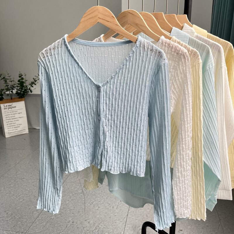 ニット日焼け止めカーディガン女性の夏のデザインセンスファッションルーズアウター薄いアイスシルクブラウスショート V ネック小さなコート サマー 夏物 Vネック 7460045098143455 | framboise21