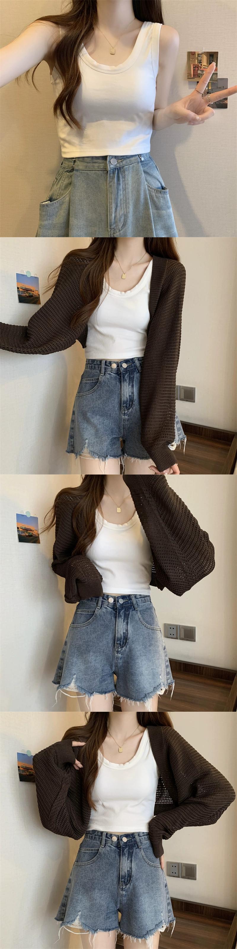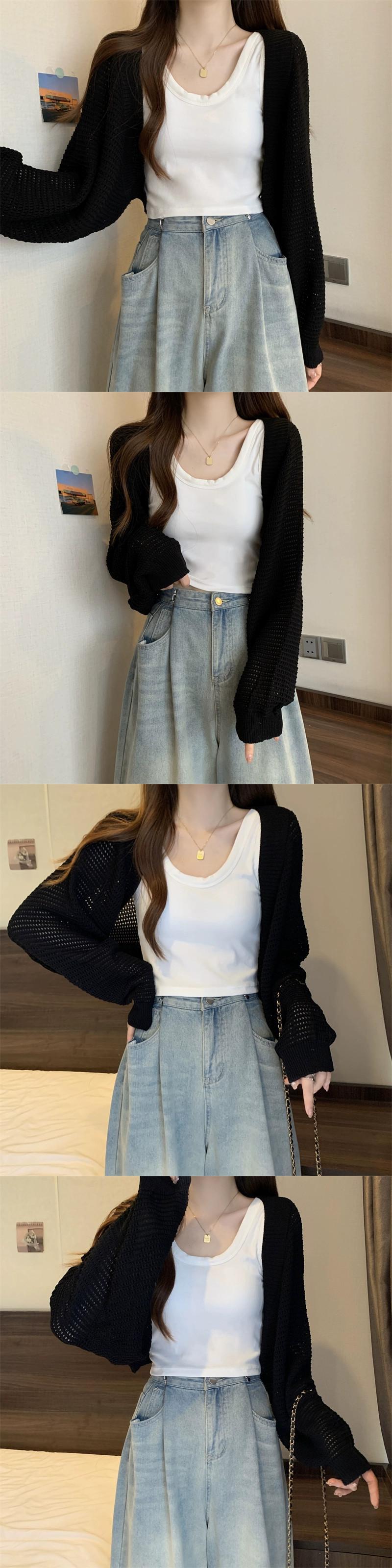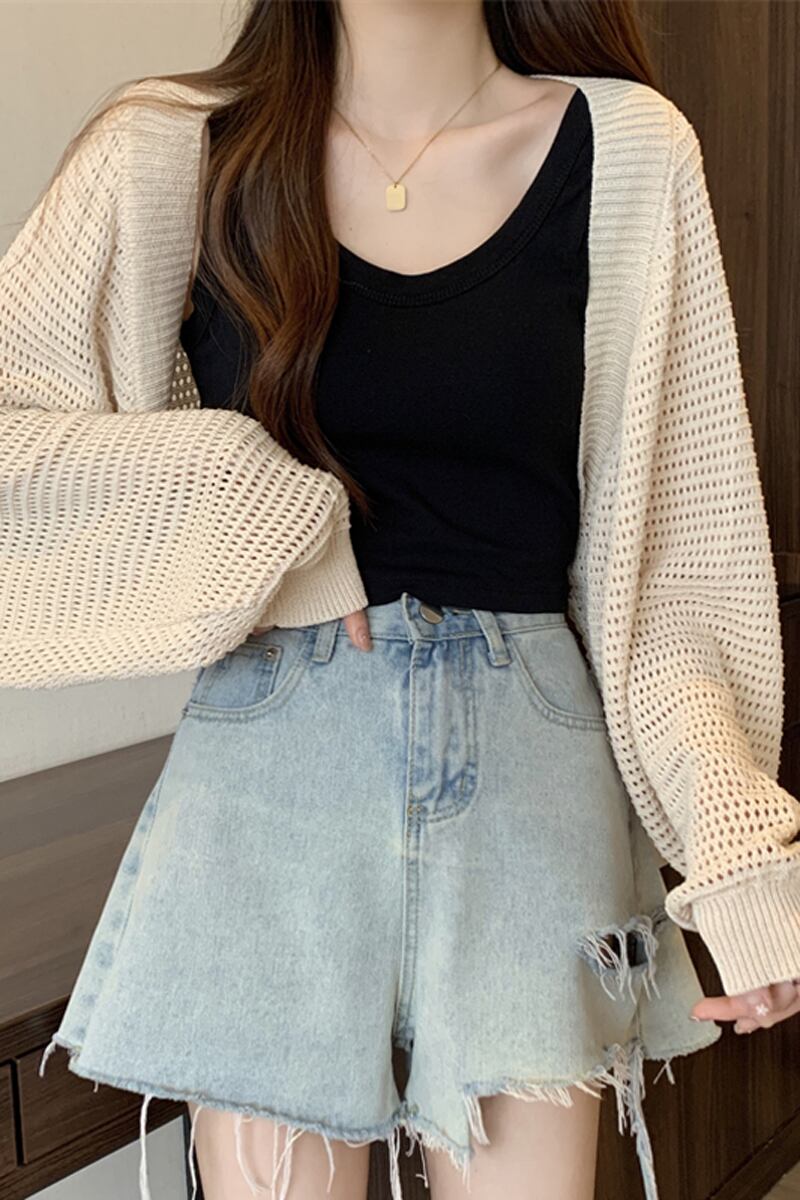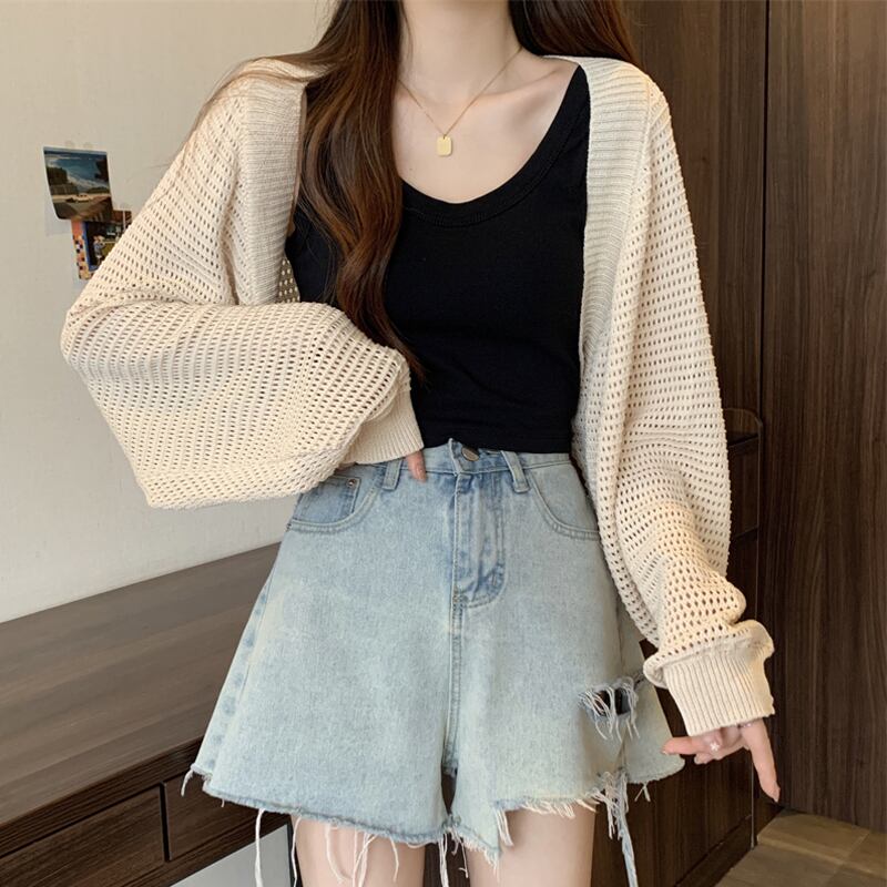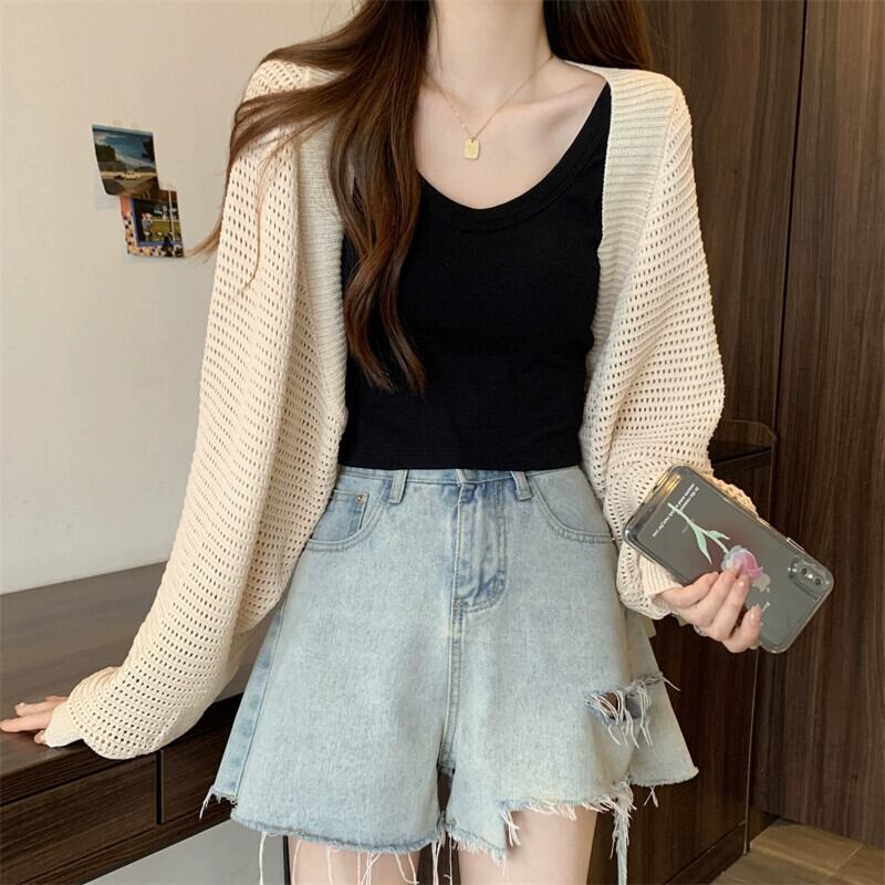 中空の薄いセクション日焼け止めショールブラウス女性の夏の eign スタイル小さなベストアイスシルクニットカーディガンとサスペンダースカート サマー 夏物 7460076914904824 | framboise21