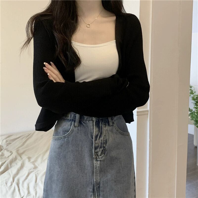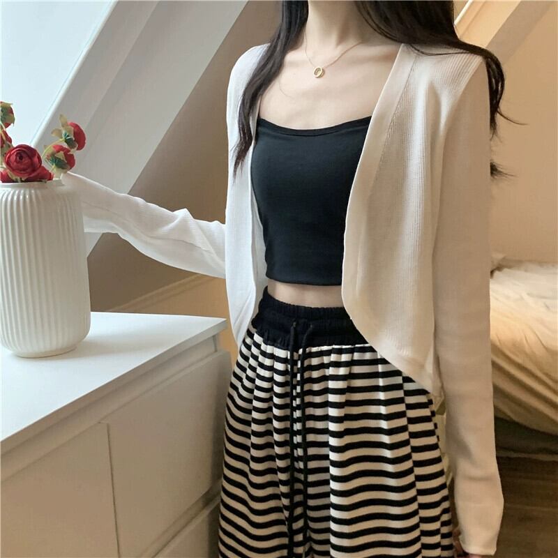 ニット日焼け止めカーディガン女性の夏の薄いセクションアイスシルク小さなチョッキブラウスとストラップとショートハーフショールコート サマー 夏物 7460084819572704 | framboise21