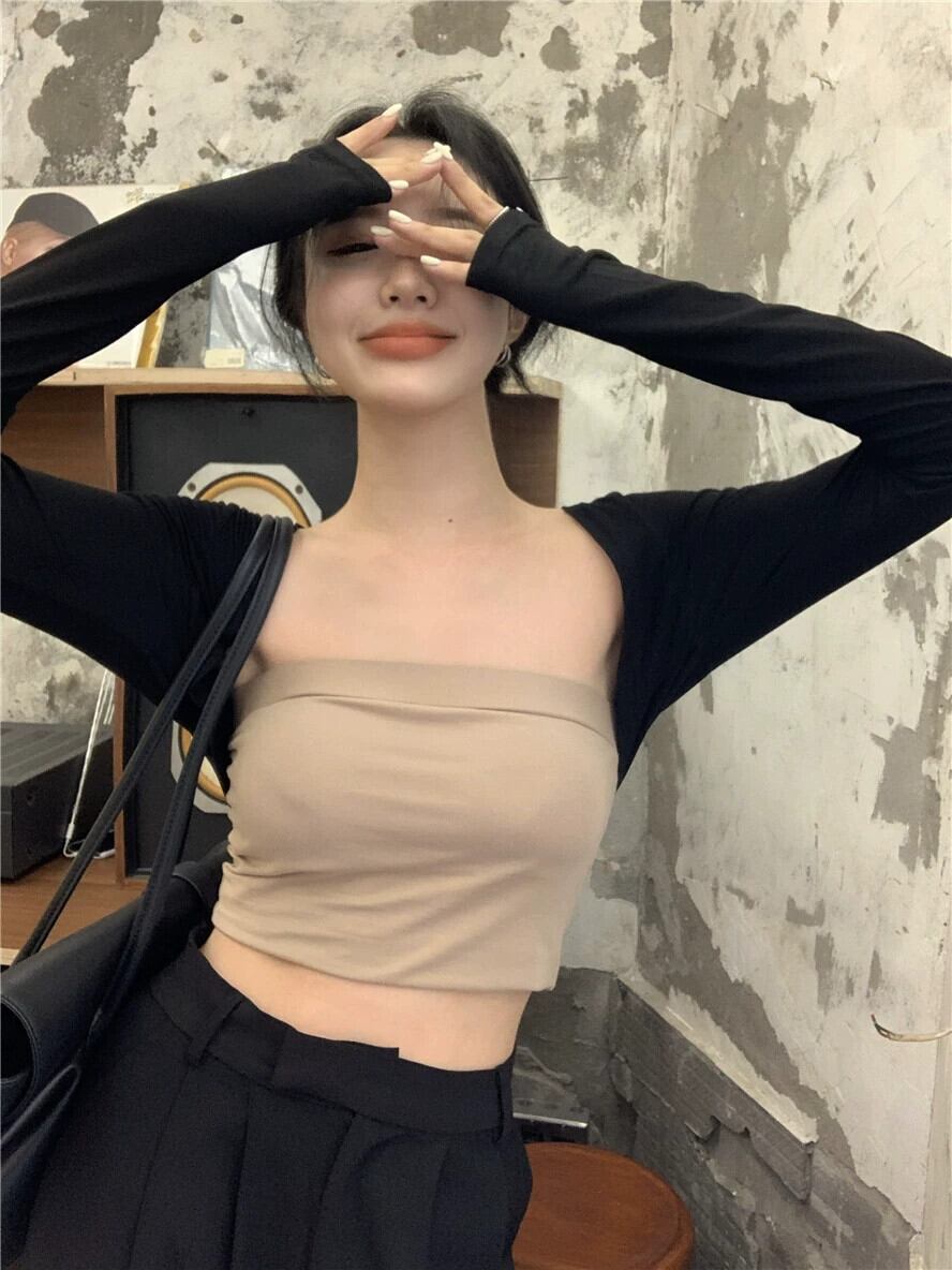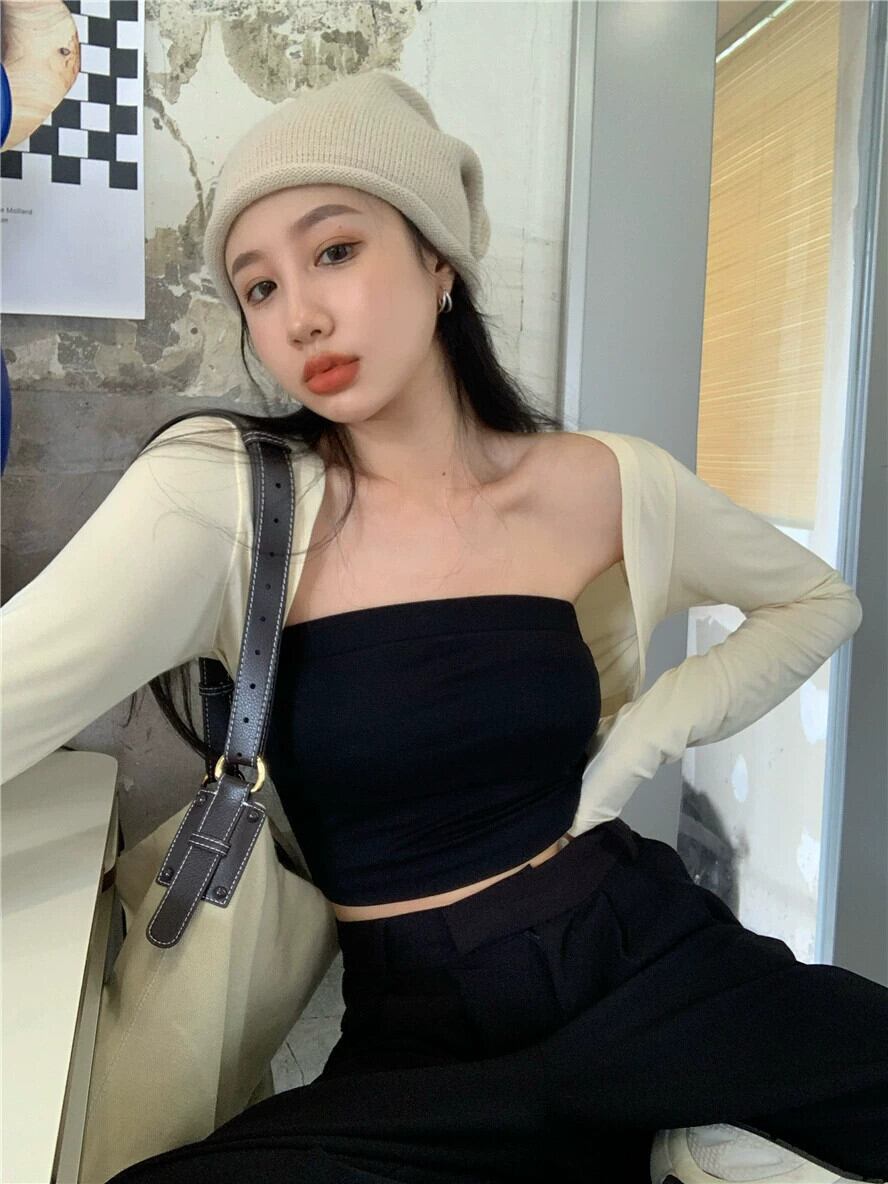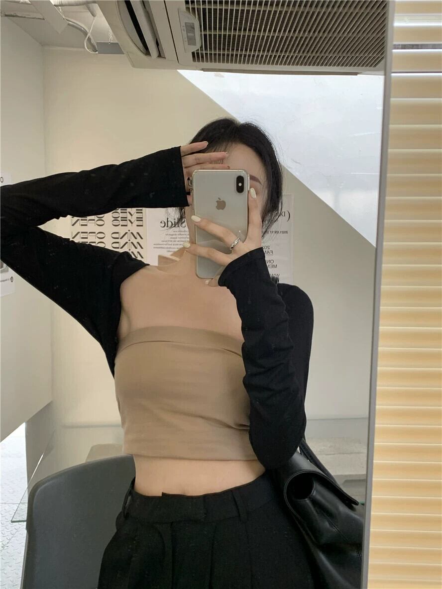 黒の日焼け止め小さなカーディガン女性の夏の薄いアイスシルクニットブラウスとストラップとハーフショートショールトップ ブラック サマー 夏物 7460034029022078 | framboise21