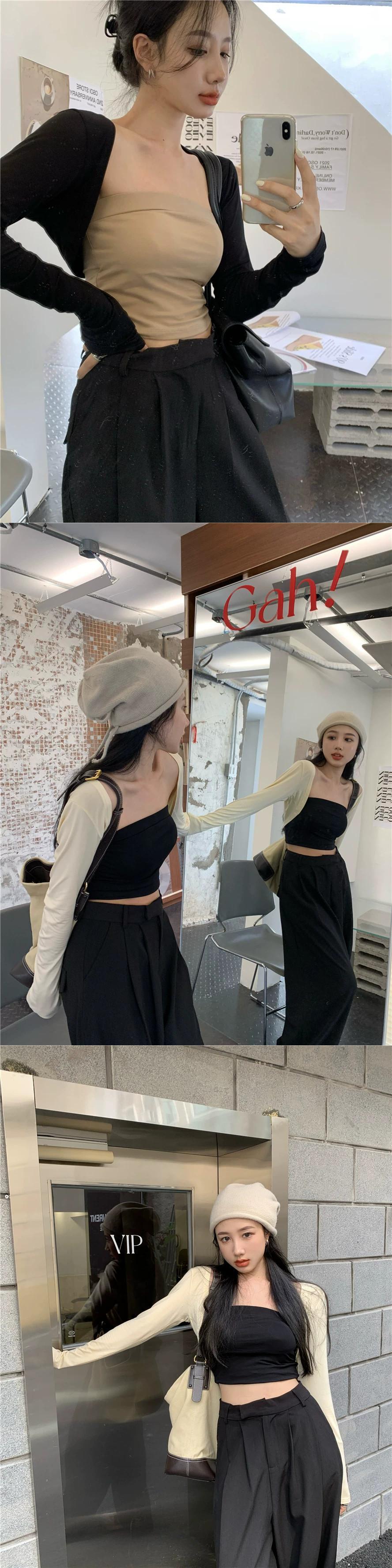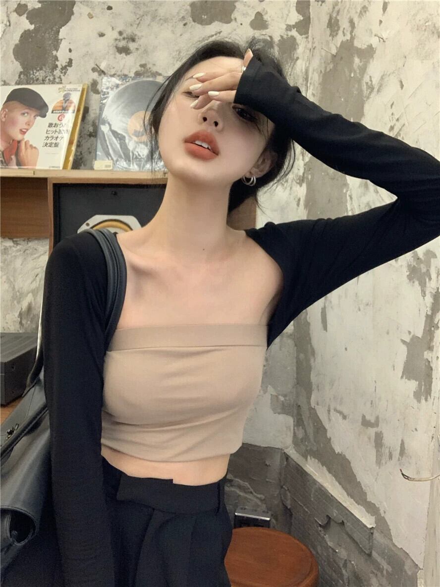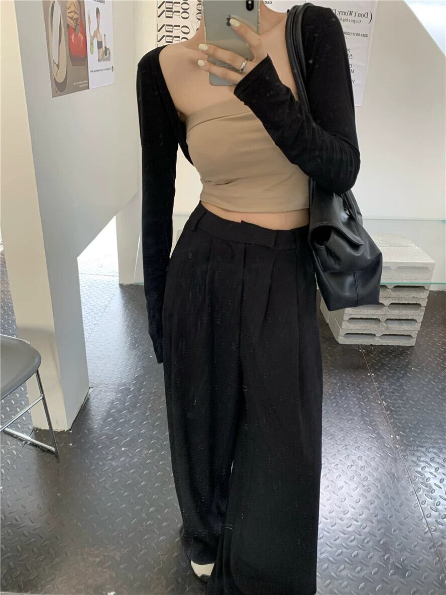 黒の日焼け止め小さなカーディガン女性の夏の薄いアイスシルクニットブラウスとストラップとハーフショートショールトップ ブラック サマー 夏物 7460034029022078 | framboise21