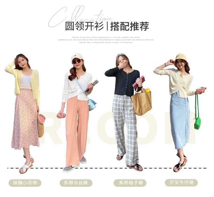 アイスシルク日焼け止めカーディガンストラップ付き女性夏薄いニットブラウスジャケットファッションショート長袖空調シャツ ロング サマー 夏物 7460037402100468 | framboise21