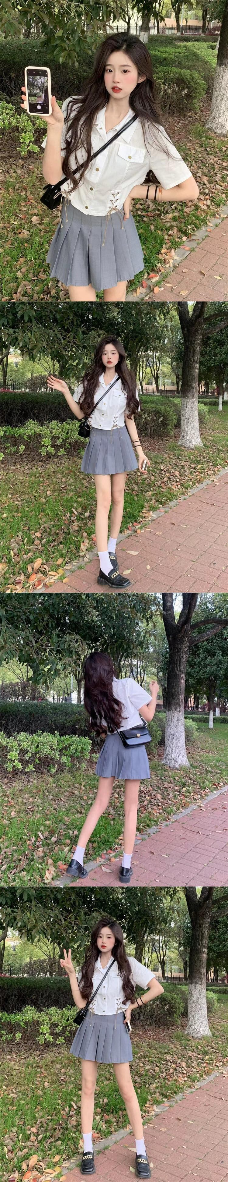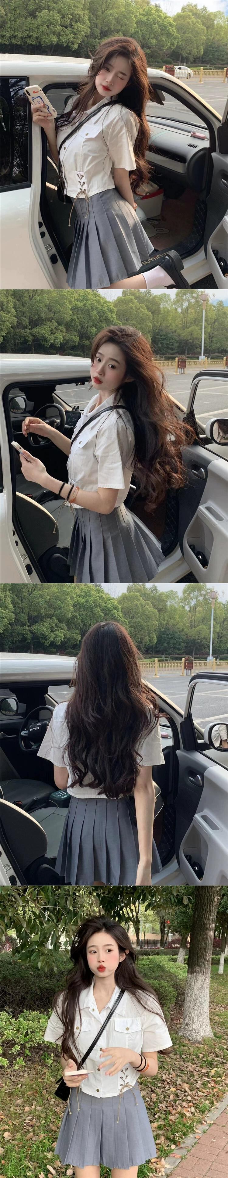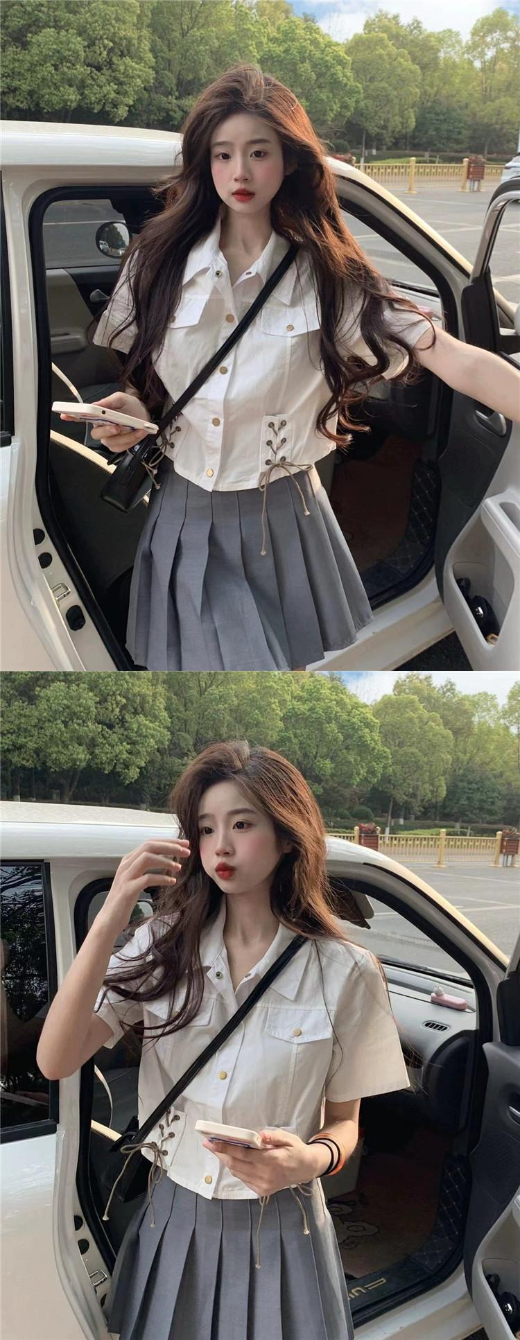 ポロカラー半袖シャツレディース夏アインスタイルデザイン自己修養の感覚スリムストラップハイウエストショートトップイン潮 ハイウェスト サマー 夏物 7460024112134193 | framboise21