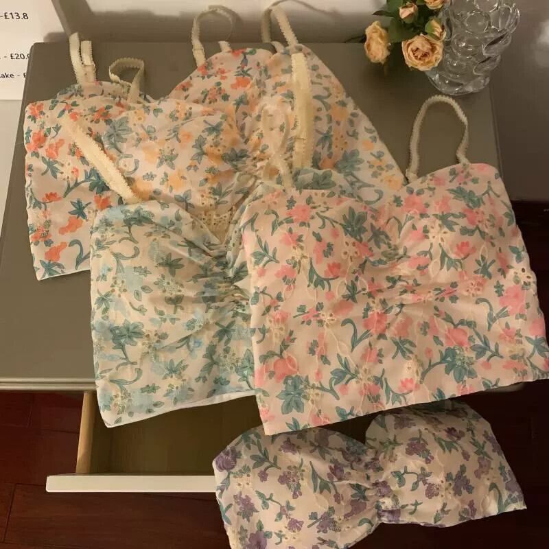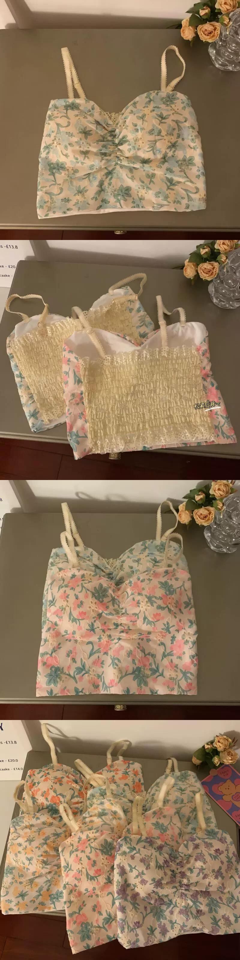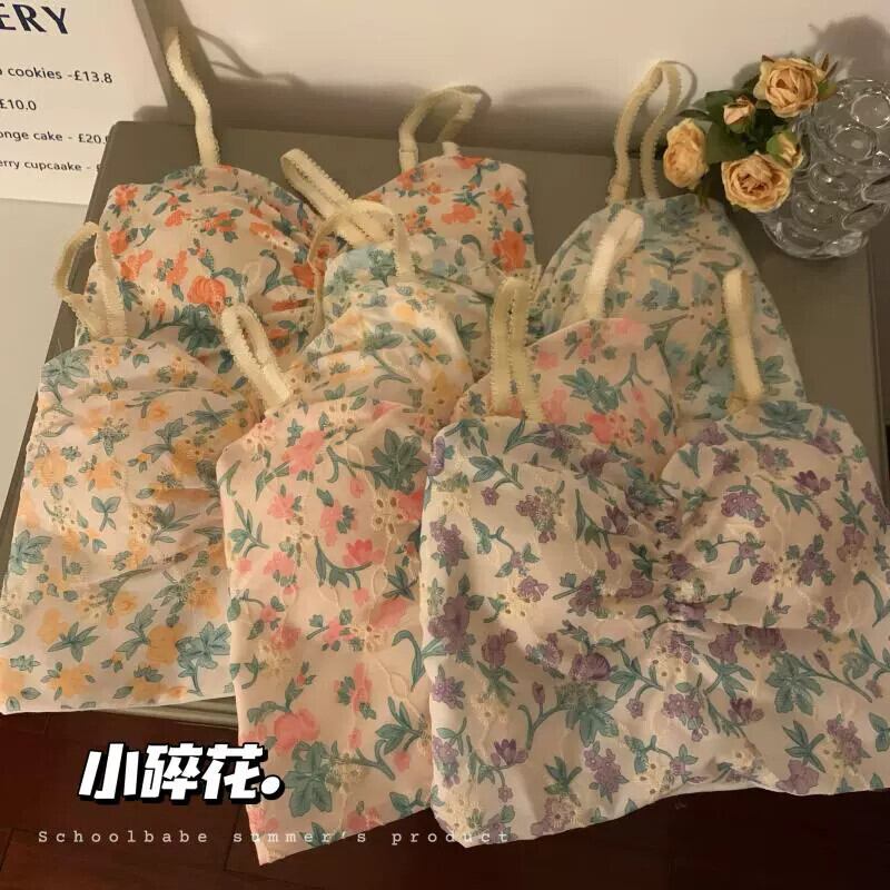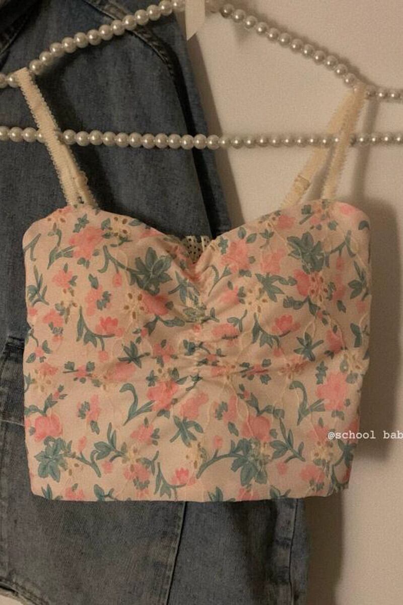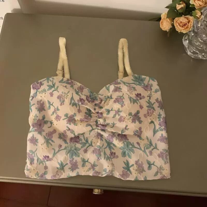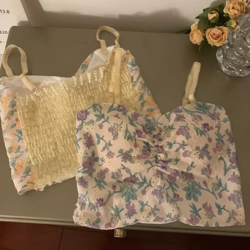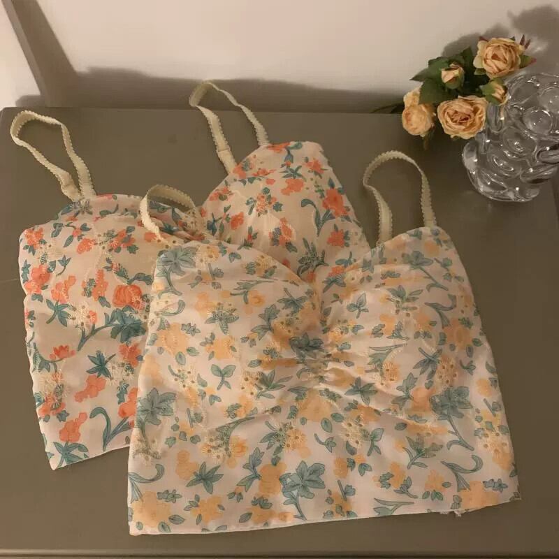 小花サスペンダー女性の夏フレンチシックなインナーとアウターウェア美容ストラップ胸パッドベスト bm ショートチューブトップトップ サマー 夏物 花柄 7460033829959297 | framboise21