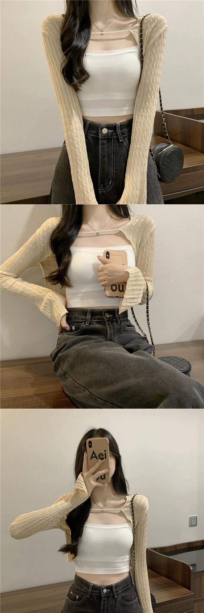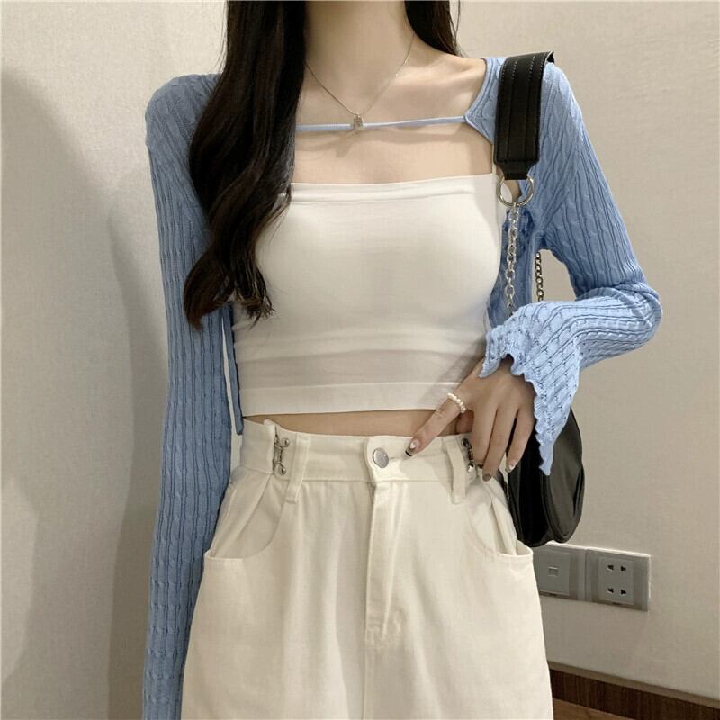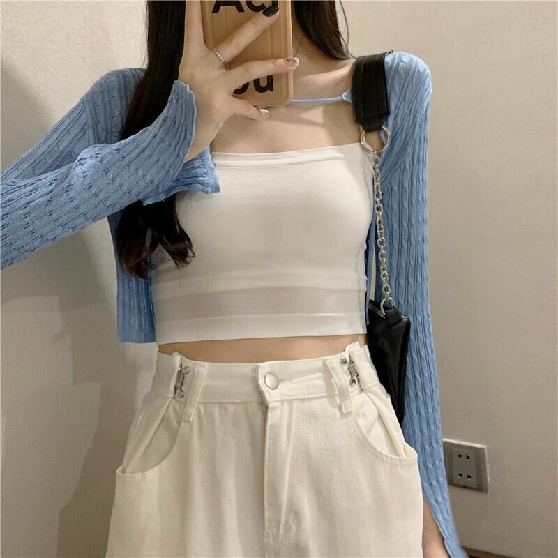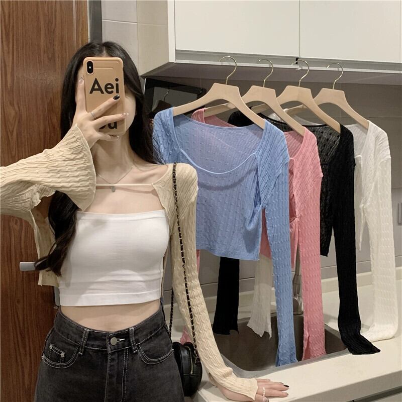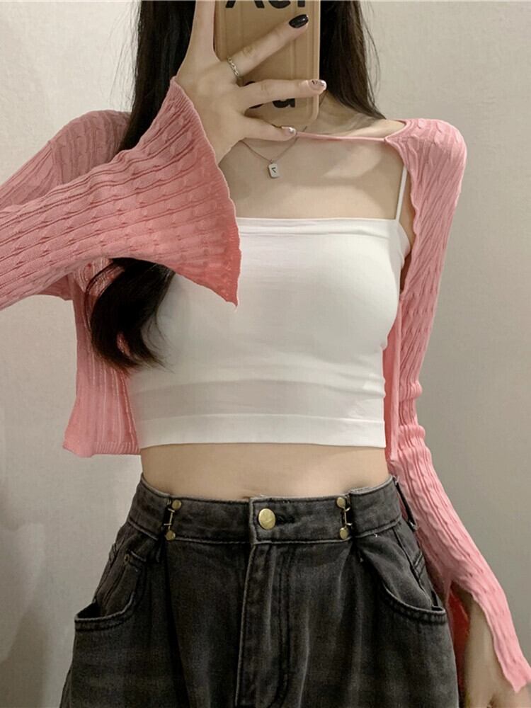 日焼け止めカーディガン女性の薄いセクション夏フランスの小さなチョッキハーフブラウスとストラップショールトランペットスリーブトップ サマー 夏物 7460077858152851 | framboise21