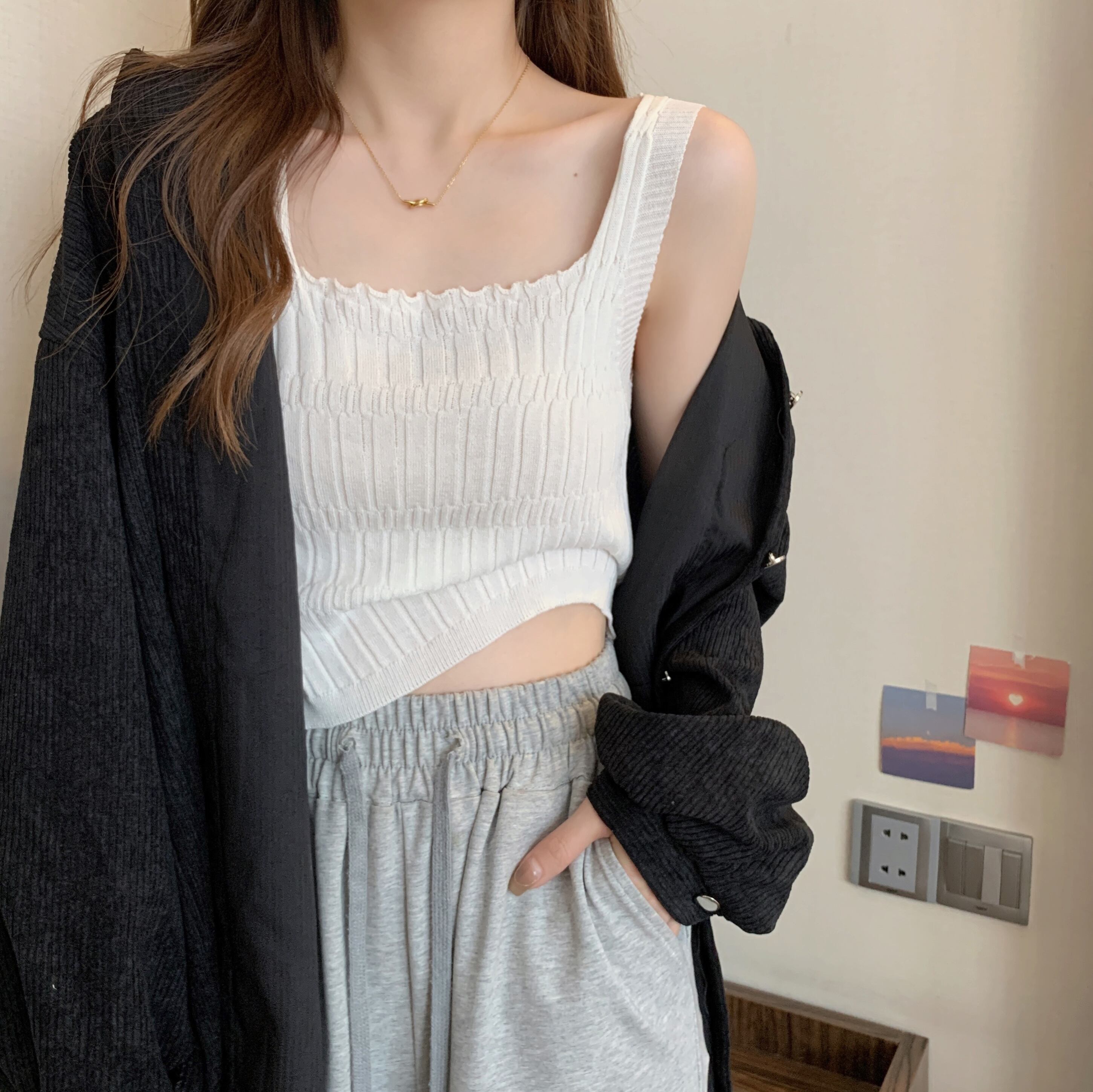 アイスシルク ニットキャミソール レディース 夏用インナー 洋風 スリム スリム アウター ショートバックレス ベーストップ サマー 夏物 7460011714760402 | framboise21
