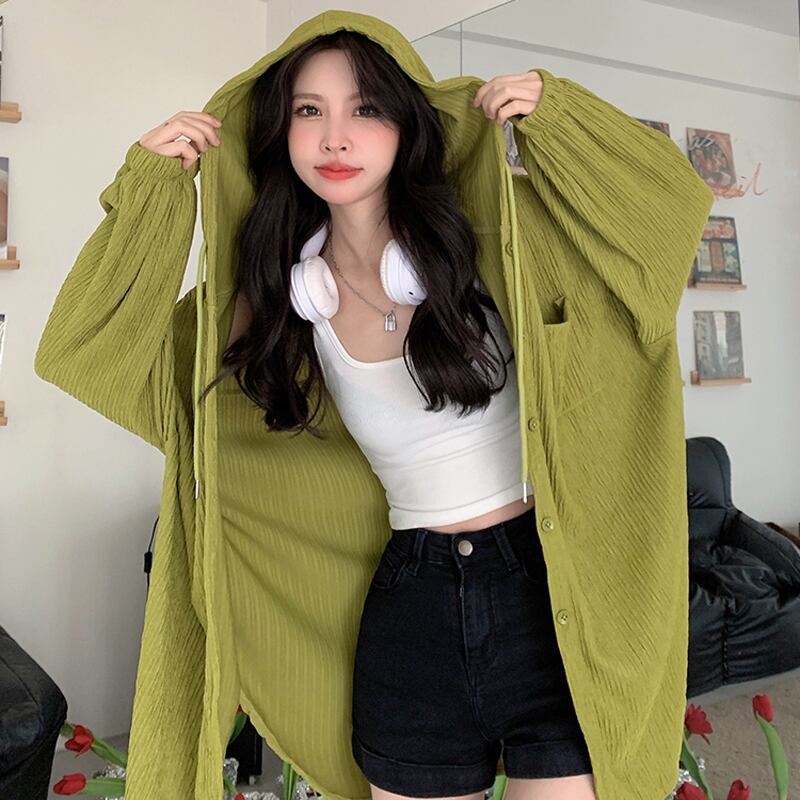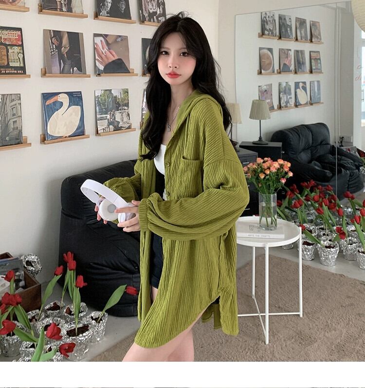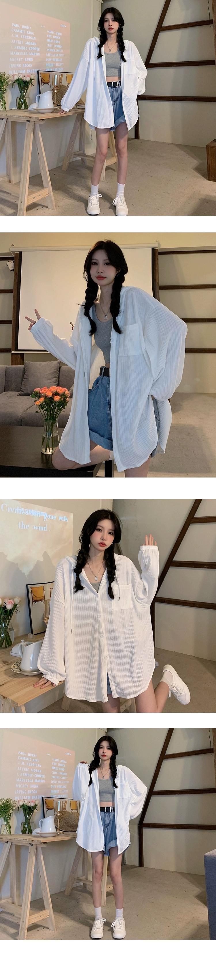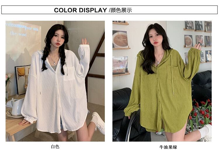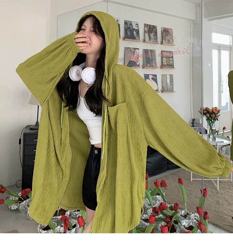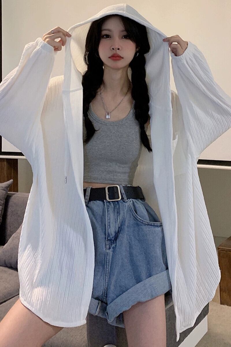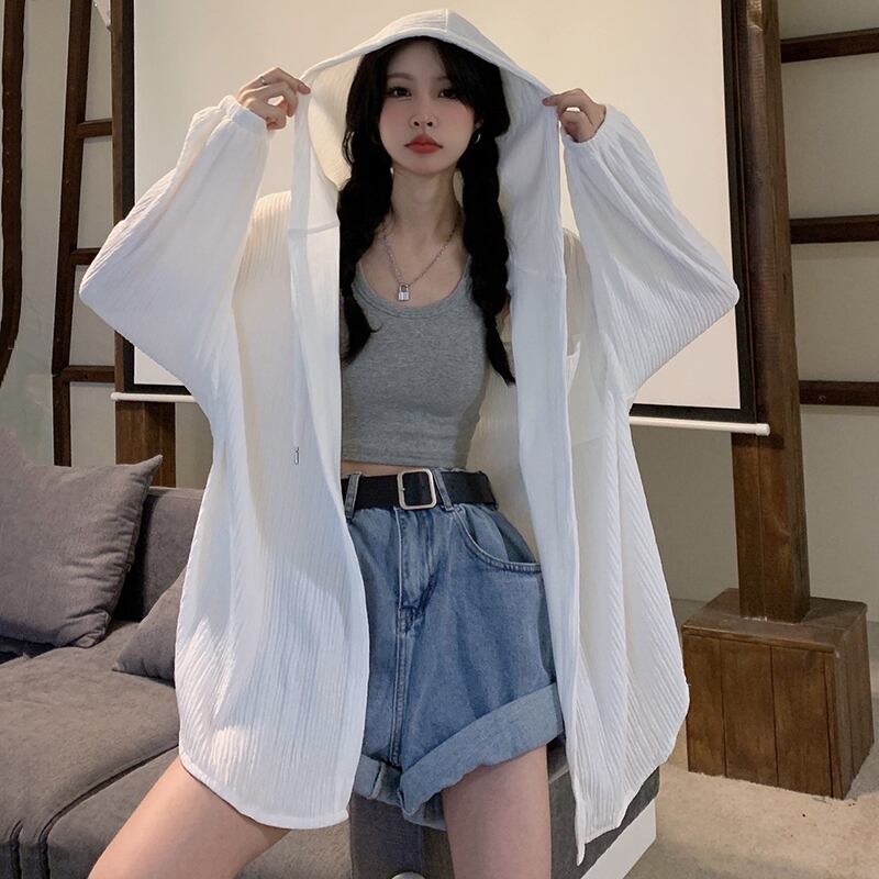 白いフード付き日焼け止めレディース夏のデザイン、ゆったりと多用途なアウター UV 保護薄いカーディガン ジャケット ホワイト サマー 夏物 7460079259751529 | framboise21