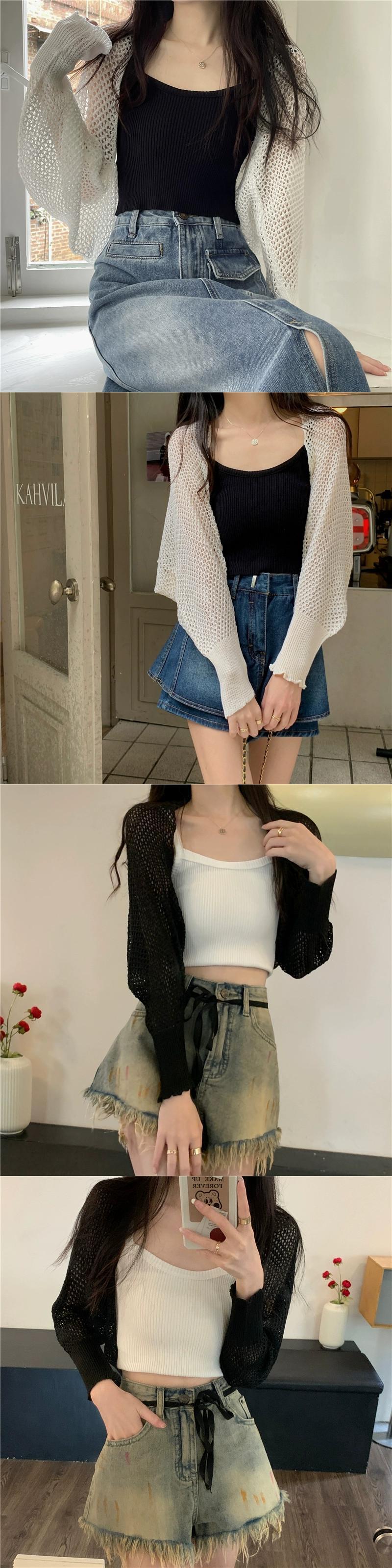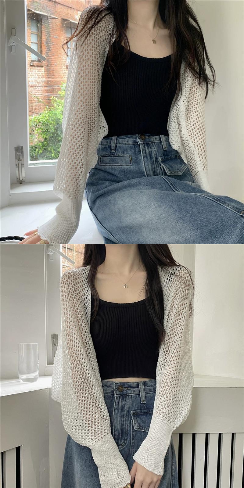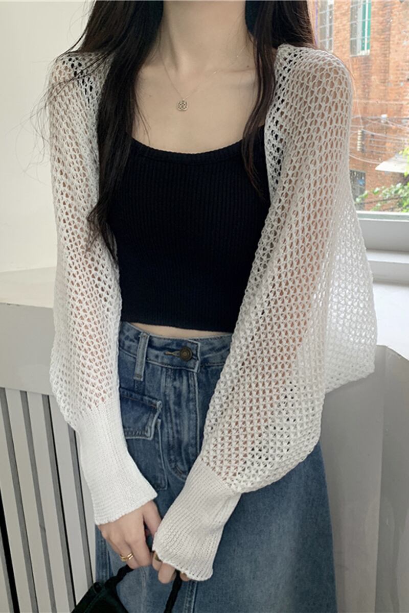 ショート中空ニットカーディガン女性の夏薄いセクション日焼け止めアイスシルクブラウスファッションサスペンダーとショール小さなコート サマー 夏物 7460056597549639 | framboise21