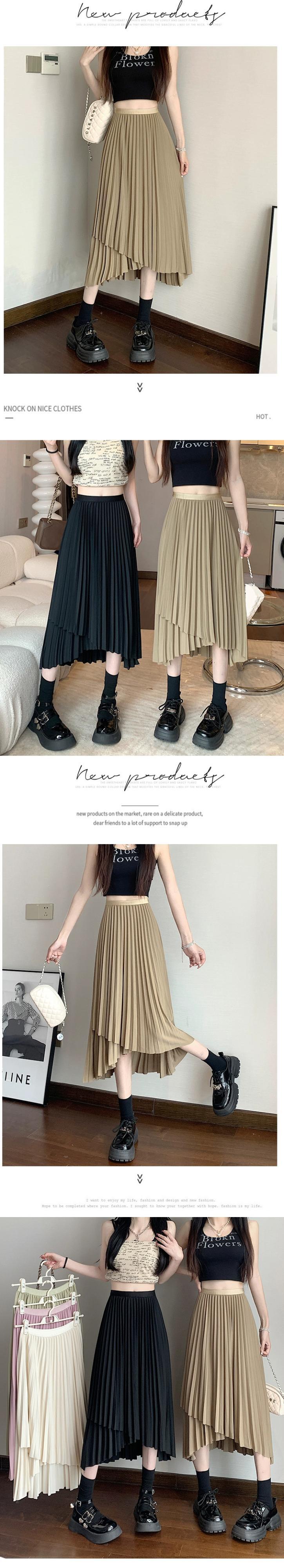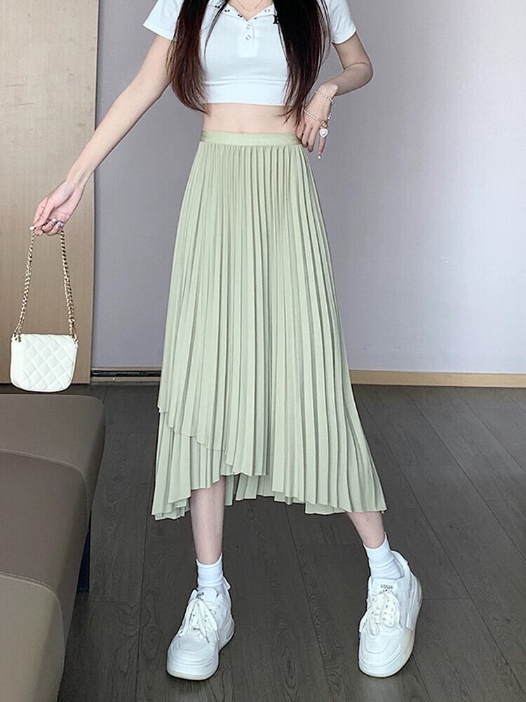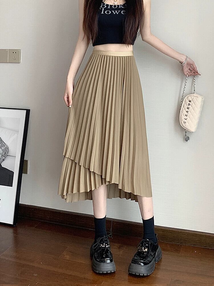 カーキプリーツスカート レディース 夏デザイン 細く見える ハイウエスト ミモレ丈 Aラインスカート イレギュラードレープスカート ハイウェスト サマー 夏物 7460014748658960 | framboise21