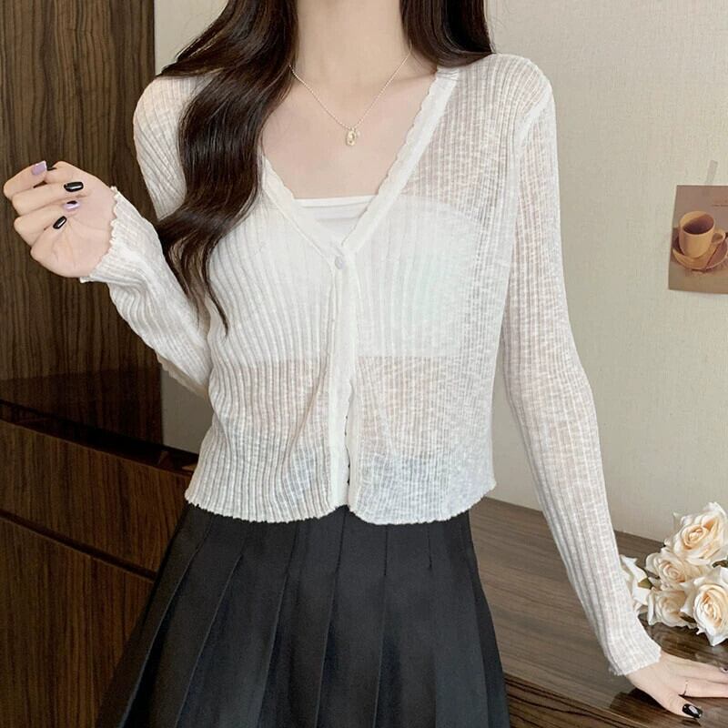 ブラックアイスシルク日焼け止めカーディガンレディース夏アウター薄手ニットブラウスショートエアコンルームジャケットサスペンダースカート付き サマー 夏物 7460062670225268 | framboise21