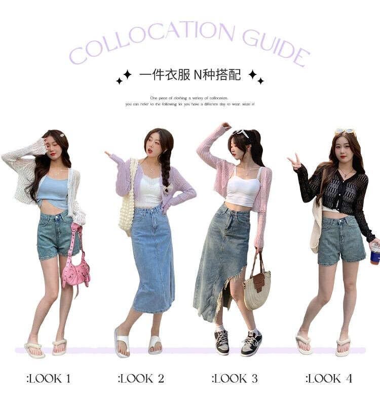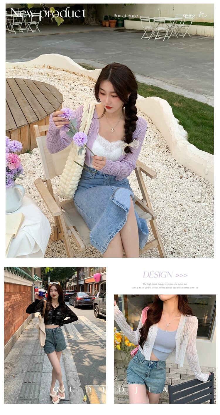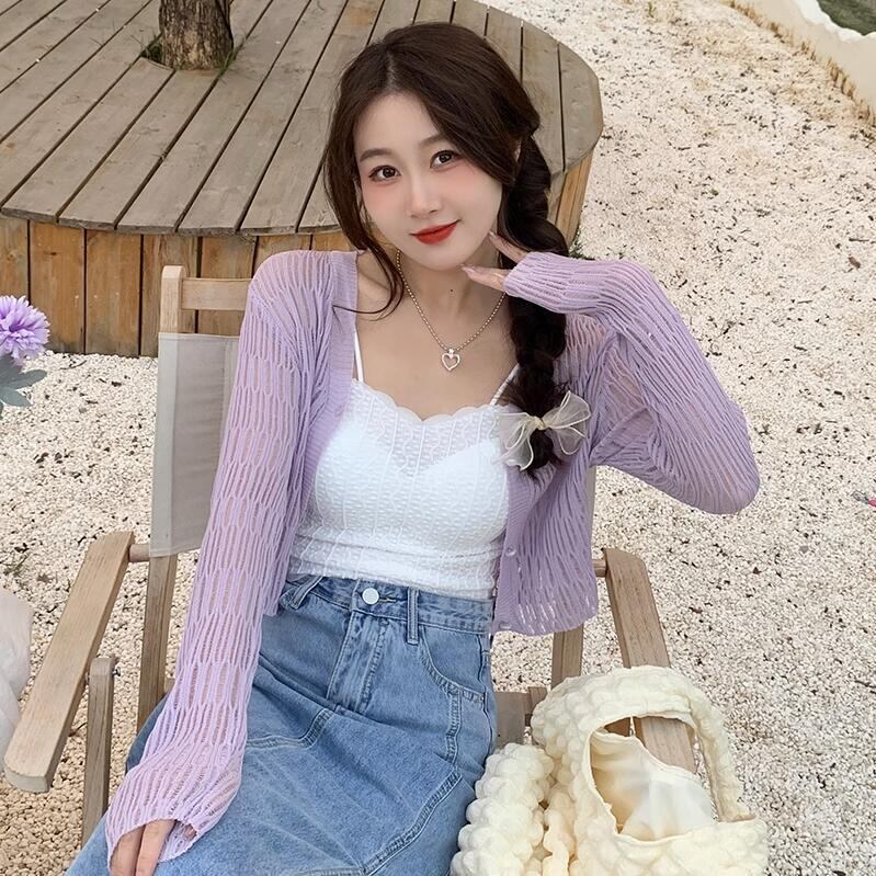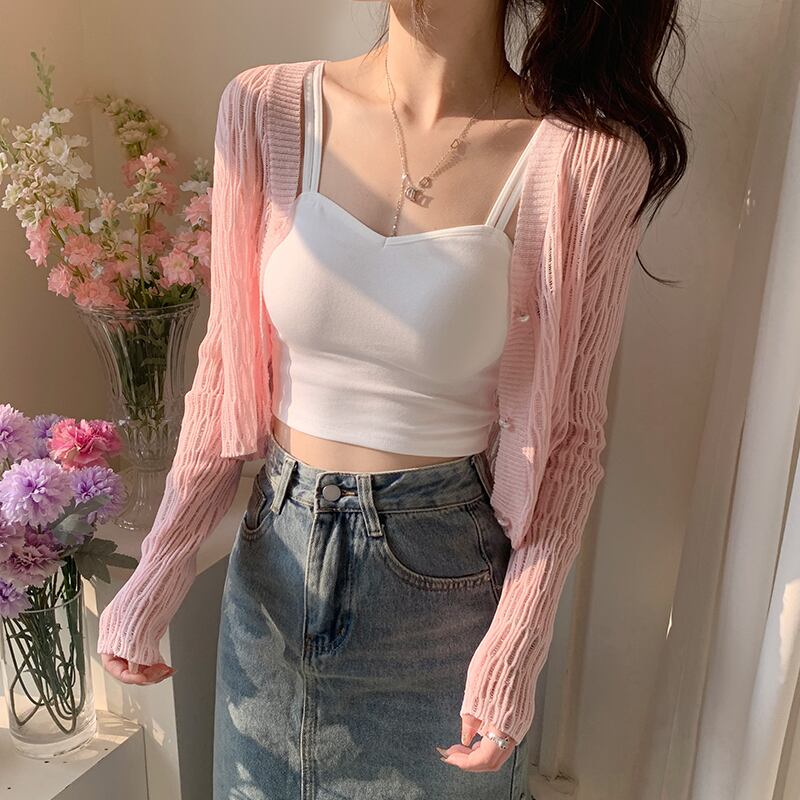 ピンクのアイスシルク日焼け止めカーディガン女性の夏のサスペンダー中空の薄いセクションニットブラウス短いセクションの小さなチョッキ ショート サマー 夏物 7460010674568781 | framboise21
