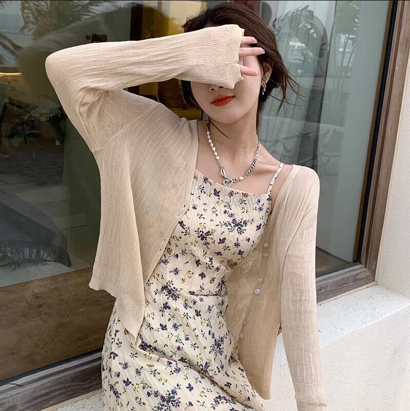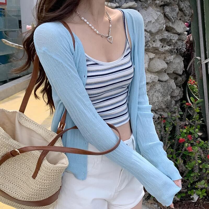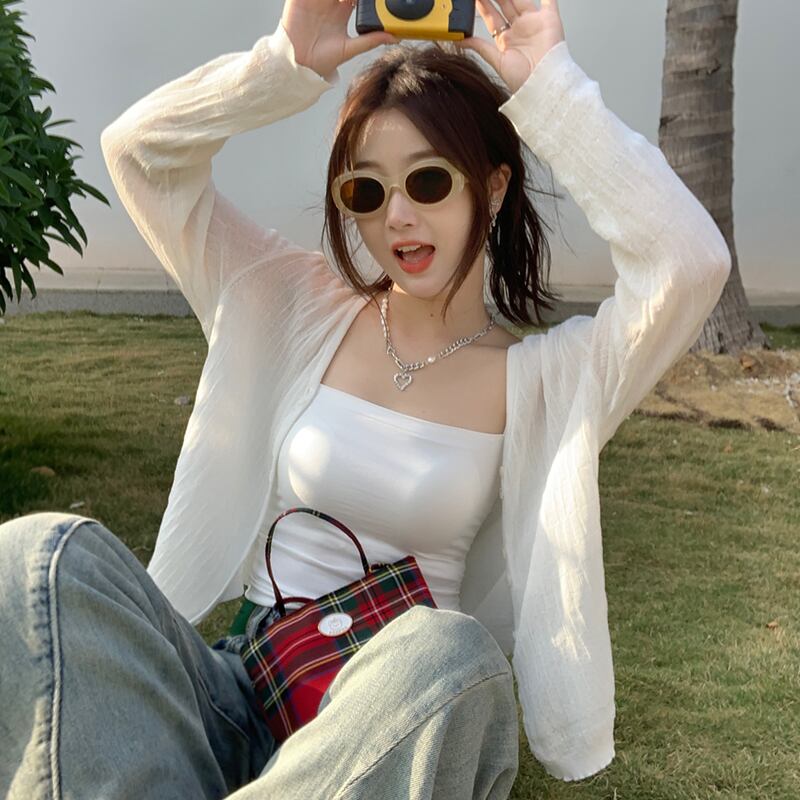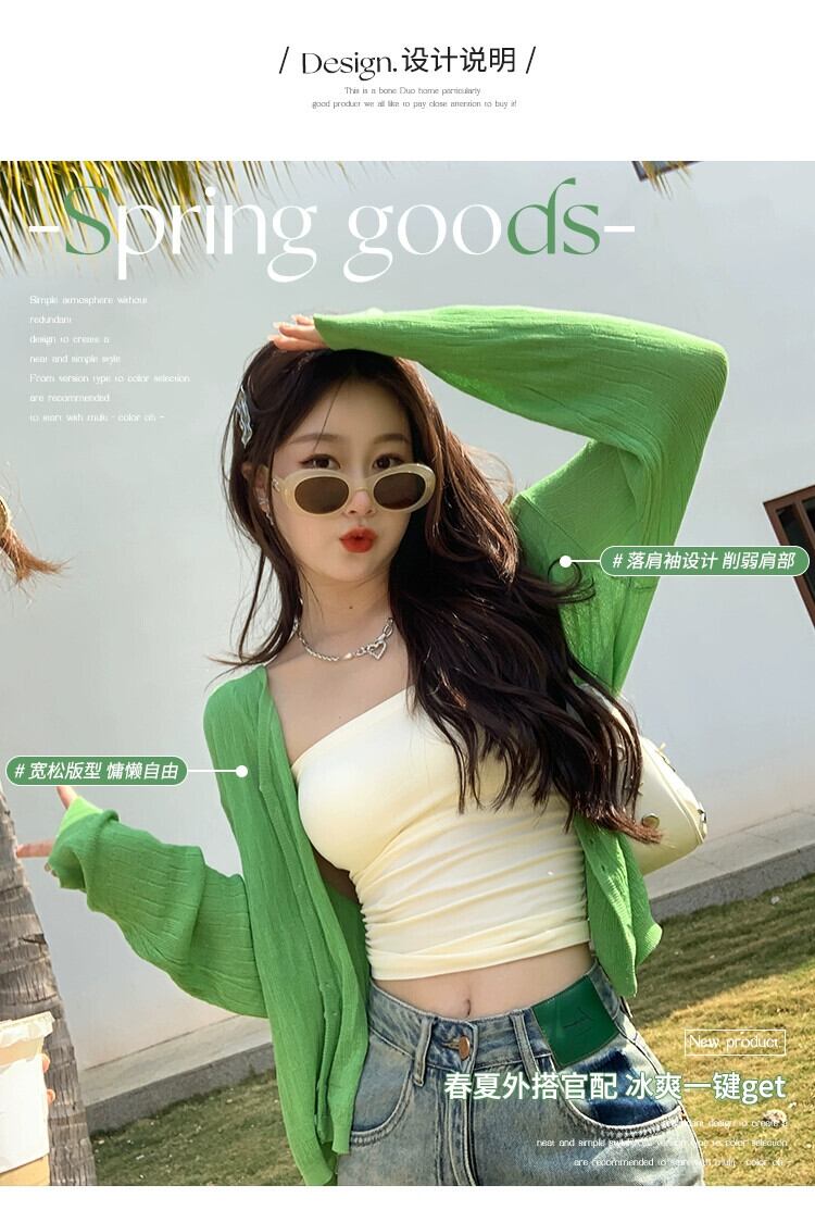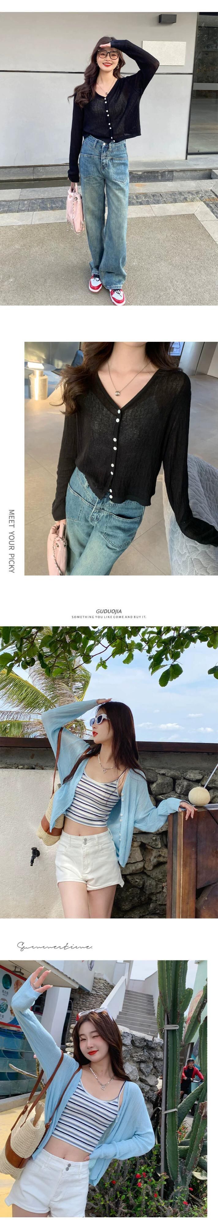 ホワイトアイスシルク日焼け止めカーディガン薄いセクション女性の夏のサスペンダーニットブラウスジャケット V ネックショート空調シャツ サマー 夏物 Vネック 7460061642261834 | framboise21