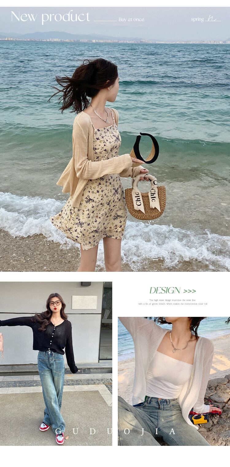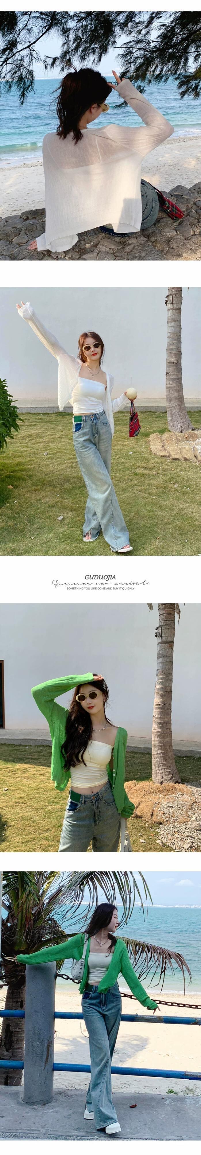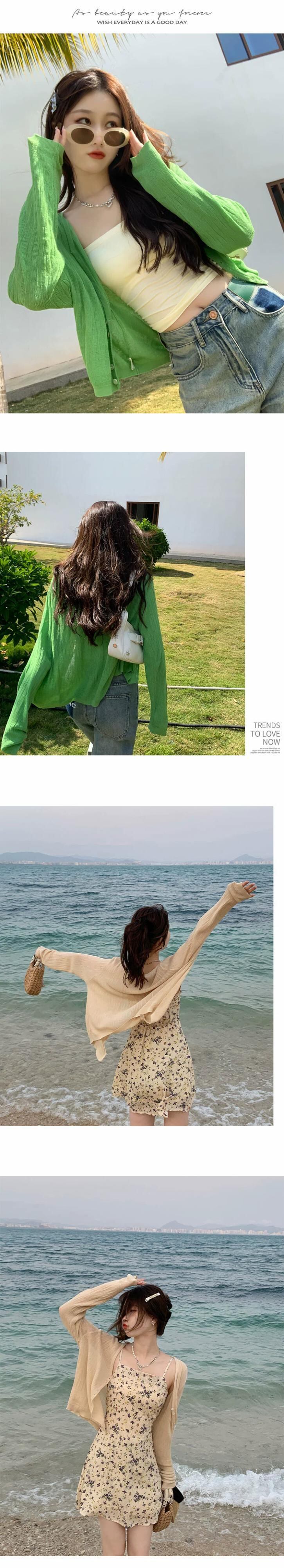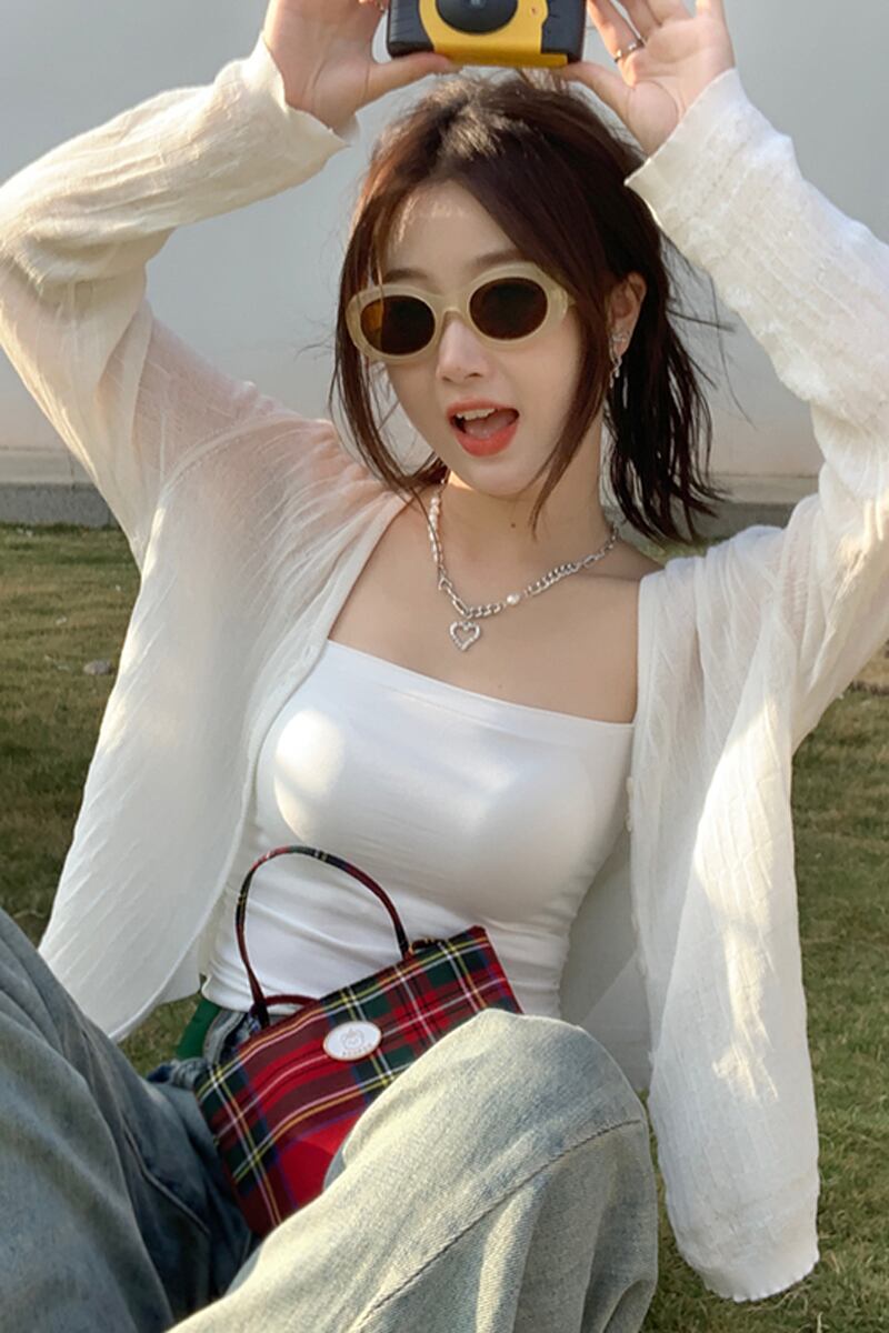 ホワイトアイスシルク日焼け止めカーディガン薄いセクション女性の夏のサスペンダーニットブラウスジャケット V ネックショート空調シャツ サマー 夏物 Vネック 7460061642261834 | framboise21
