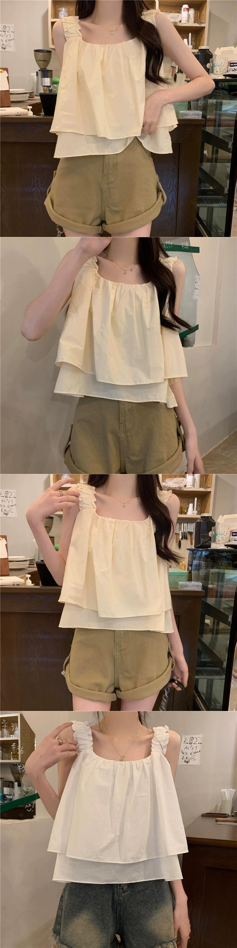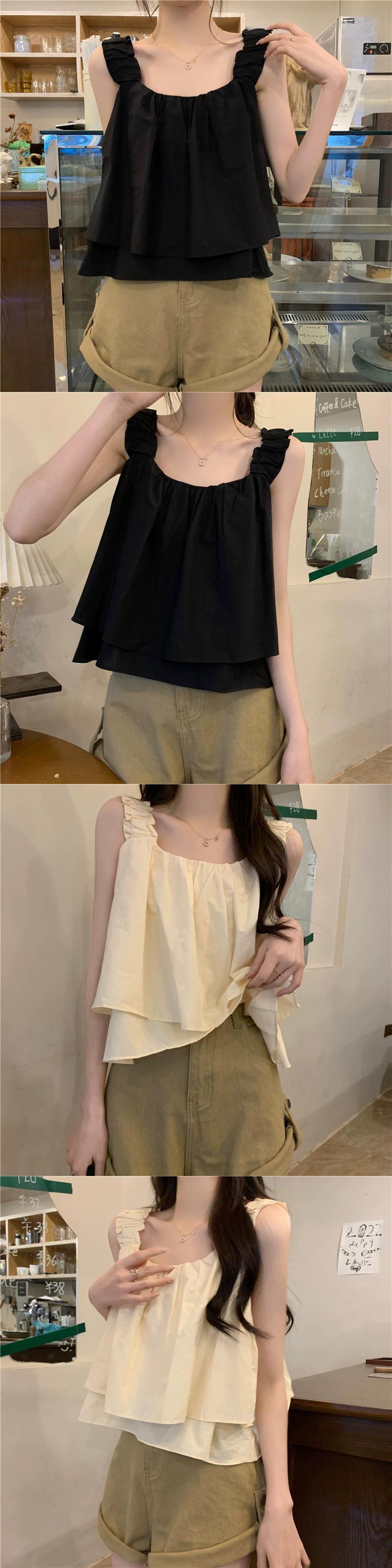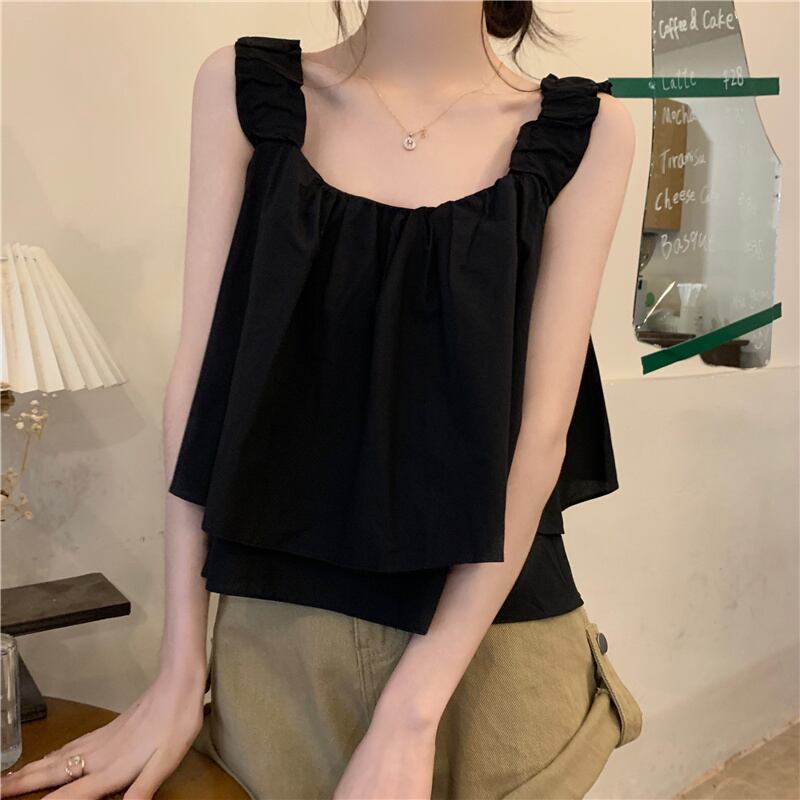 スクエアカラー ノースリーブ ベスト レディース 夏 アウター フレンチ レトロ デザイン シック プリーツ ショート ふわふわ キャミソール トップス サマー 夏物 スクウェア 7460075577090640 | framboise21