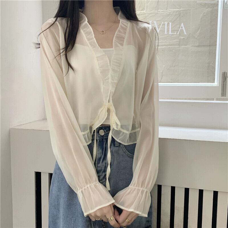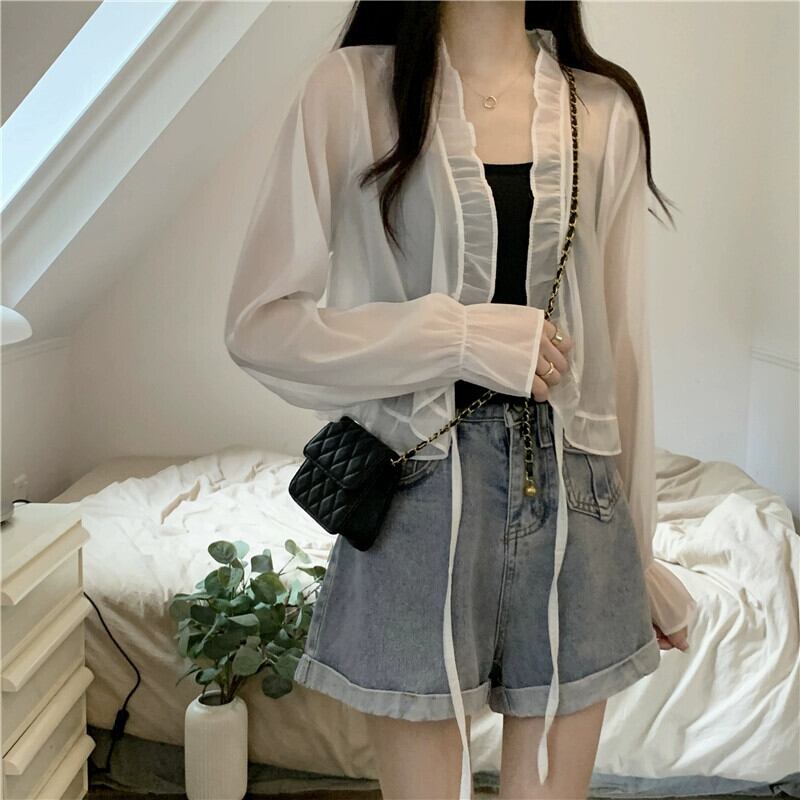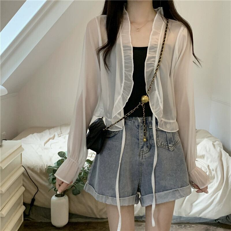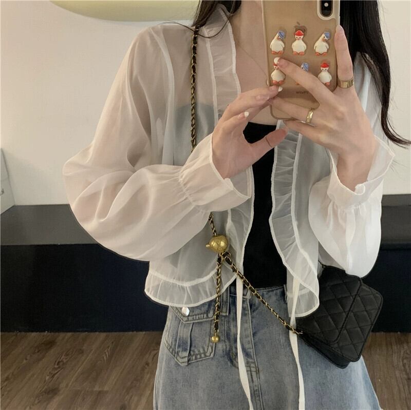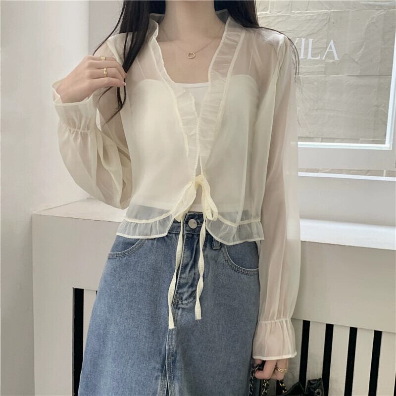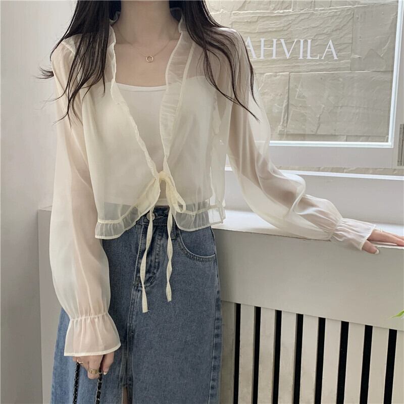 シフォン日焼け止めカーディガン薄いセクション女性の夏のファッション西洋スタイルのショートショールブラウスフリルメッシュトップ サマー 夏物 7460095988459336 | framboise21
