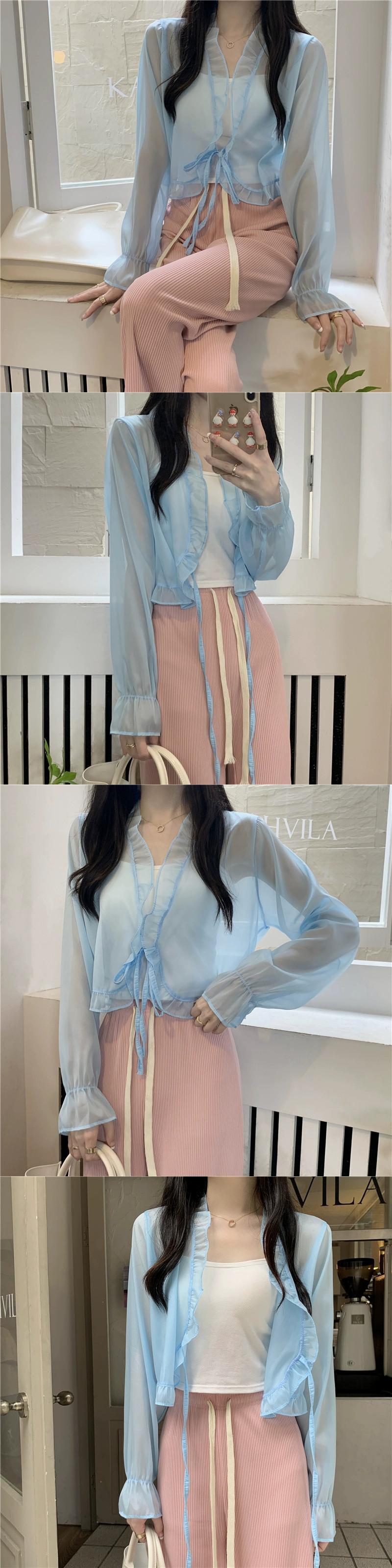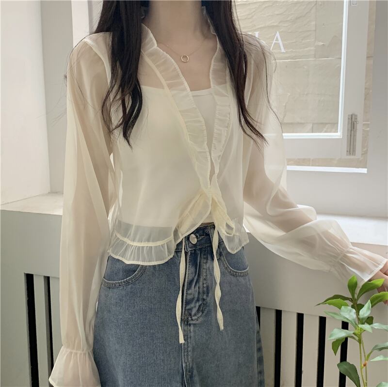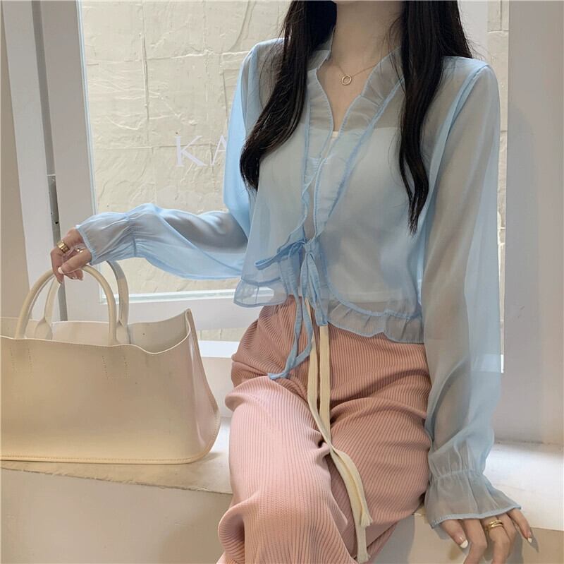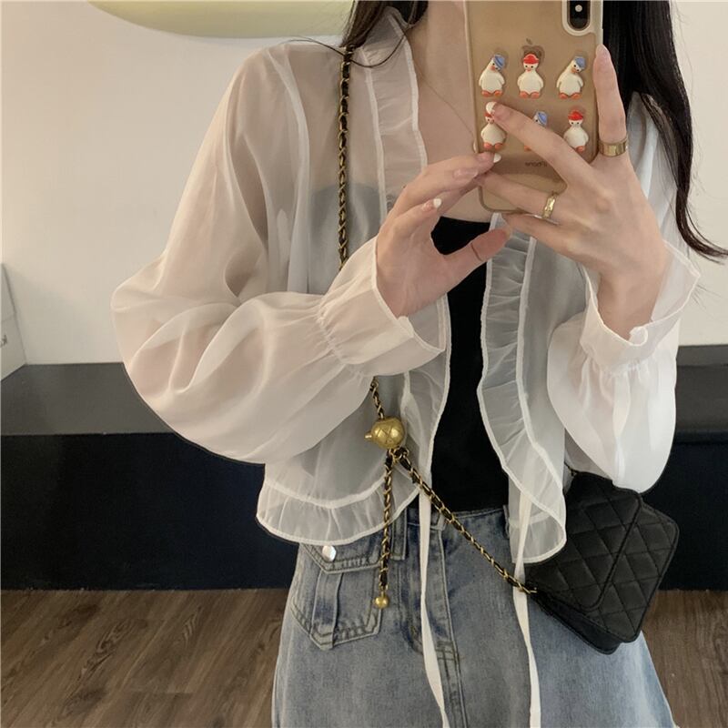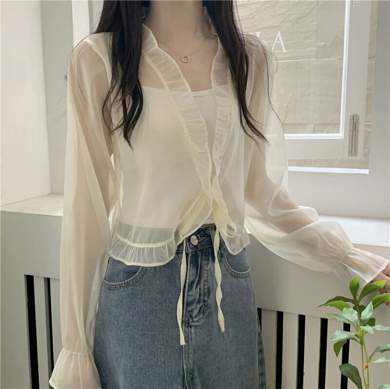 シフォン日焼け止めカーディガン薄いセクション女性の夏のファッション西洋スタイルのショートショールブラウスフリルメッシュトップ サマー 夏物 7460095988459336 | framboise21