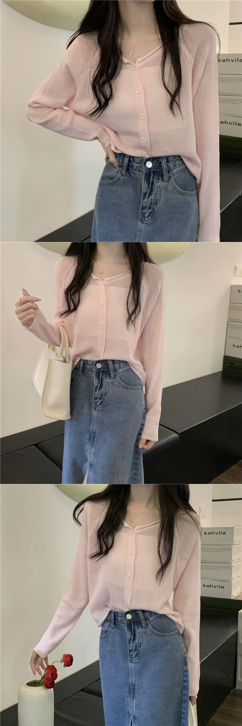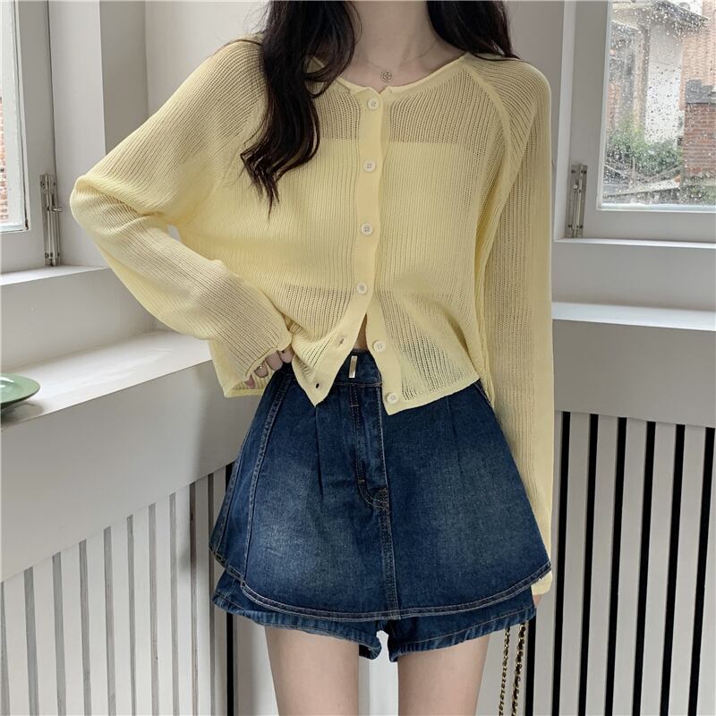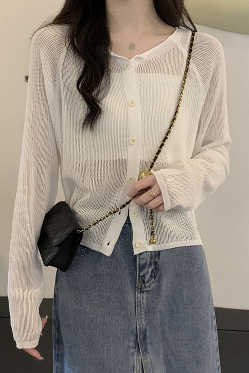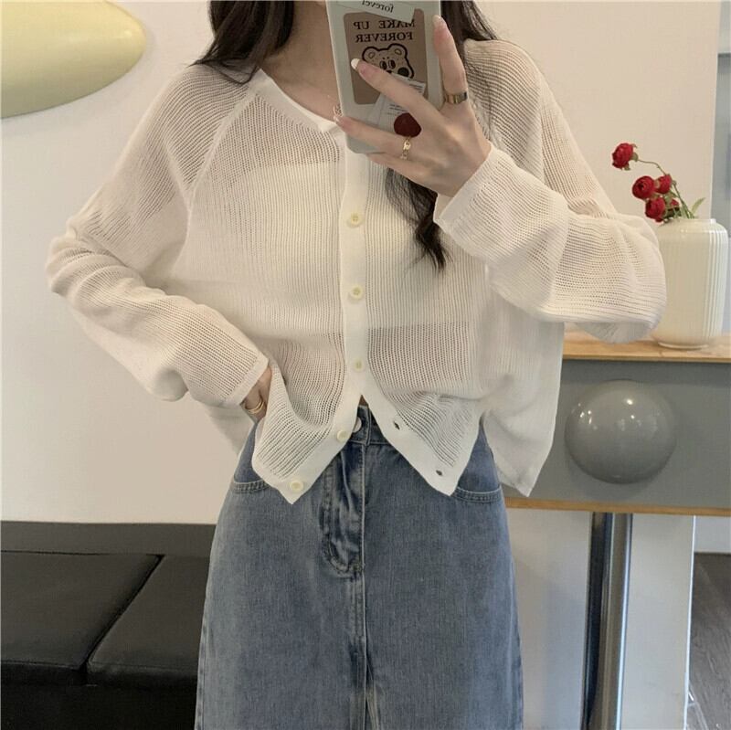 白い日焼け止めアイスシルクカーディガン薄いセクション女性の夏のサスペンダー長袖ニットエアコンシャツ中空ショートジャケット ロング ホワイト サマー 夏物 7460076891580512 | framboise21