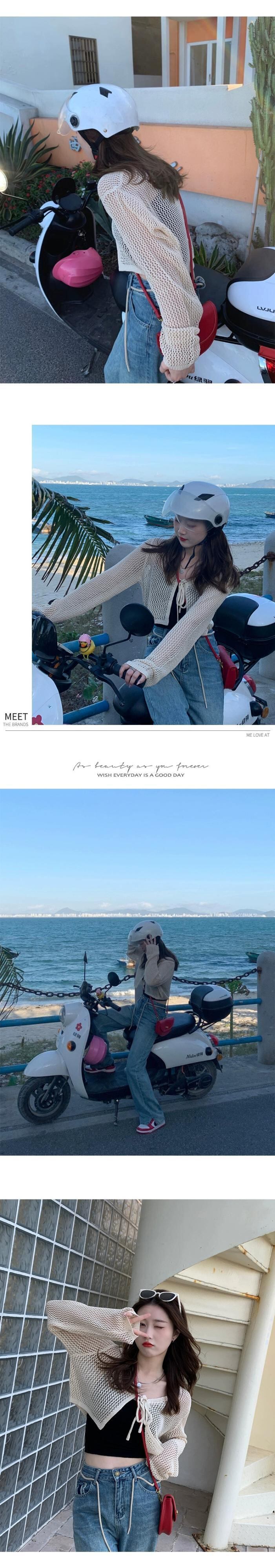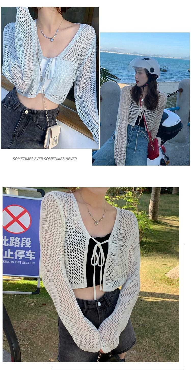 中空日焼け防止カーディガン女性の夏のサスペンダー薄いニットショールブラウスショートネクタイ V ネック小さなコート サマー 夏物 Vネック 7460089039283658 | framboise21