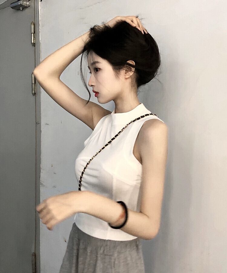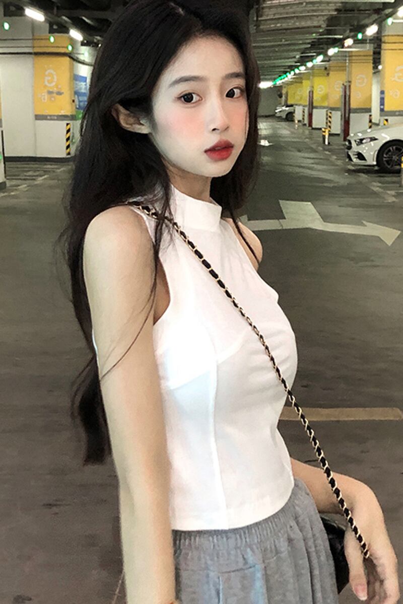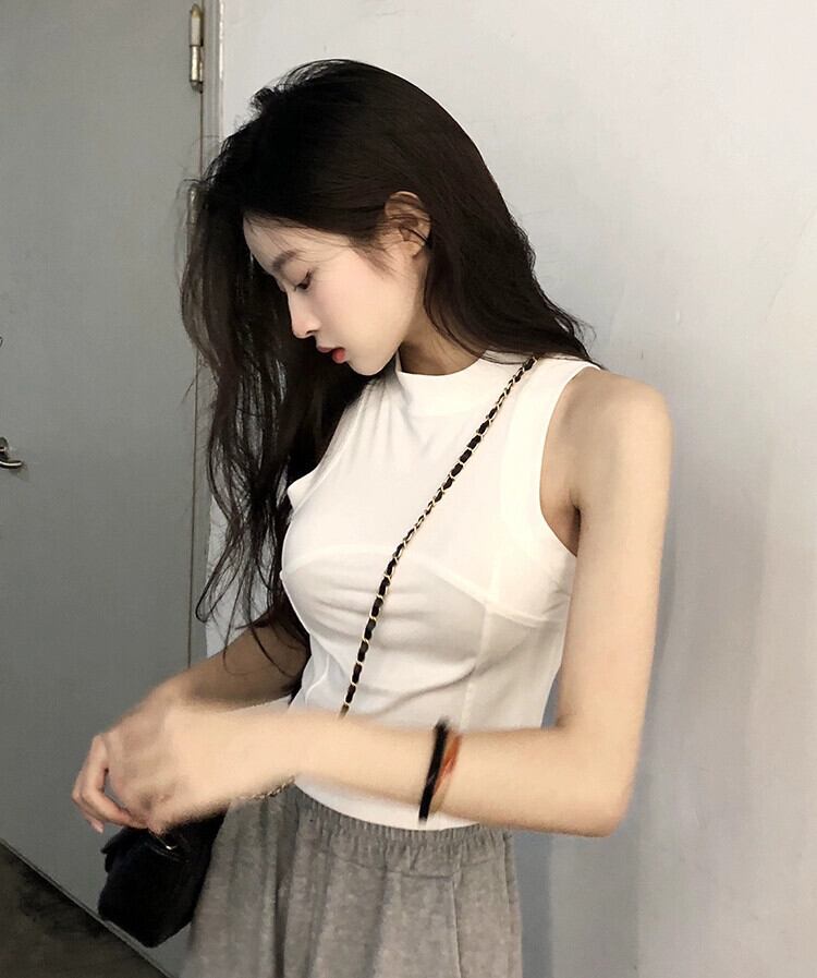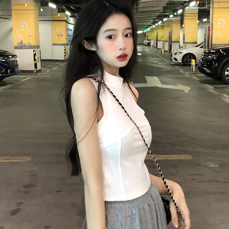 ホワイトハーフハイカラーキャミソールレディース夏のファッションスリムアウターインナーショートボトムノースリーブスポーツトップス サマー 夏物 7460076245702524 | framboise21