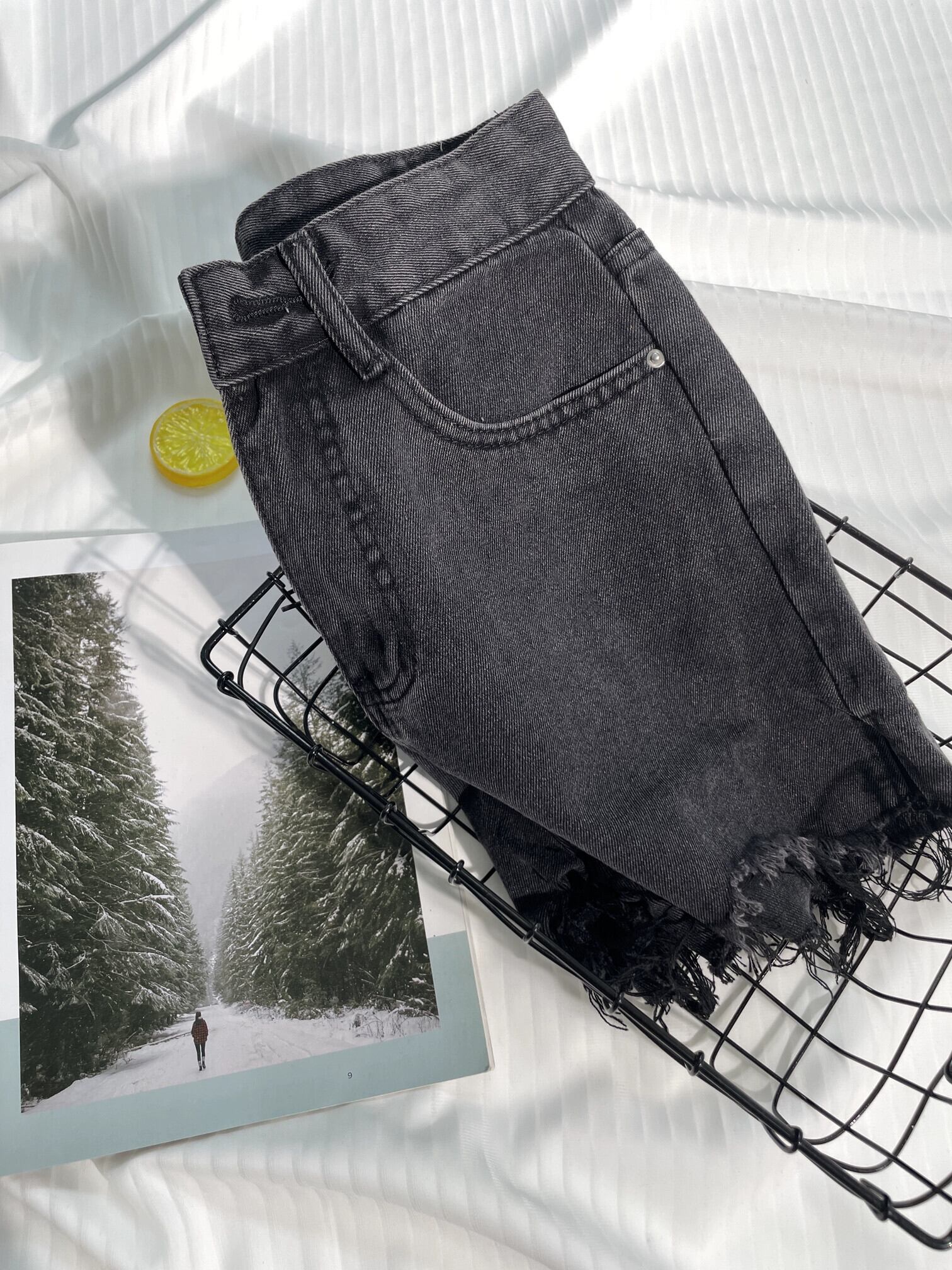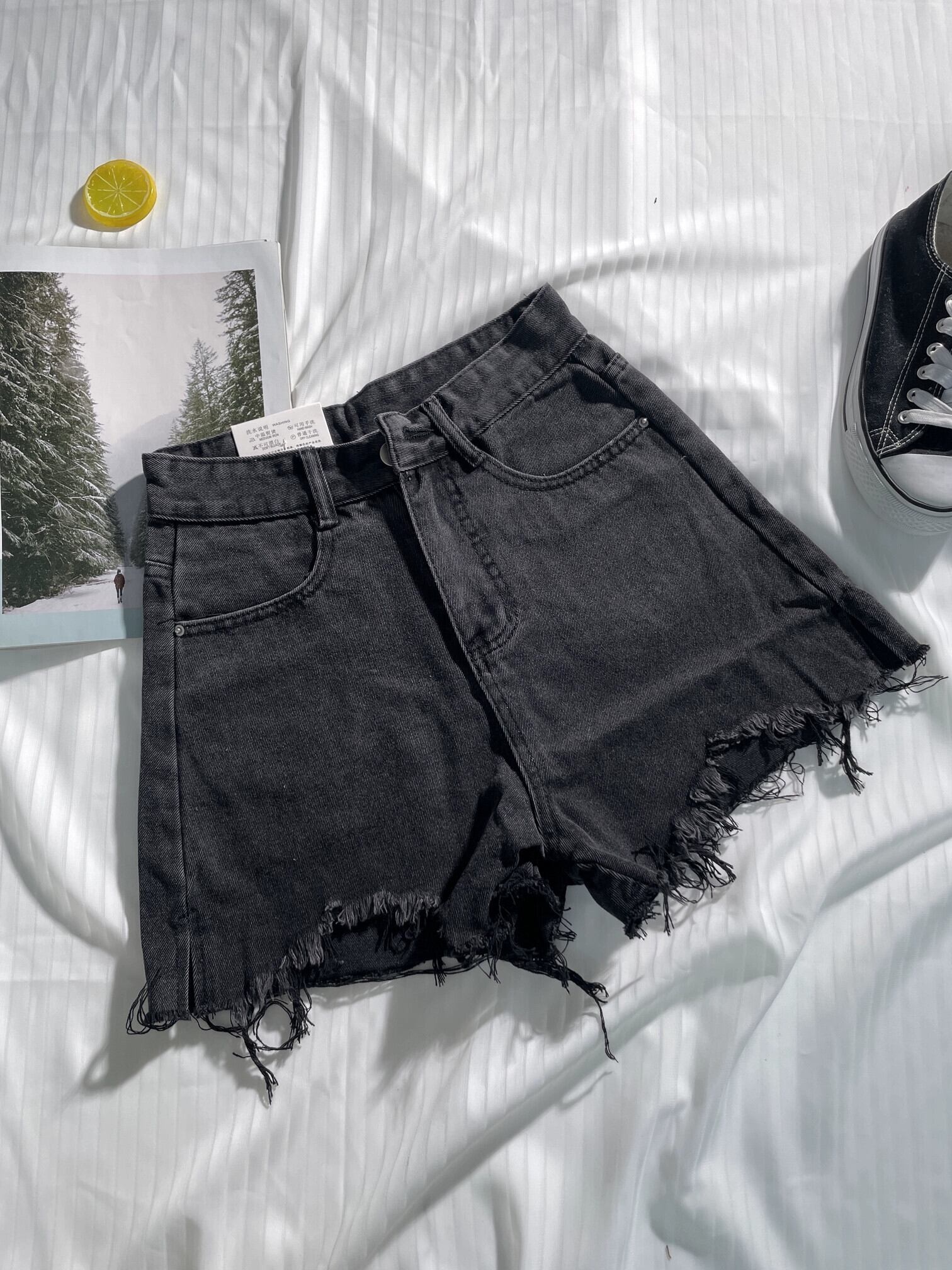 黒のハイウエスト A ライン スモール ショーツ レディース 夏 ルーズで薄い アウター 破れたジーンズ 薄いセクション ワイドレッグ パンツ トレンディ ブラック サマー 夏物 ブルマー Aライン 7460095484078398 | framboise21