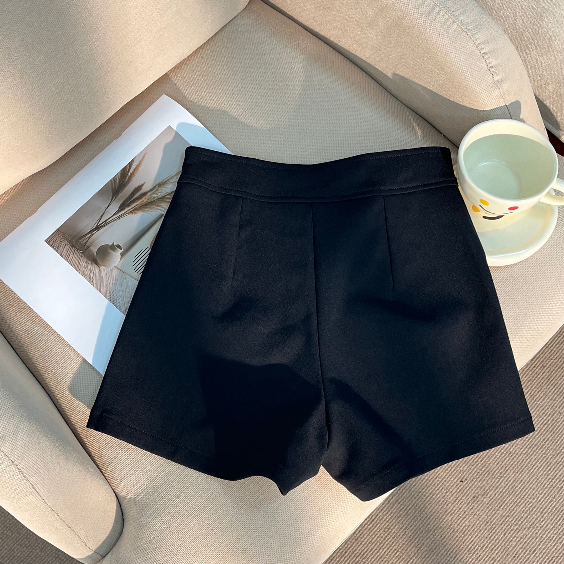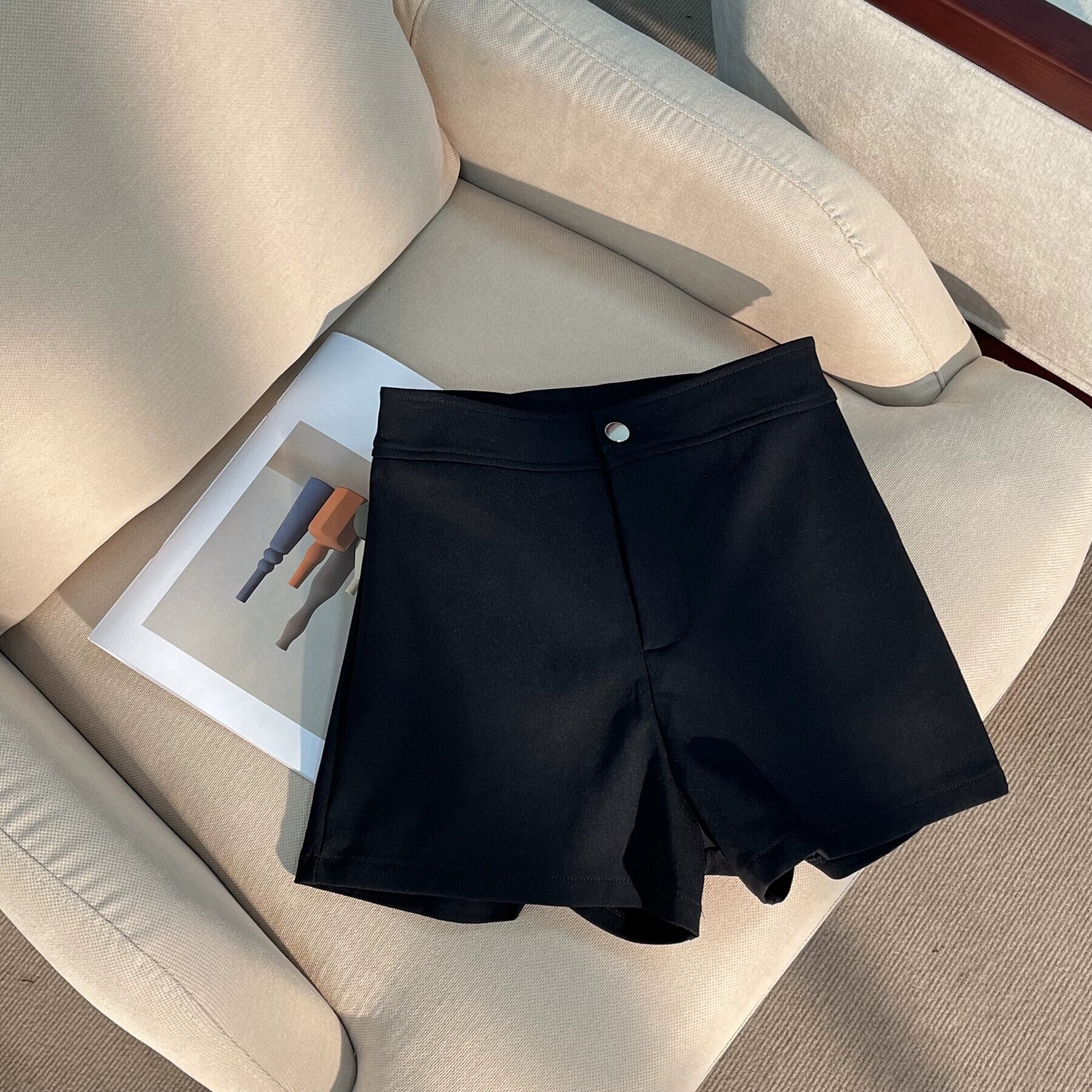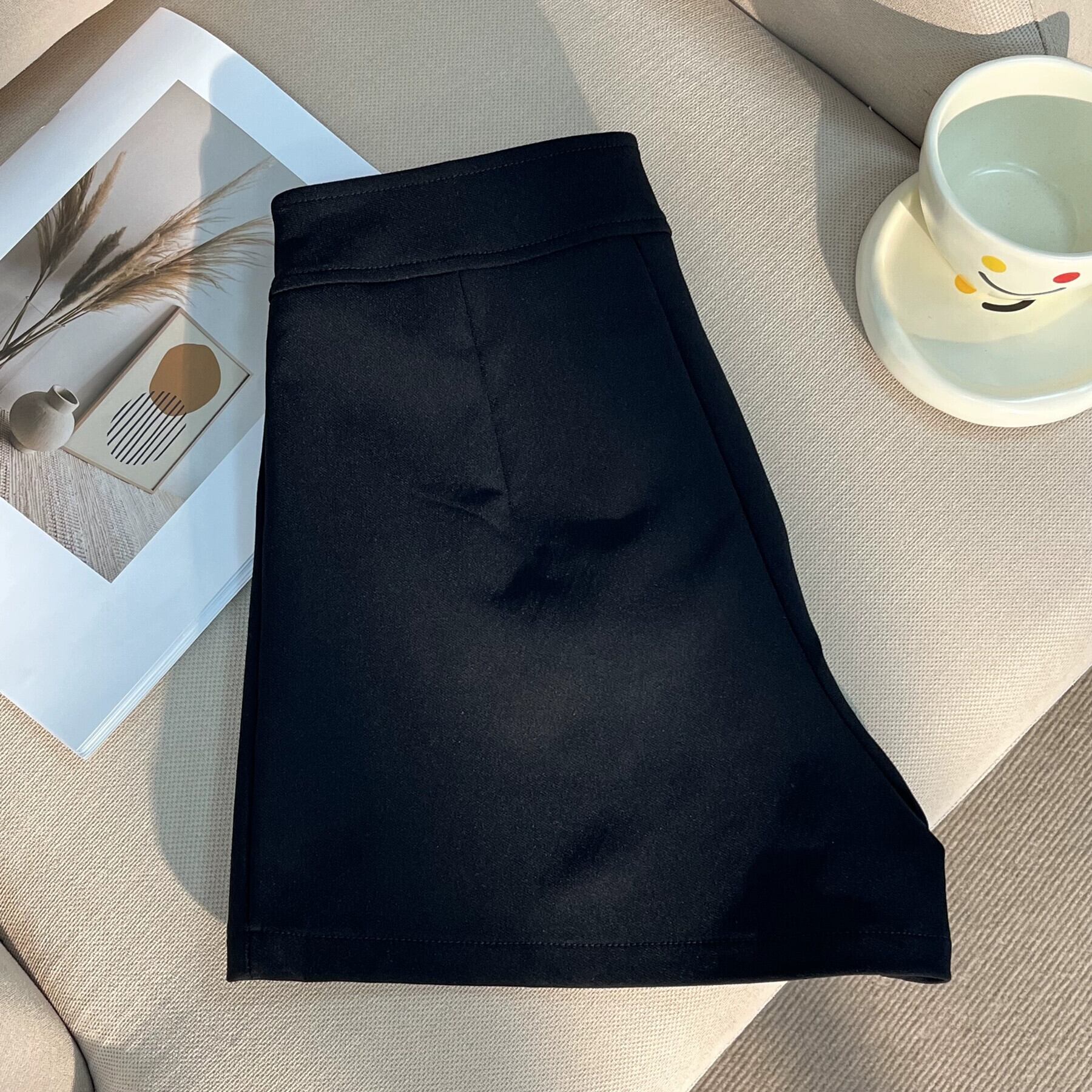 黒のカジュアルスーツショーツレディース夏スリム弾性ハイウエストパンツ A ラインワイドレッグ細いパンツトレンディな ブラック エラスティック 伸縮 サマー 夏物 ブルマー Aライン 7460031200772392 | framboise21