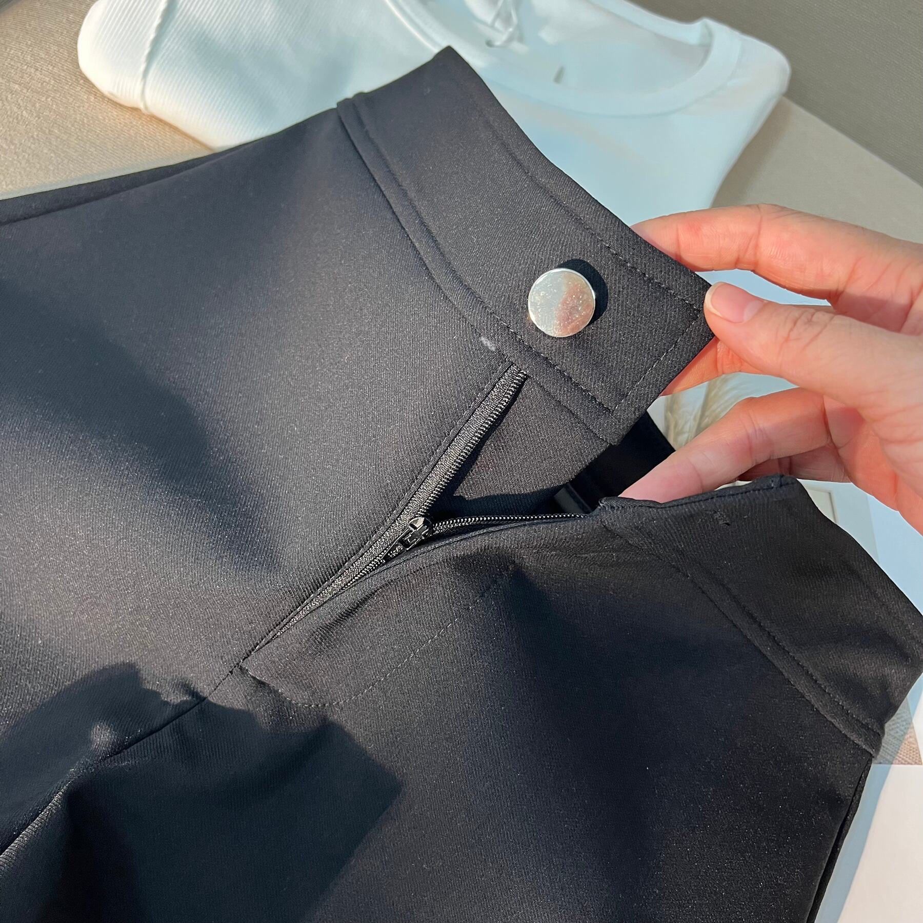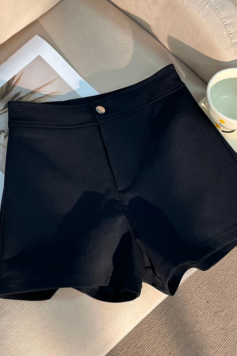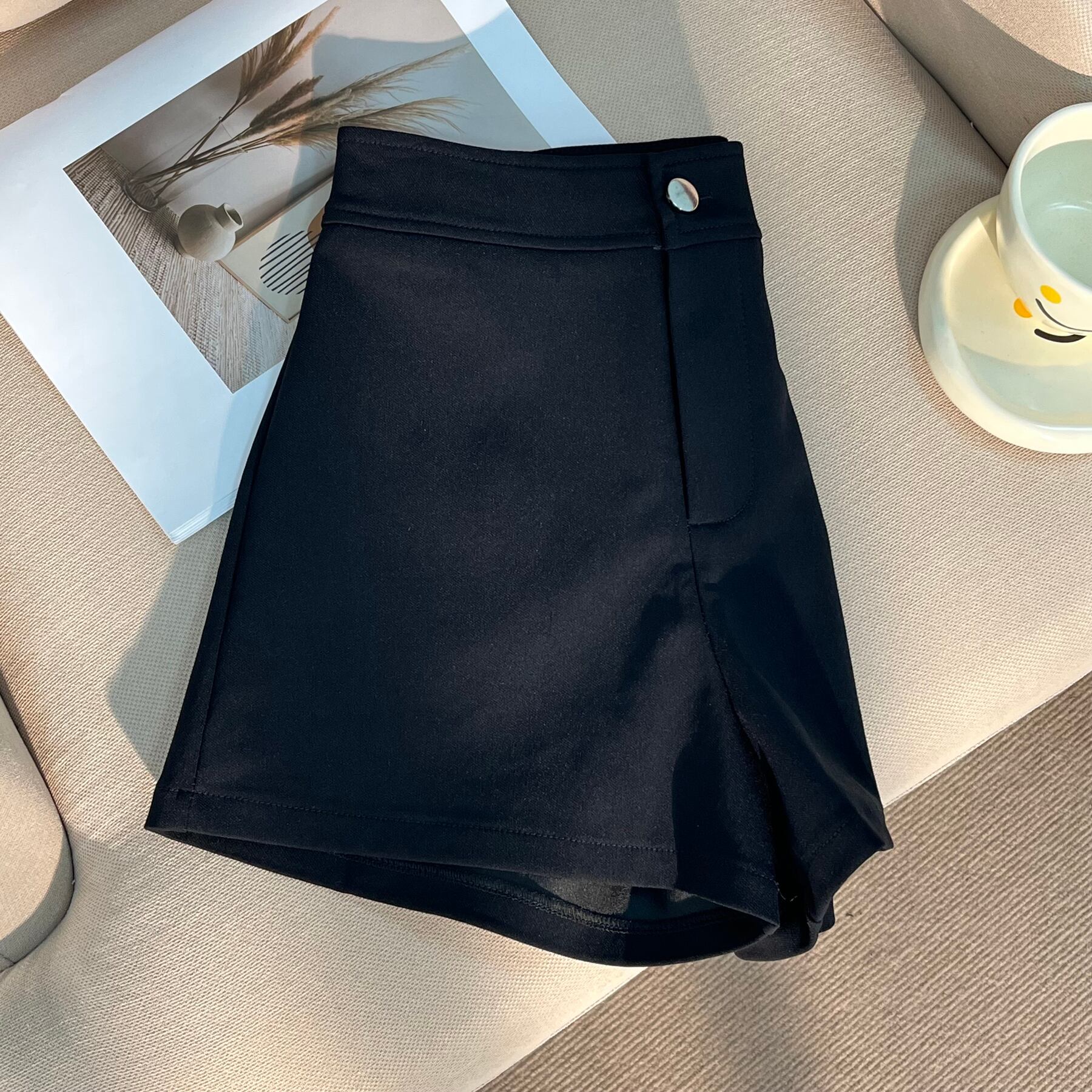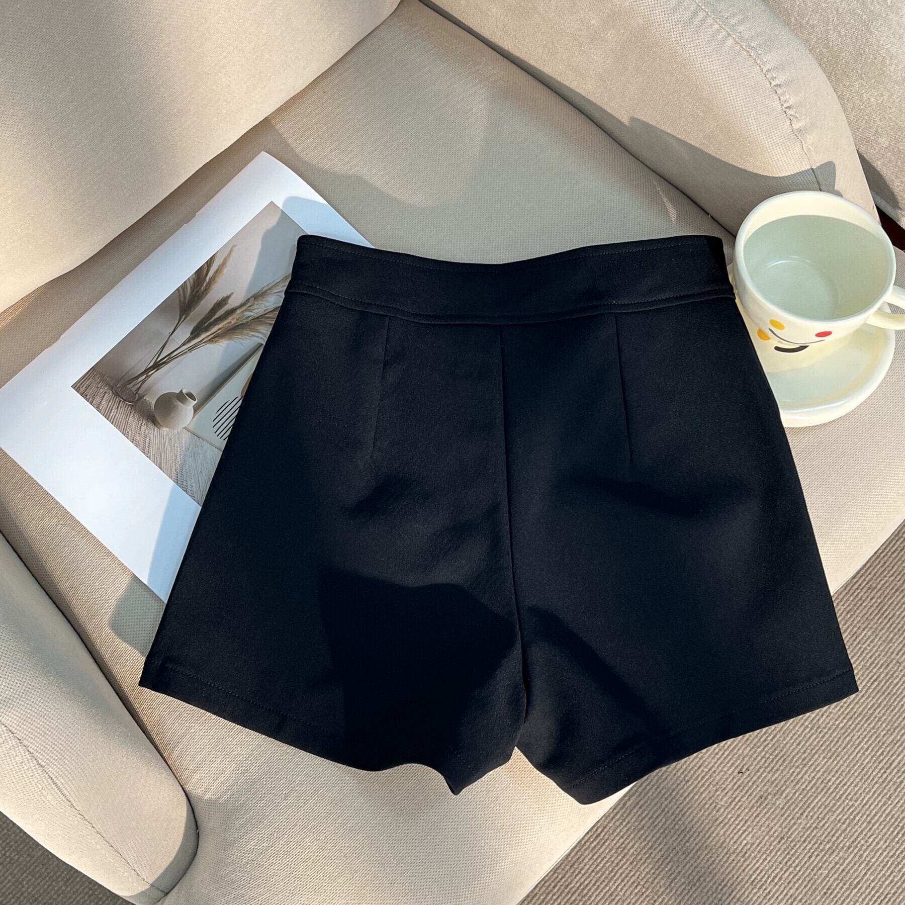 黒のカジュアルスーツショーツレディース夏スリム弾性ハイウエストパンツ A ラインワイドレッグ細いパンツトレンディな ブラック エラスティック 伸縮 サマー 夏物 ブルマー Aライン 7460031200772392 | framboise21