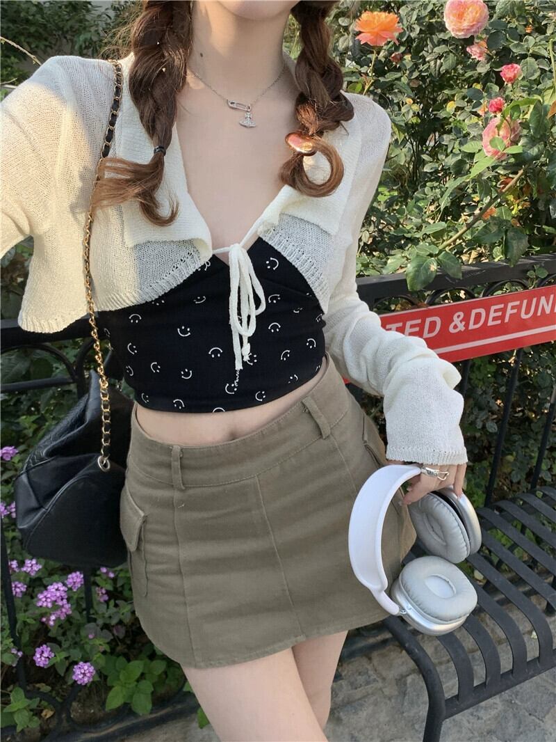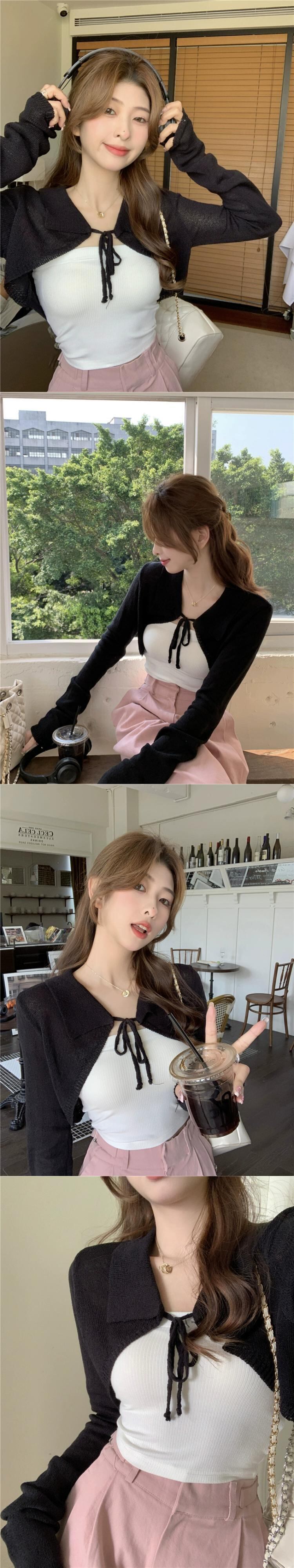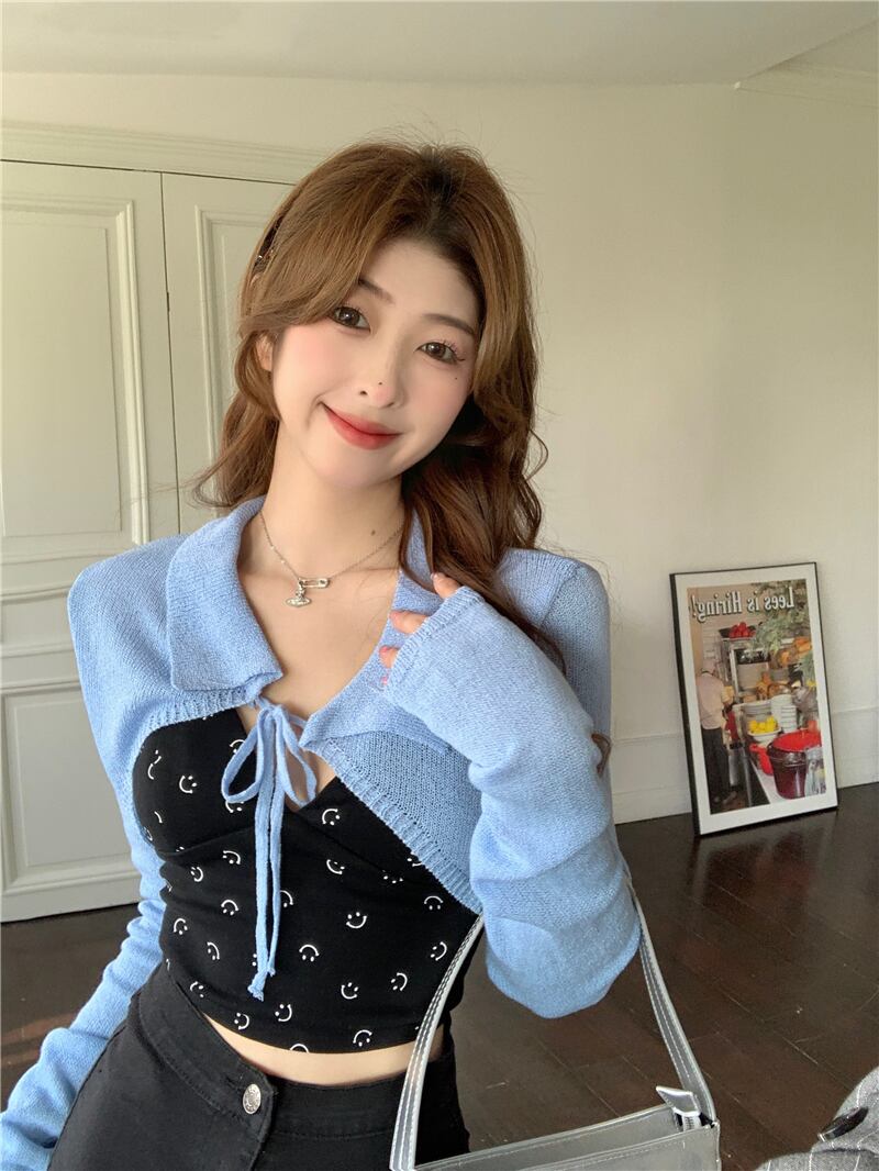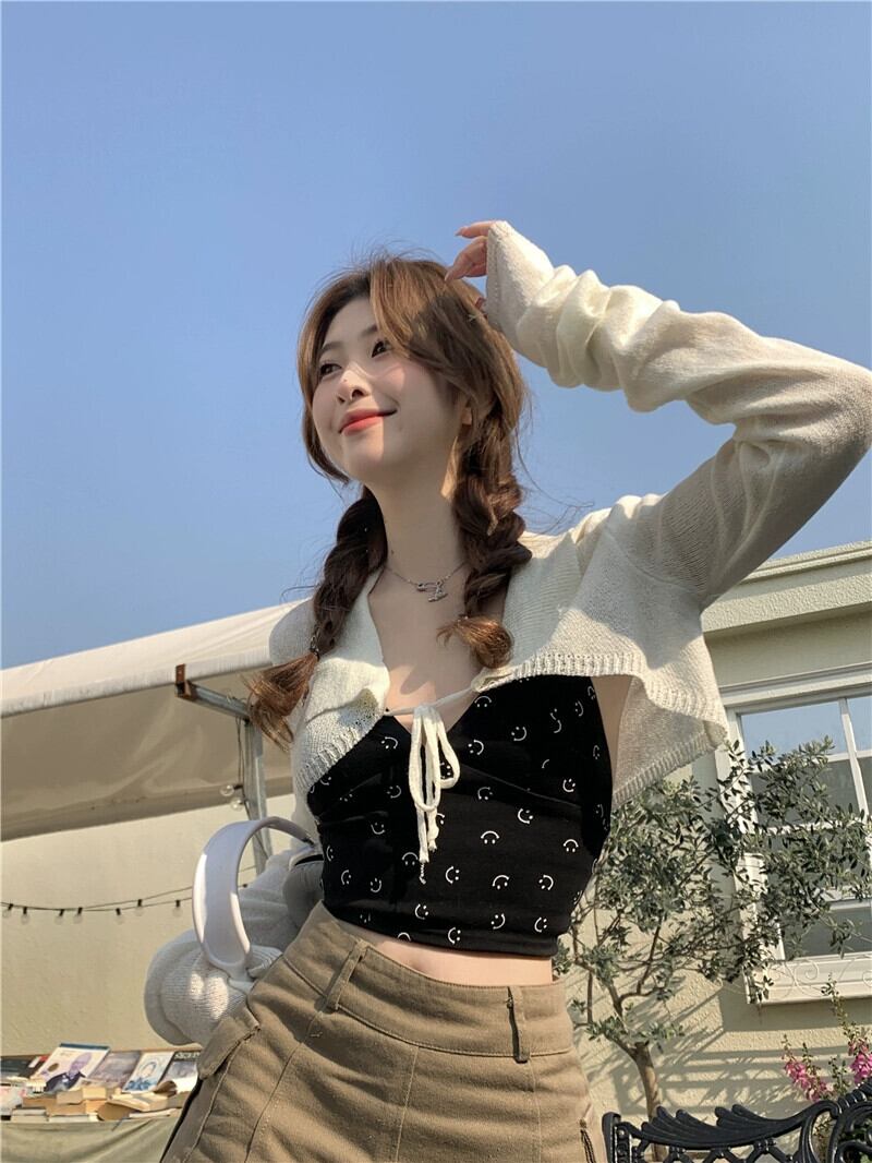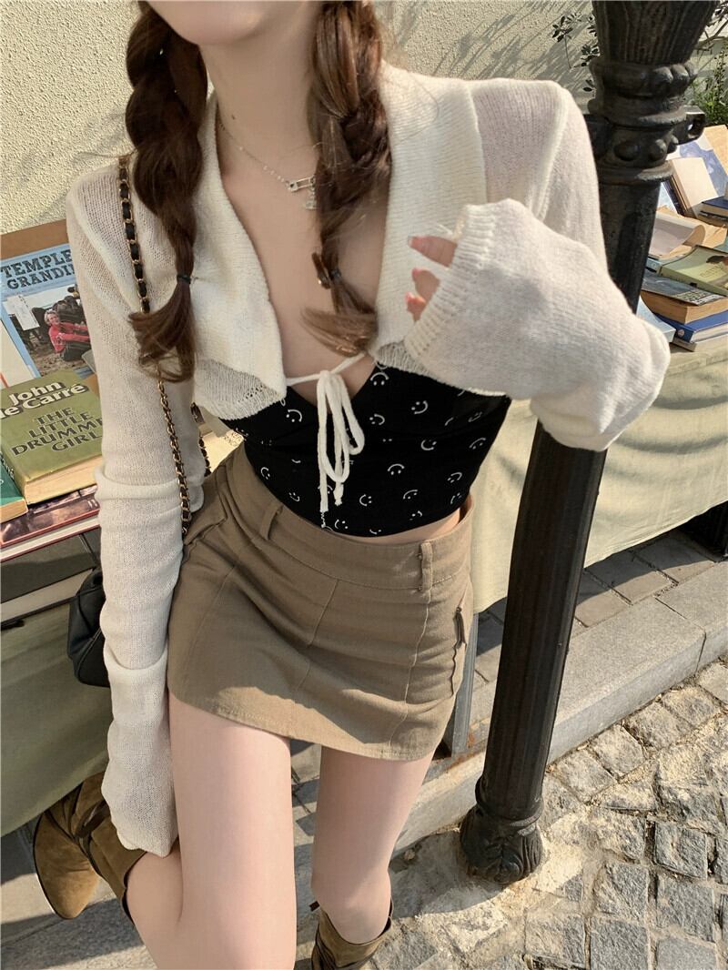 白い日焼け止め小さなカーディガン女性の夏、サスペンダーと薄いニット ショール ブラウス ショート ポロカラー トップ ホワイト サマー 夏物 7460041059312366 | framboise21