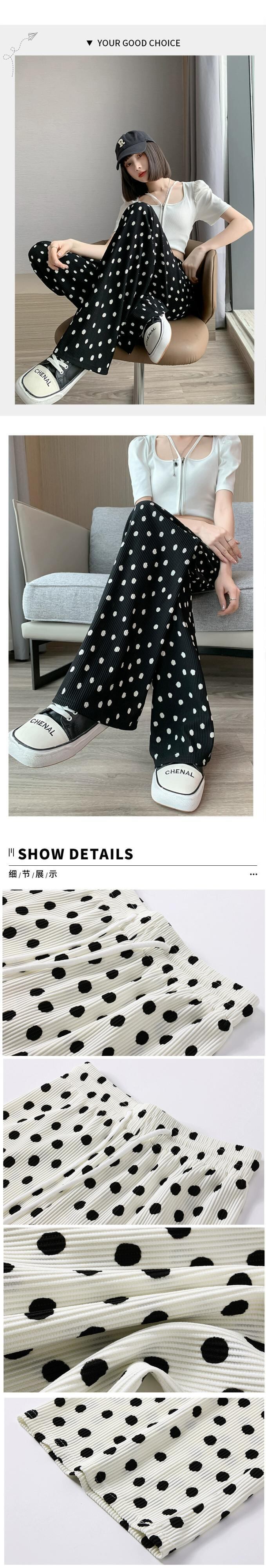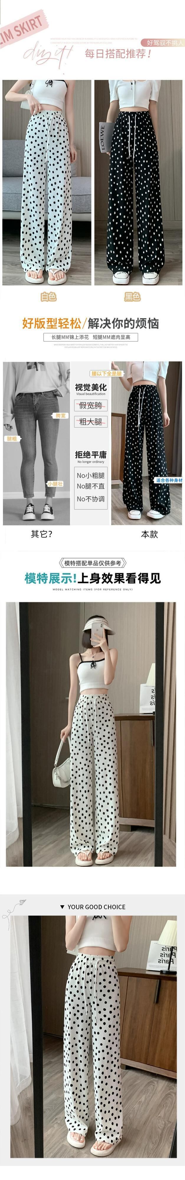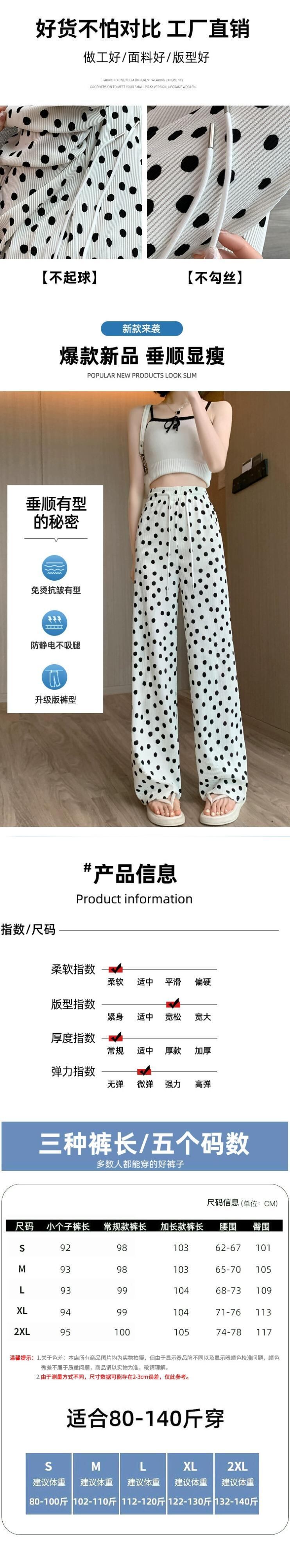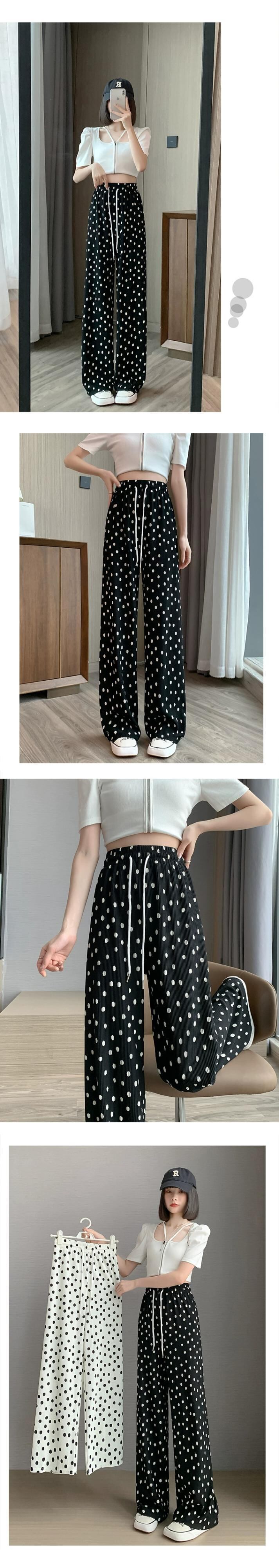 薄セクション水玉アイスシルクワイドレッグパンツ女性の夏のしわテクスチャパンツハイウエストドレープカジュアルフロアモップクールパンツ ハイウェスト サマー 夏物 7460087921195483 | framboise21