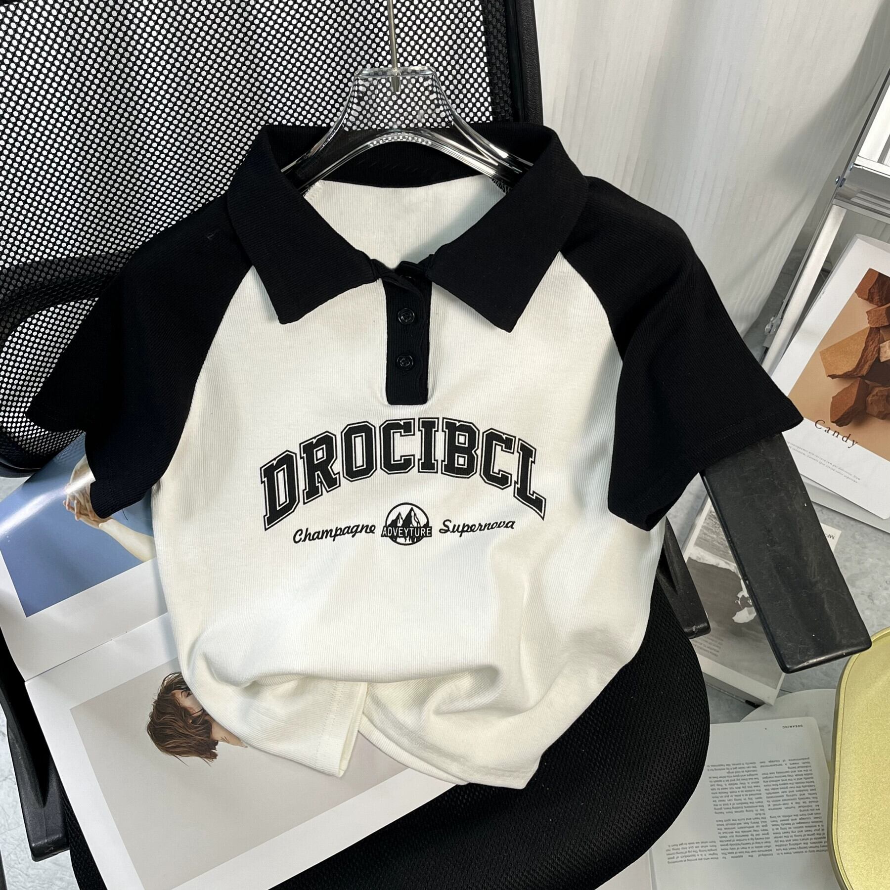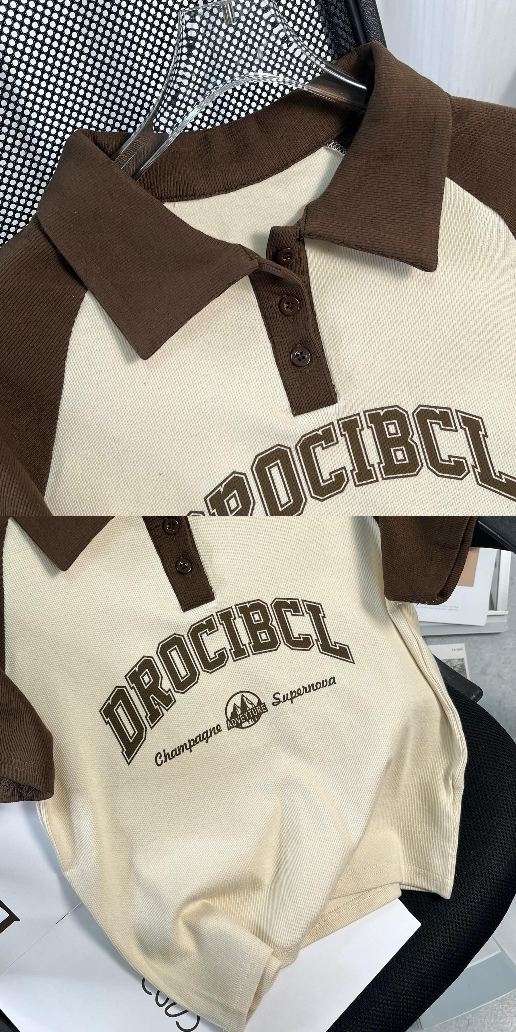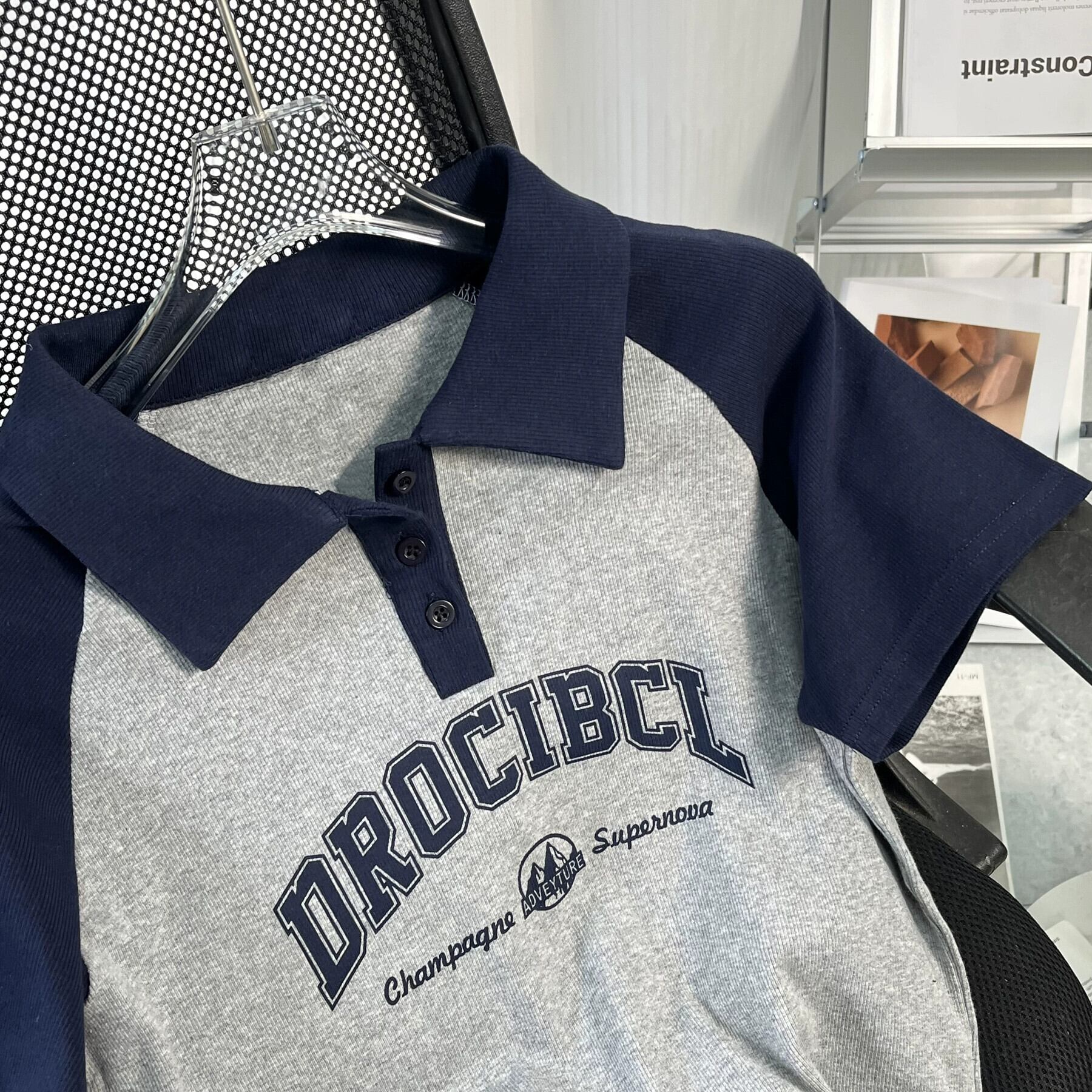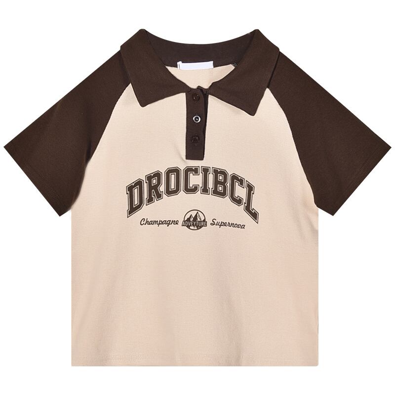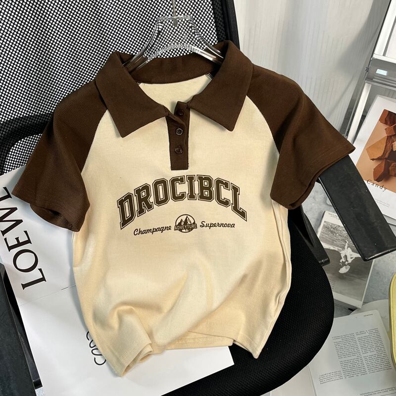 アメリカンスタイルフロントショルダーピュアコットン半袖Tシャツレディース夏レトロデザイン自己修養の感覚短い段落コントラストカラーポロカラートップイン ショート サマー 夏物 7460066609156839 | framboise21