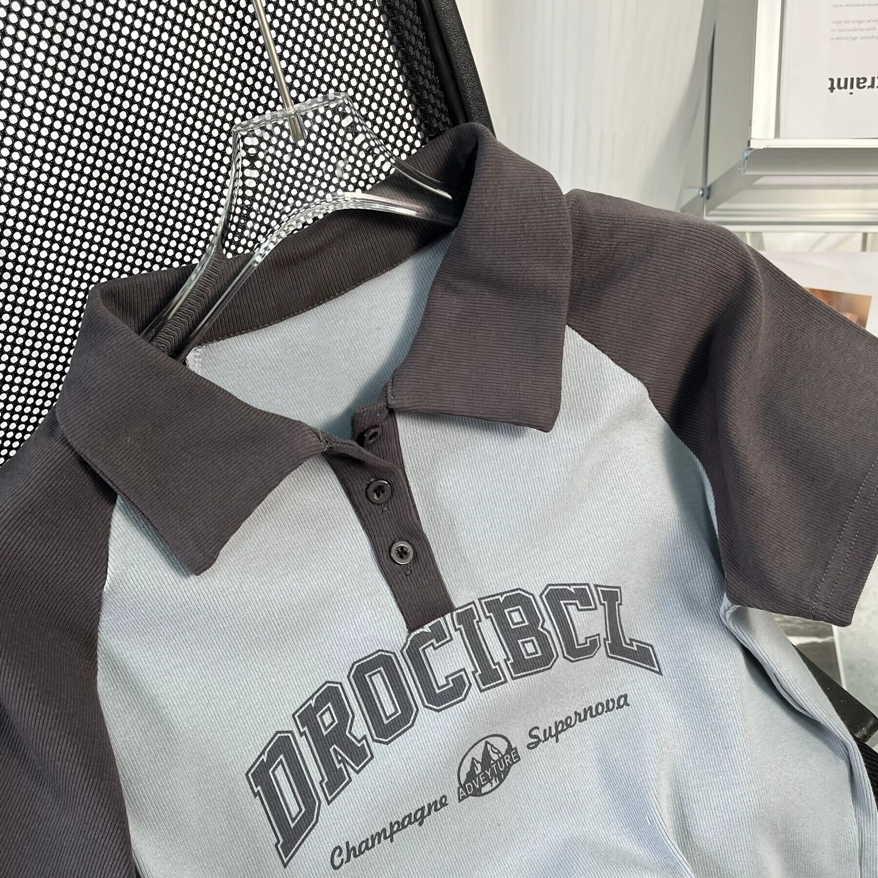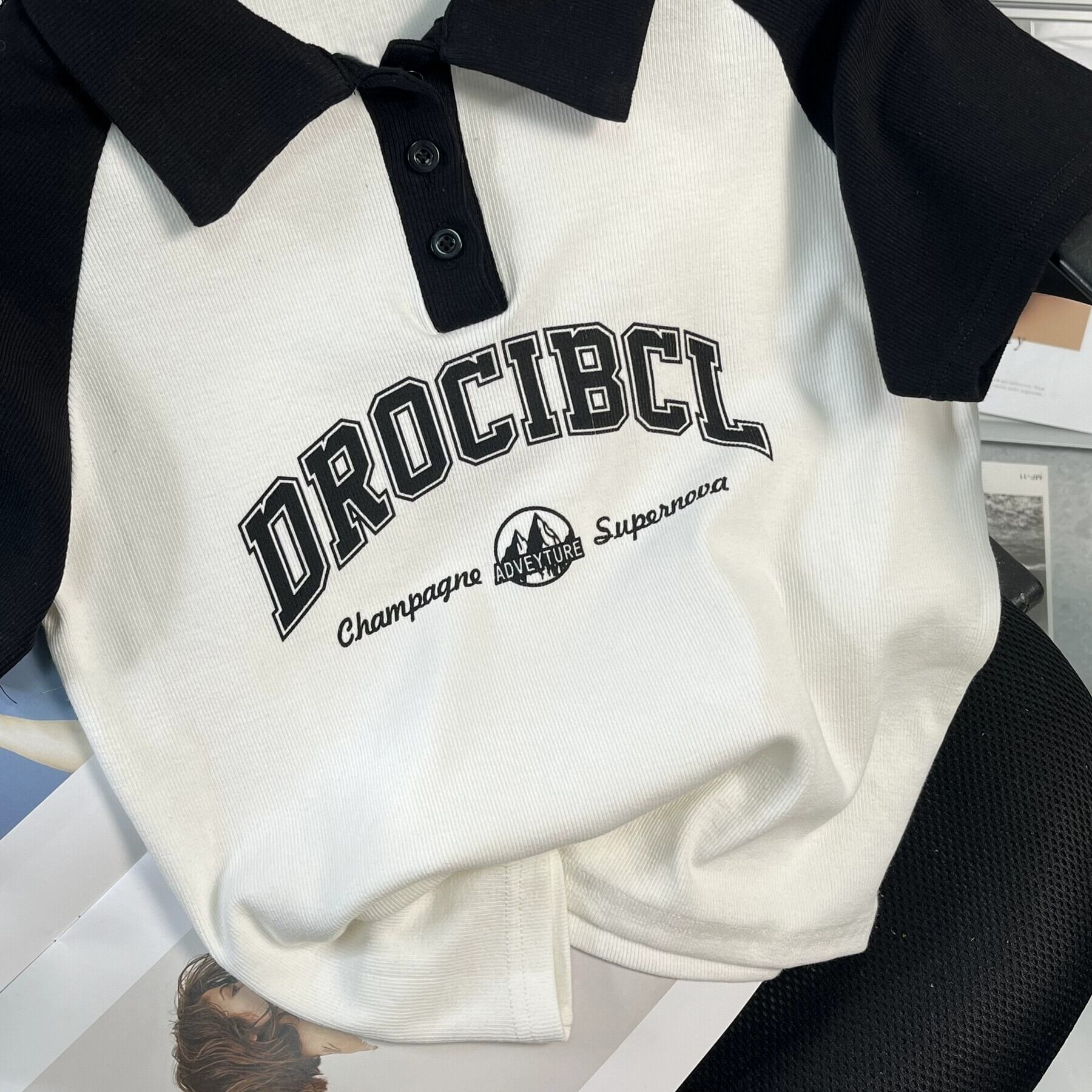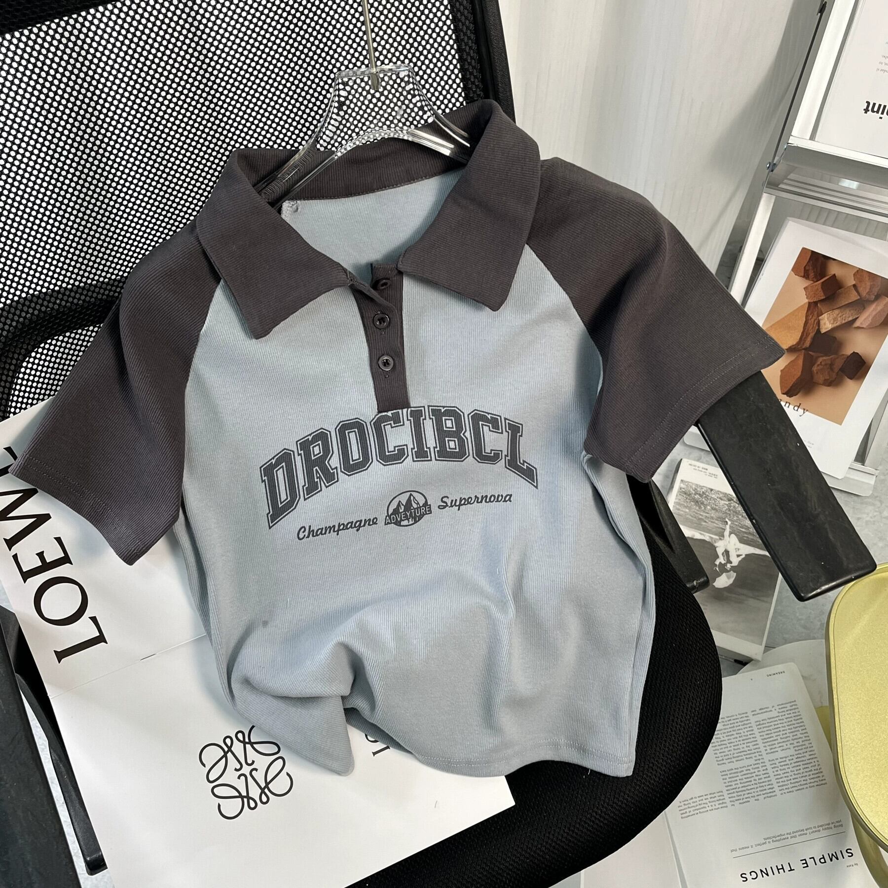 アメリカンスタイルフロントショルダーピュアコットン半袖Tシャツレディース夏レトロデザイン自己修養の感覚短い段落コントラストカラーポロカラートップイン ショート サマー 夏物 7460066609156839 | framboise21