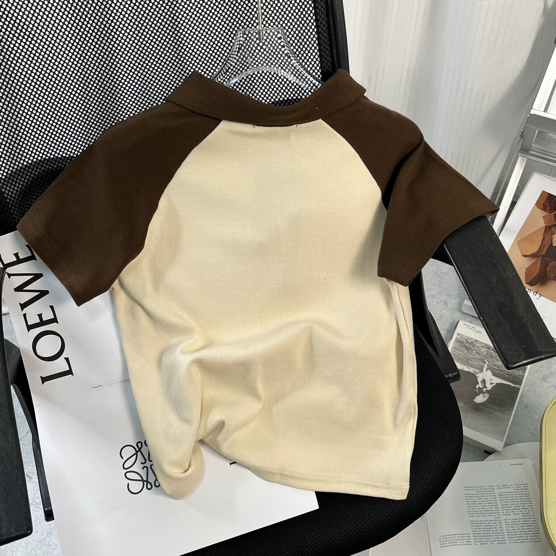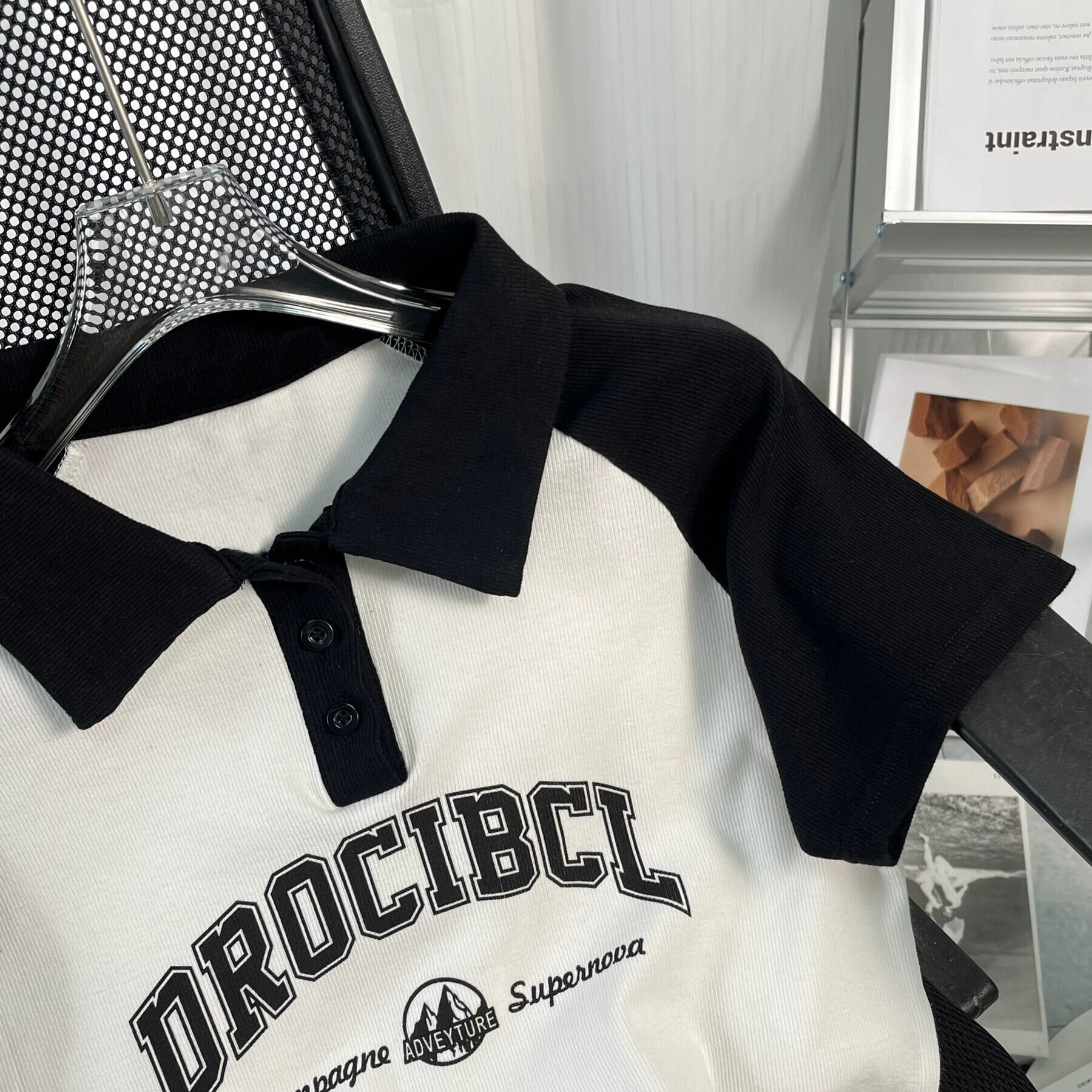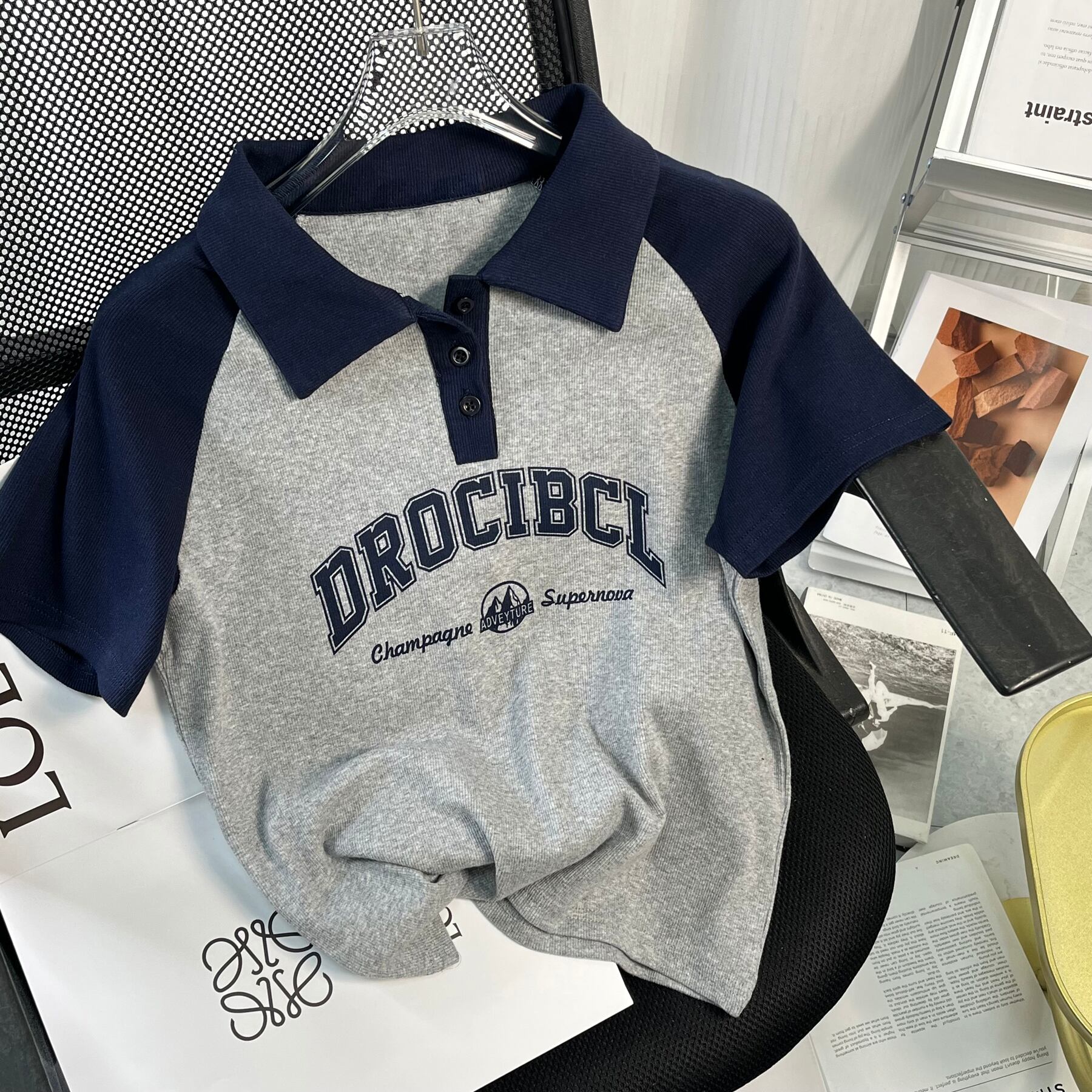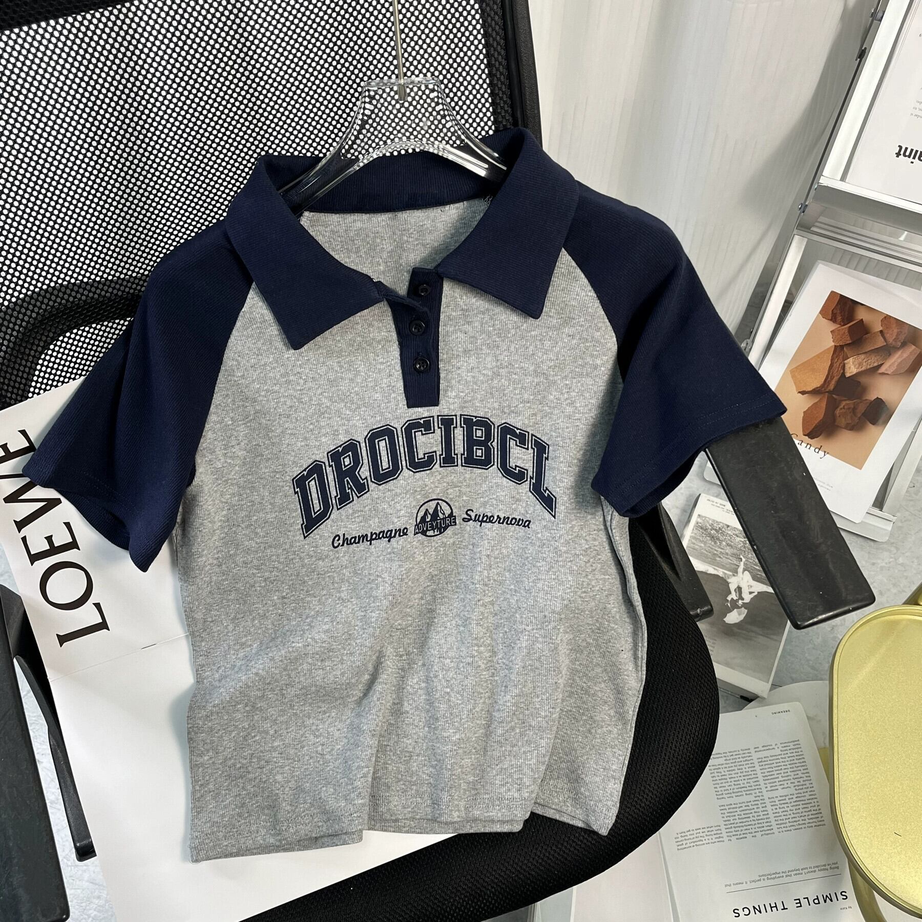 アメリカンスタイルフロントショルダーピュアコットン半袖Tシャツレディース夏レトロデザイン自己修養の感覚短い段落コントラストカラーポロカラートップイン ショート サマー 夏物 7460066609156839 | framboise21