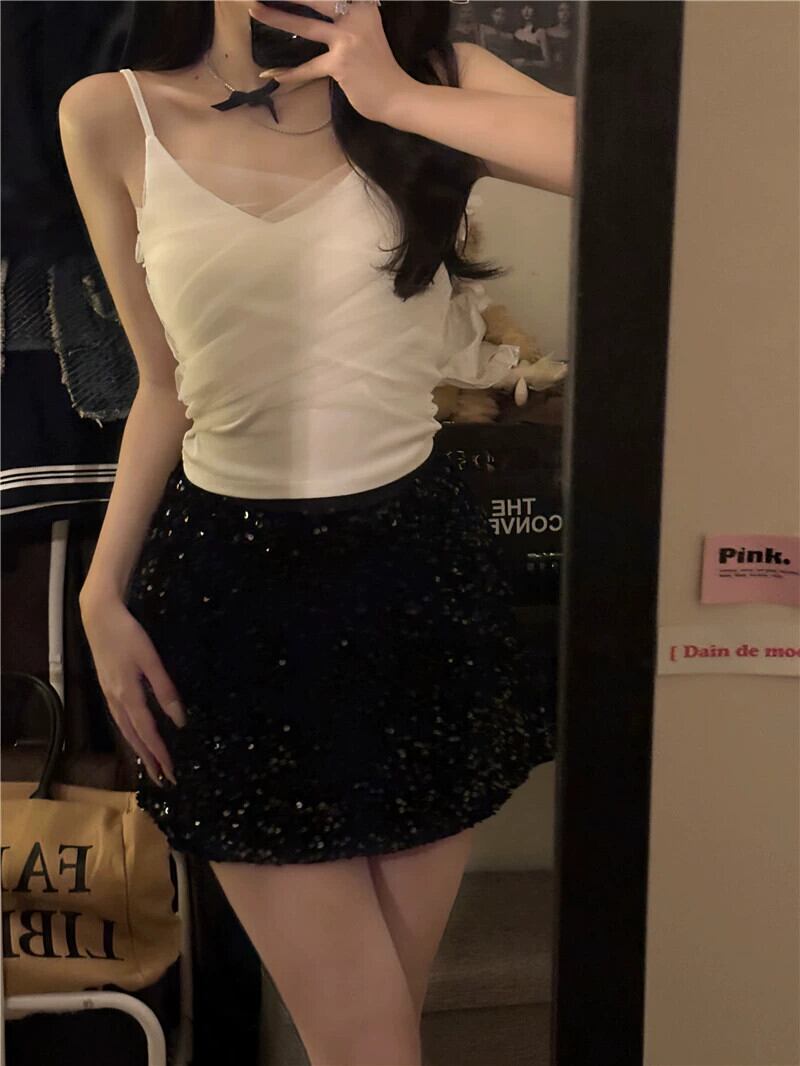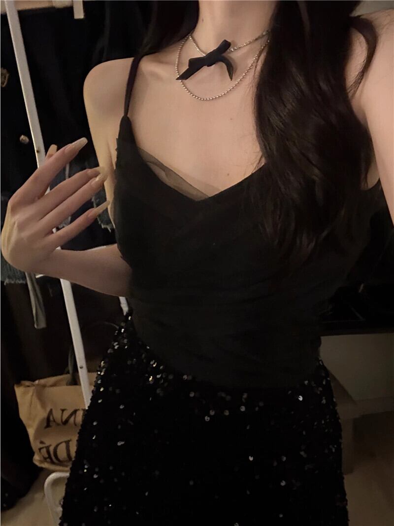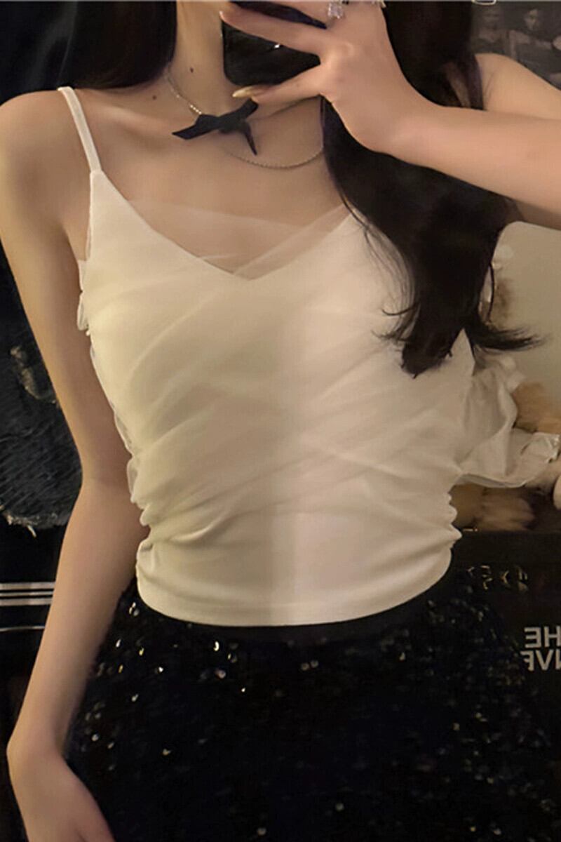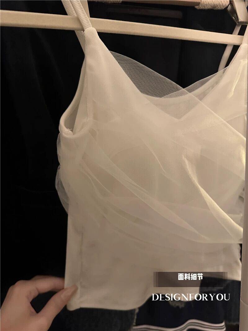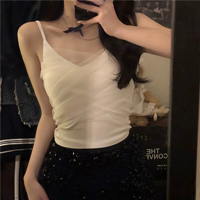 ホワイトメッシュスモールキャミソールレディース夏フレンチスタイルアウタースリムフィットショートボトミングチューブトップトップ サマー 夏物 7460017239895692 | framboise21