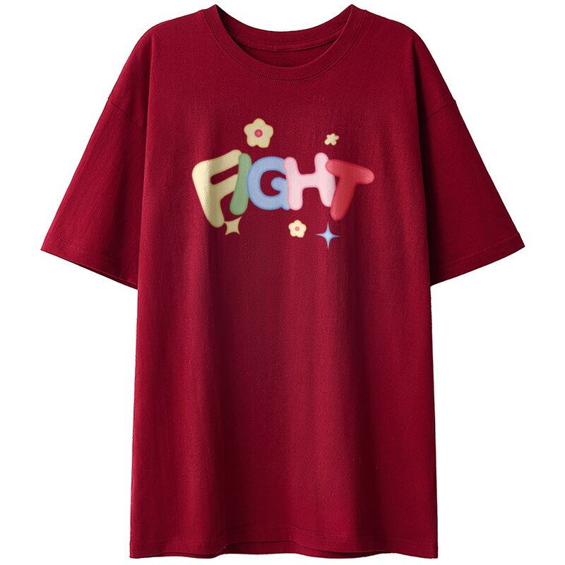 コットン半袖 Tシャツ レディース 夏 レトロ ハイエンド ルーズ オールマッチ カジュアル Tシャツ ミッドレングス 半袖 トップス レッド サマー 夏物 7460097196925573 | framboise21