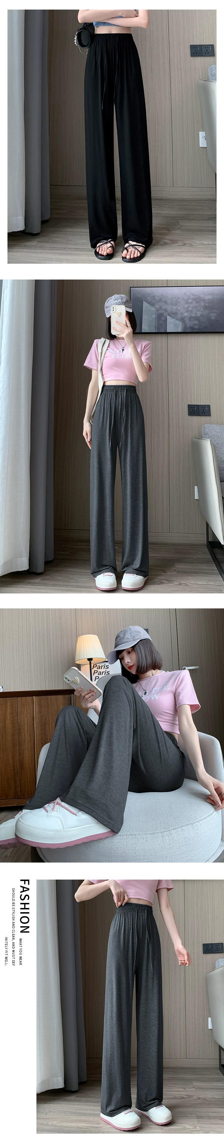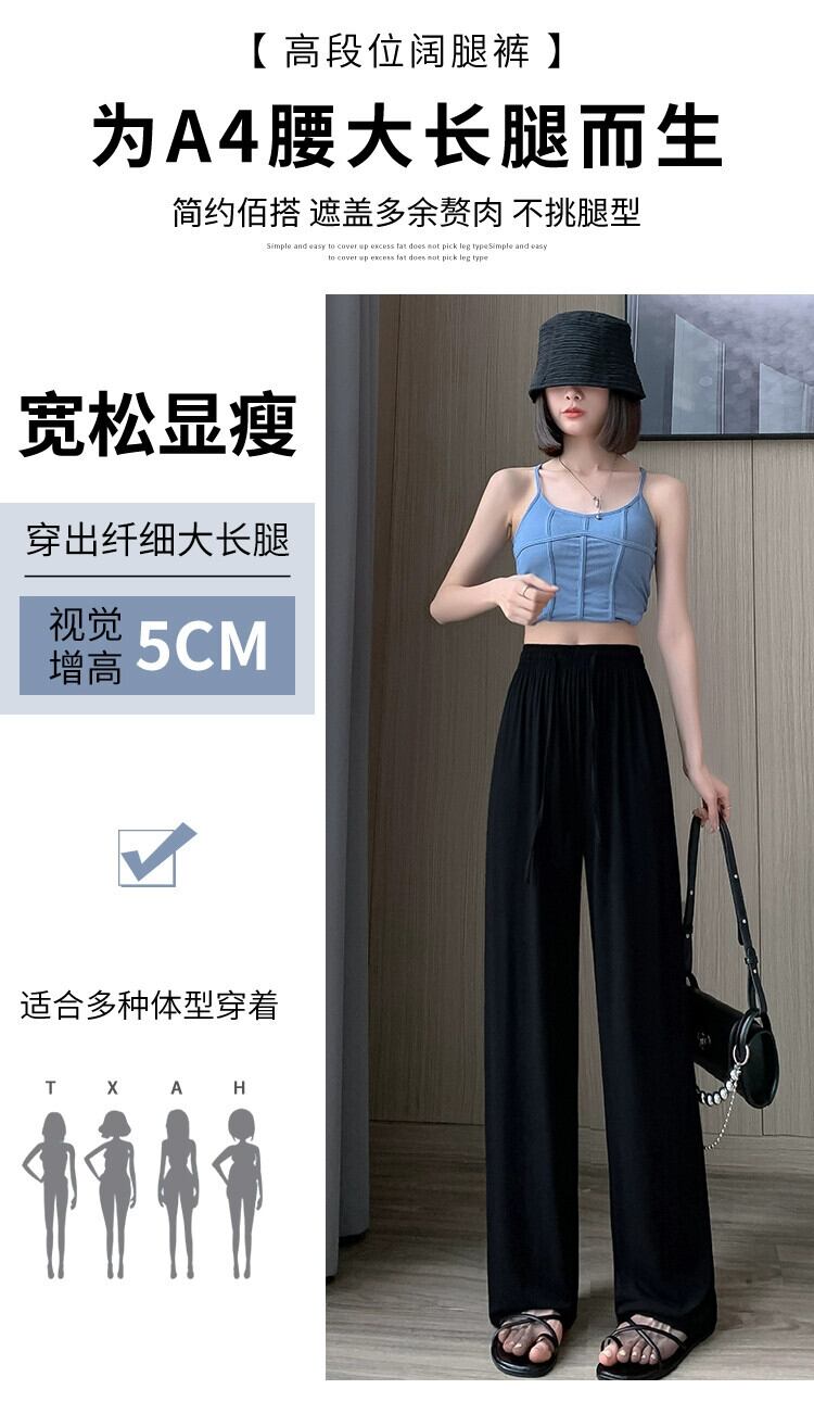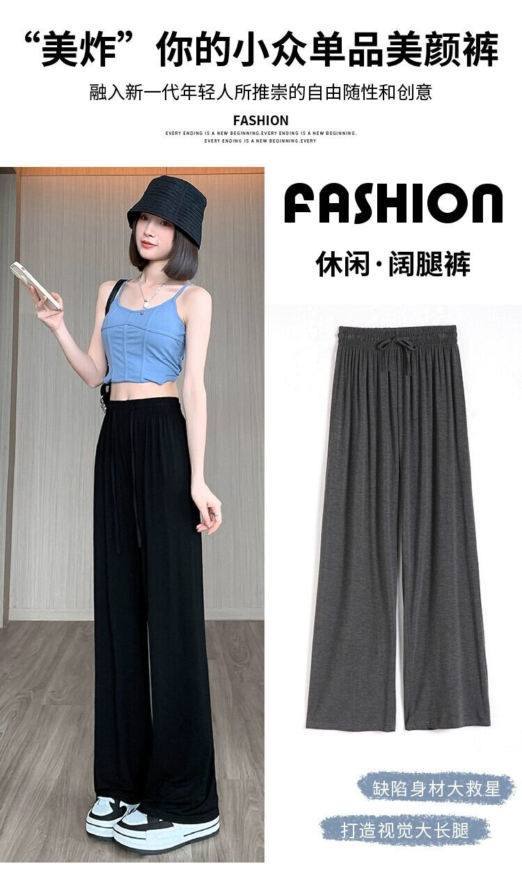 モーダルアイスシルクワイドレッグパンツ女性の夏薄いハイウエストカジュアルパンツルーズストレート薄いセクションモップスポーツパンツ サマー 夏物 7460064131682414 | framboise21