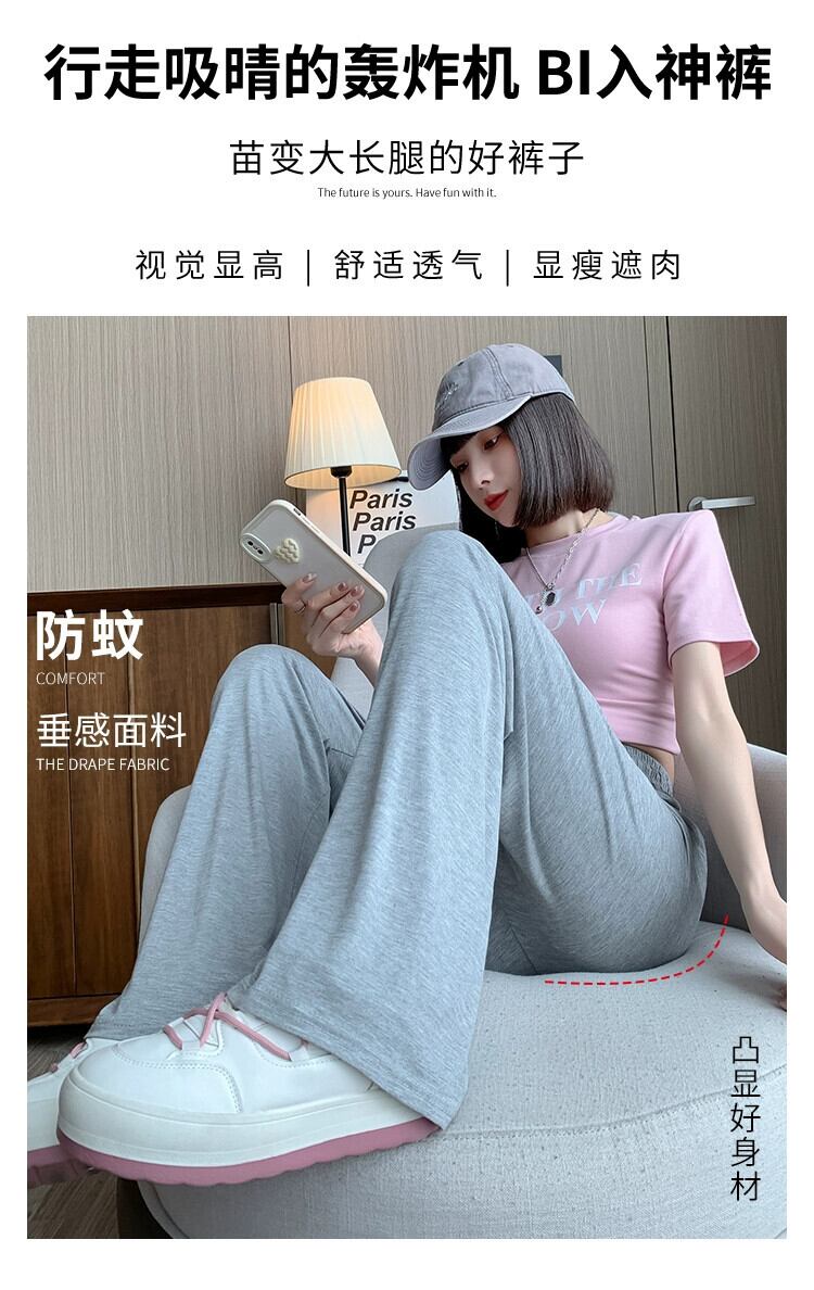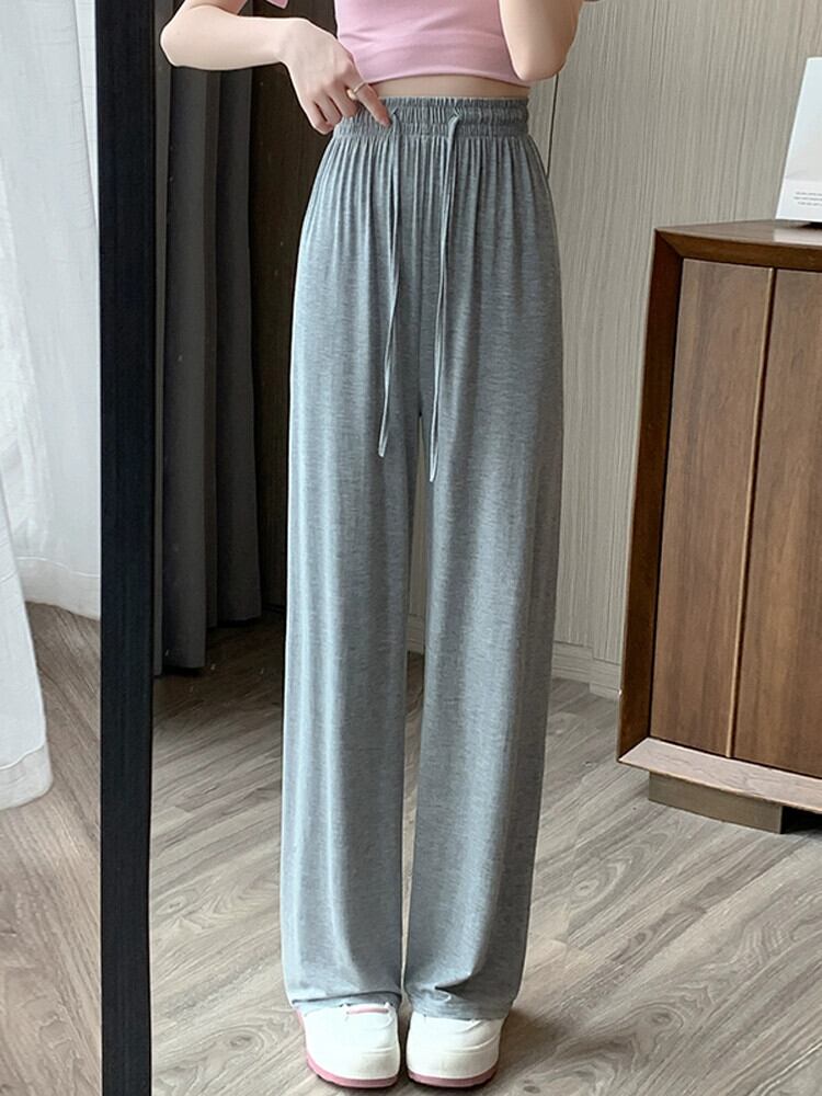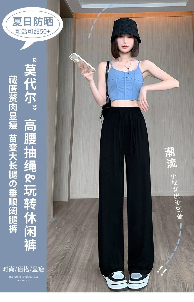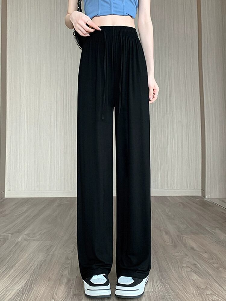 モーダルアイスシルクワイドレッグパンツ女性の夏薄いハイウエストカジュアルパンツルーズストレート薄いセクションモップスポーツパンツ サマー 夏物 7460064131682414 | framboise21